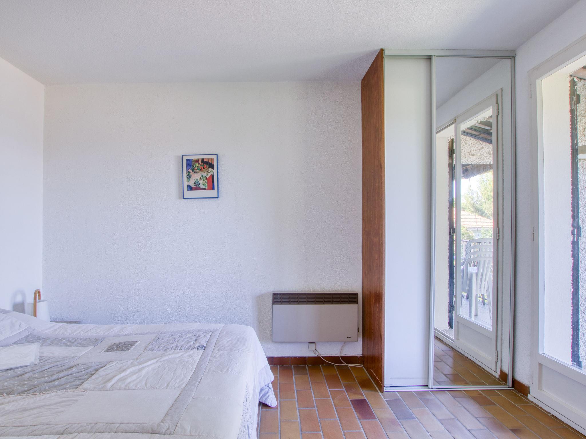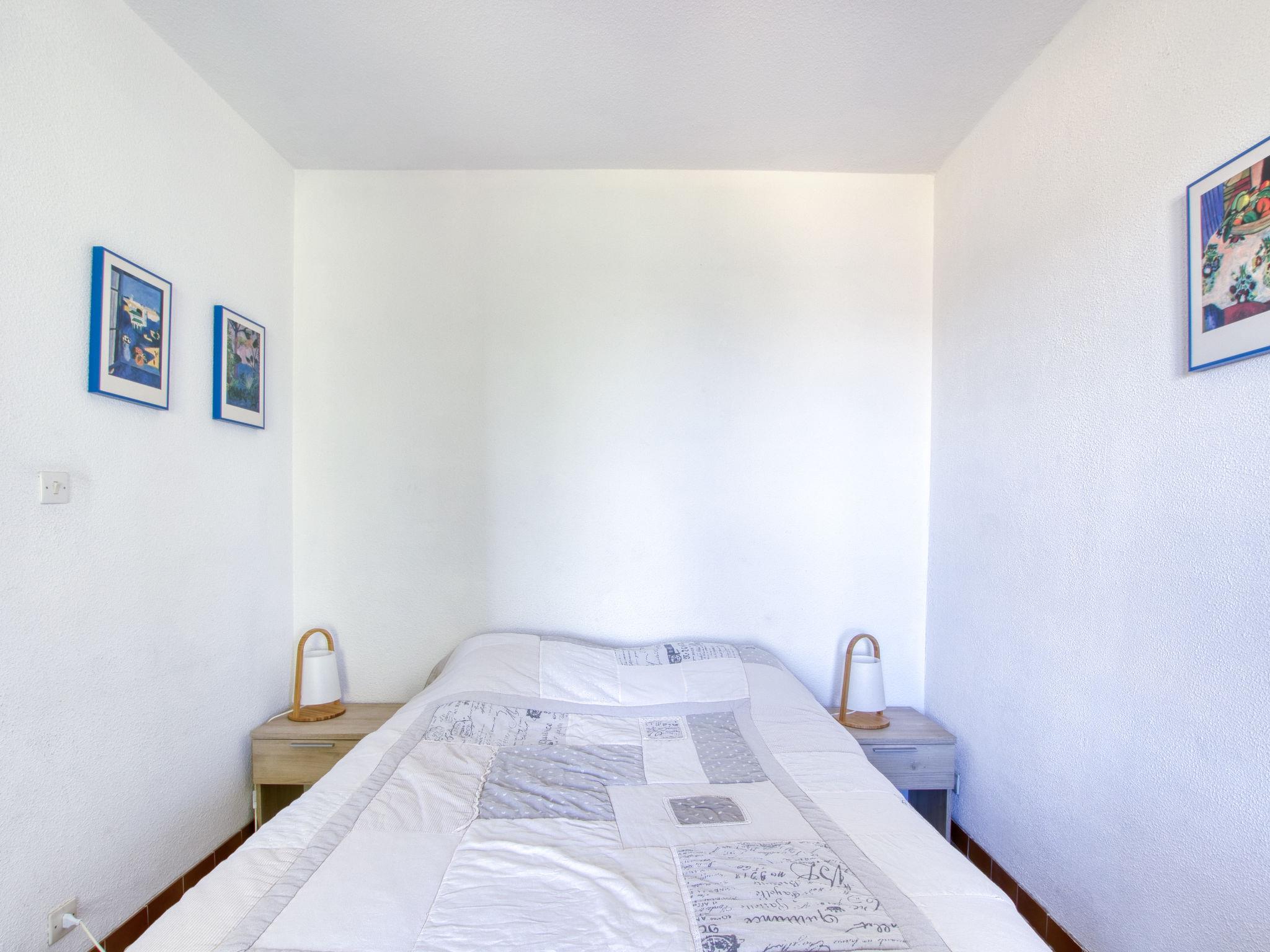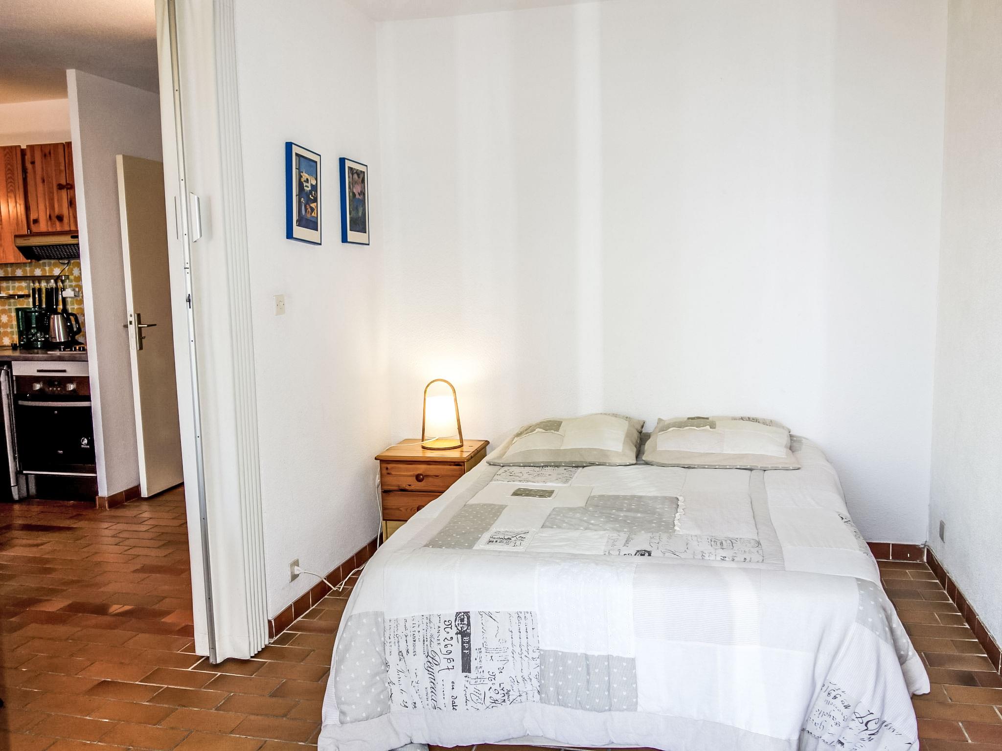 2-room apartment 35 m2 on 2nd floor. Living/dining room with 1 pull-out bed (2 pers. 2 x 80 cm, length 190 cm), TV. Exit to the terrace. 1 room with sliding door with 1 french bed (140 cm, length 190 cm). Exit to the terrace. Kitchenette (oven, dishwasher, 2 ceramic glass hob hotplates, toaster, kettle, microwave, electric coffee machine). Bath/WC. Electric heating. Terrace 9 m2, roofed, west facing position. Terrace furniture. Beautiful view of the sea. Facilities: washing machine, iron. Internet (WiFi, extra). Parking space n 574. Please note: maximum 1 small pet/ dog allowed. TV only FR. Smoke alarm. Note: the bathtub is small (length: 108 cm). 83112 000275 84