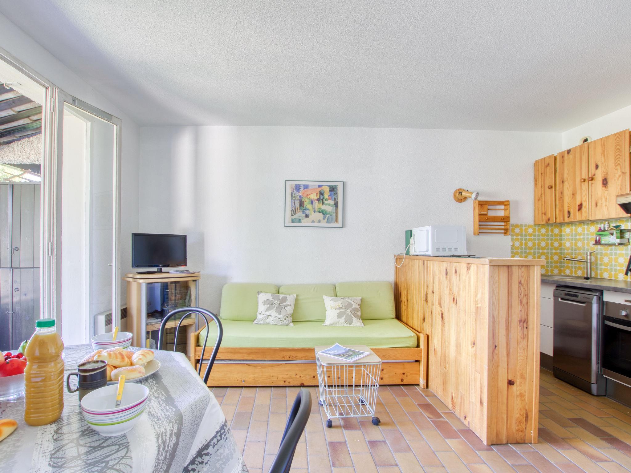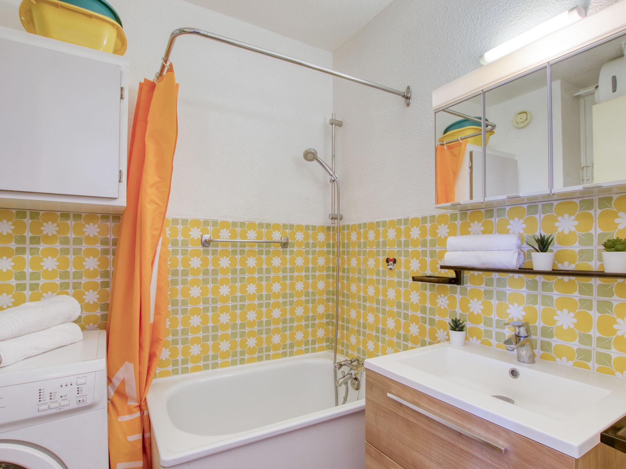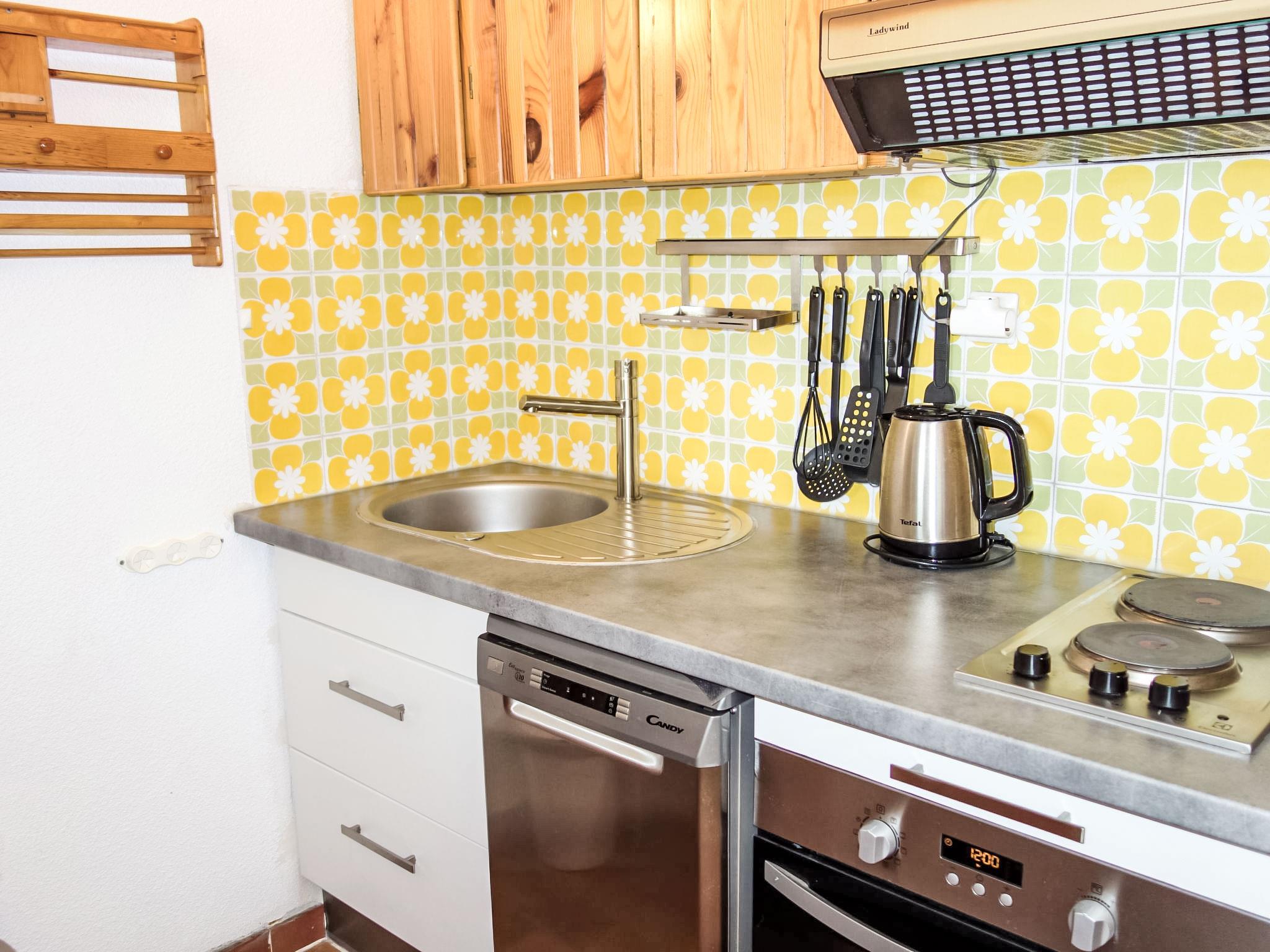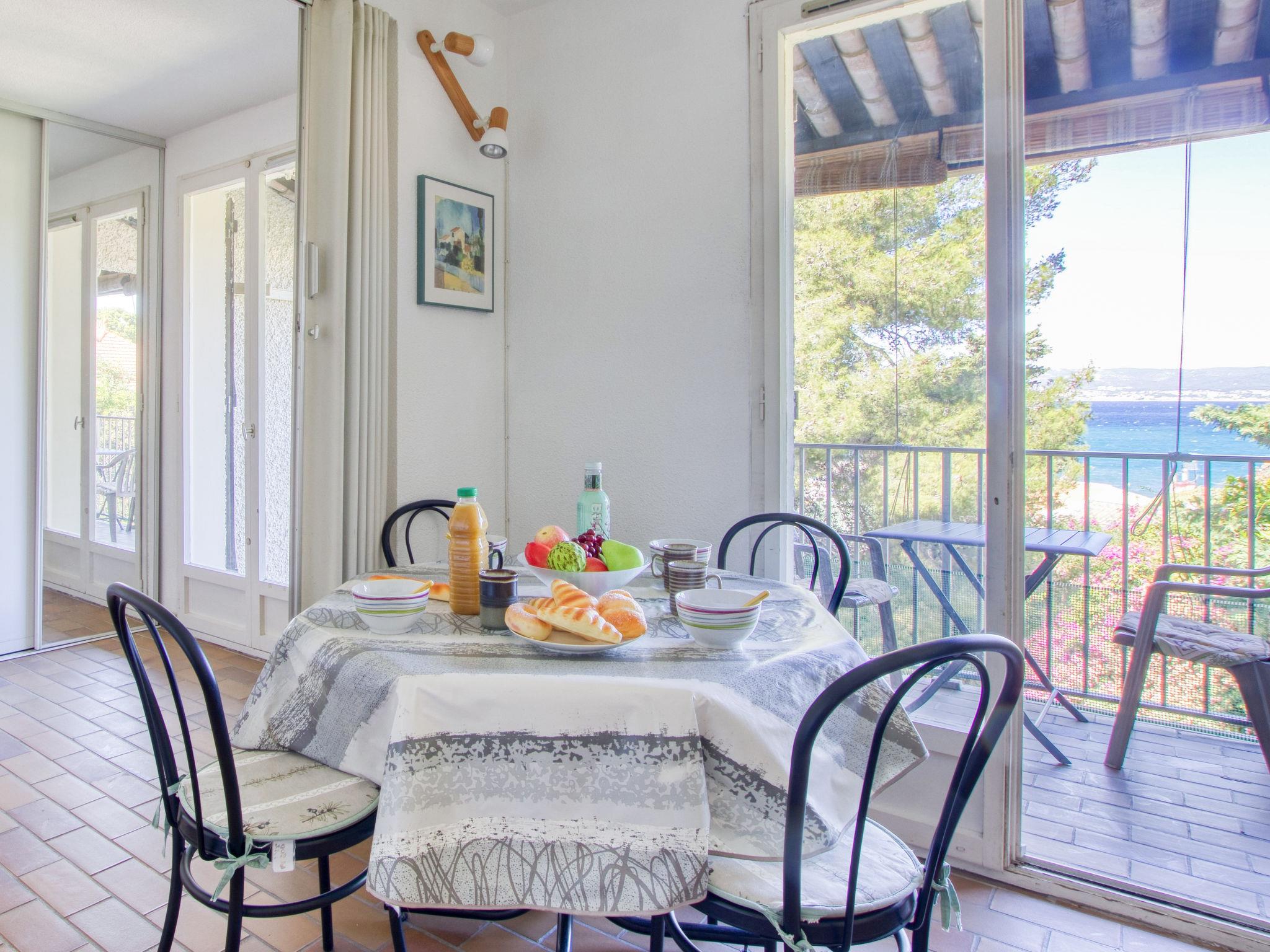 2-room apartment 35 m2 on 2nd floor. Living/dining room with 1 pull-out bed (2 pers. 2 x 80 cm, length 190 cm), TV. Exit to the terrace. 1 room with sliding door with 1 french bed (140 cm, length 190 cm). Exit to the terrace. Kitchenette (oven, dishwasher, 2 ceramic glass hob hotplates, toaster, kettle, microwave, electric coffee machine). Bath/WC. Electric heating. Terrace 9 m2, roofed, west facing position. Terrace furniture. Beautiful view of the sea. Facilities: washing machine, iron. Internet (WiFi, extra). Parking space n 574. Please note: maximum 1 small pet/ dog allowed. TV only FR. Smoke alarm. Note: the bathtub is small (length: 108 cm). 83112 000275 84