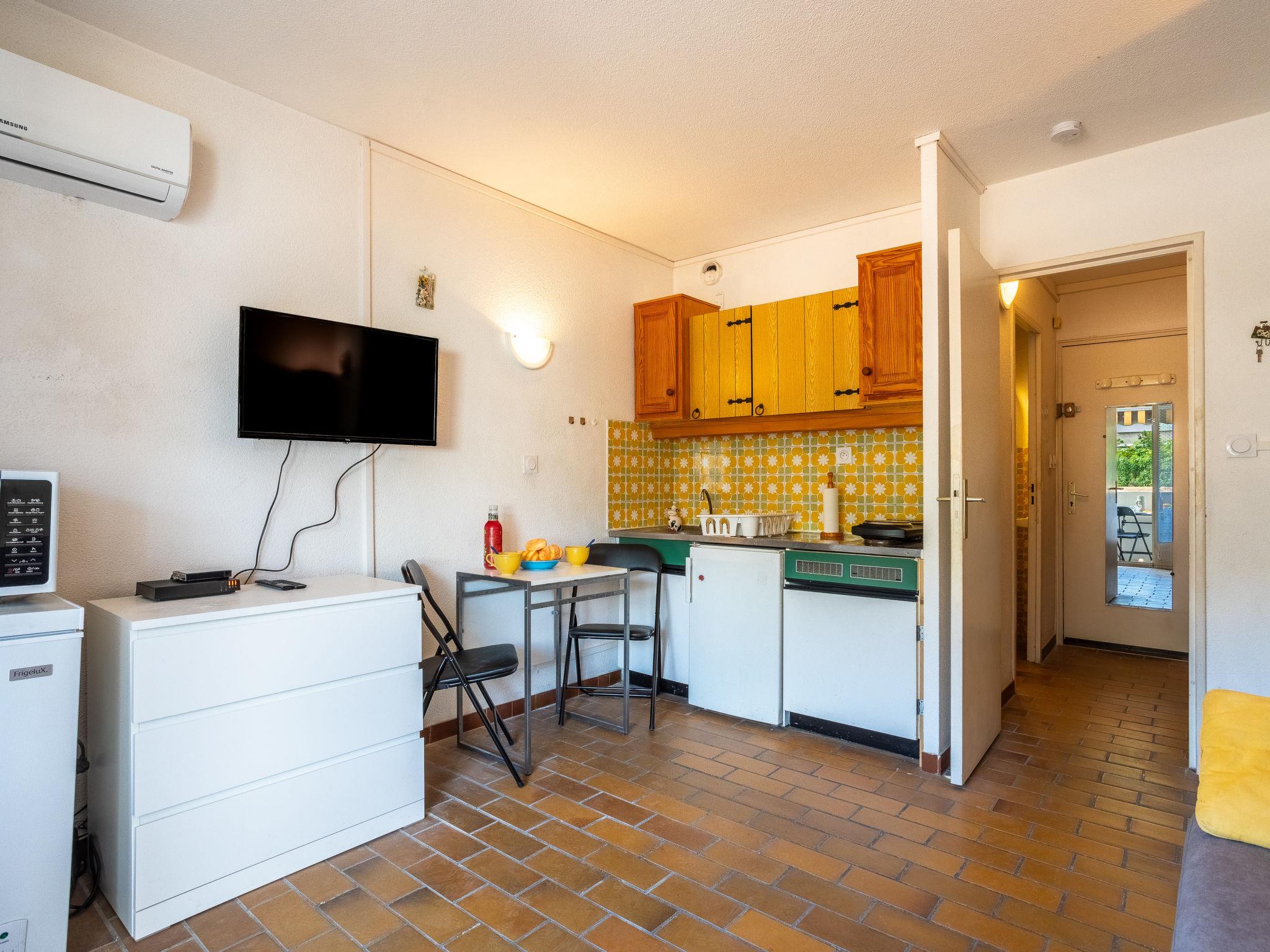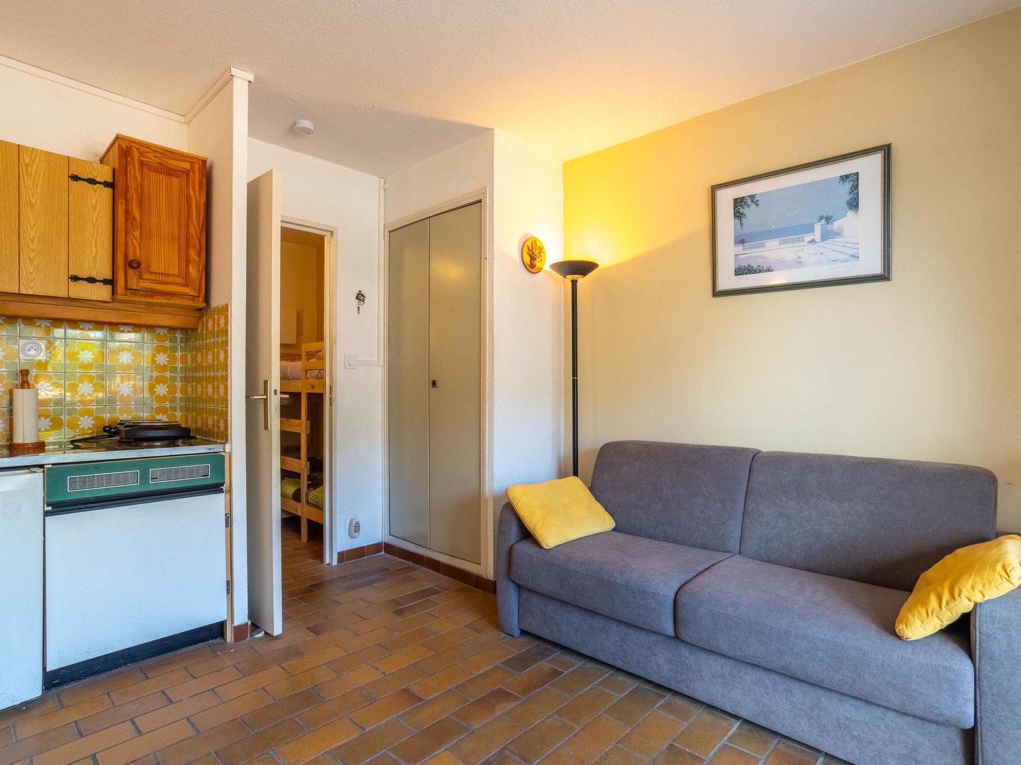 1-room studio 21 m2 on 1st floor, east facing position. Object suitable for 2 adults + 2 children. Practical and beautiful furnishings: entrance hall with 1 x 2 bunk beds (80 cm, length 190 cm). Living/dining room with 1 sofabed (160 cm, length 200 cm), TV (flat screen). Exit to the terrace. Kitchenette (2 hot plates, toaster, kettle, freezer, electric coffee machine, combination microwave). Shower/WC. Air-conditioning, forced-air heating. Terrace 5 m2, roofed, east facing position. Terrace furniture. Facilities: washing machine. Internet (WiFi, free). Parking space n 572. Please note: apartment carpark side. Non-smokers only. TV only FR. Smoke alarm. Offer by a private individual according to Art. 155, IV of CGI. 83112001457RH