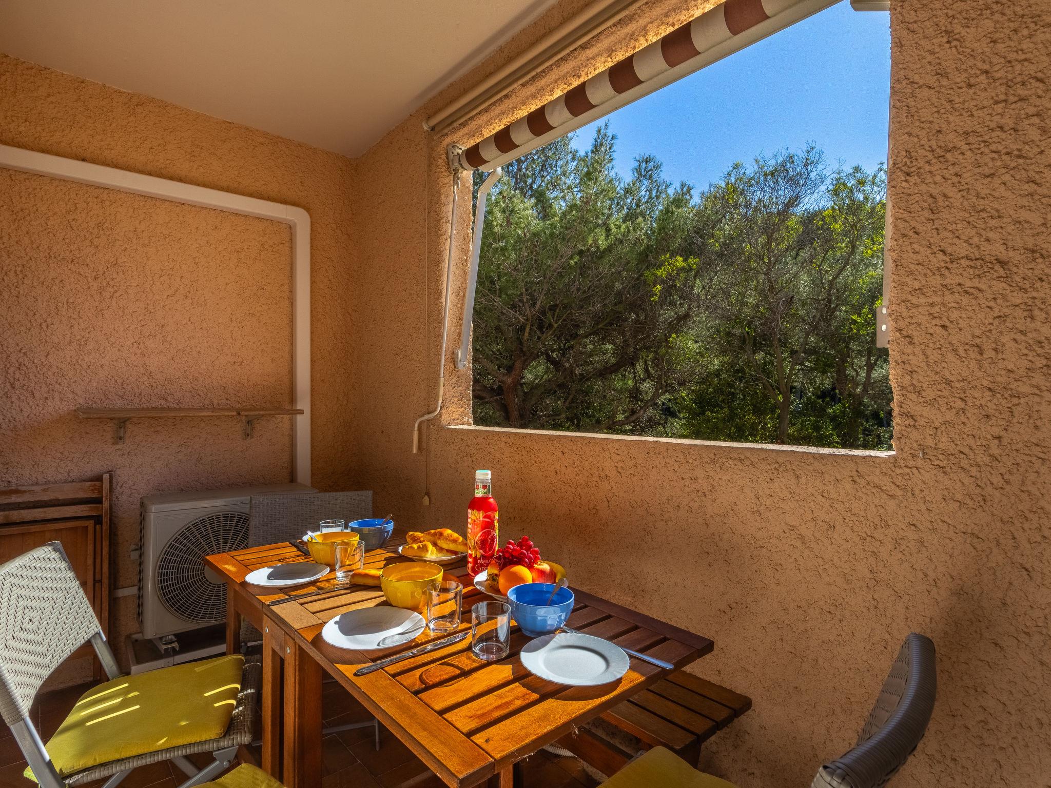 1-room studio 20 m2 on 1st floor. Comfortable and beautiful furnishings: entrance hall, without window with 1 x 2 bunk beds (80 cm, length 190 cm). Living/dining room with 1 double sofabed (140 cm, length 190 cm), TV (flat screen), air conditioning. Exit to the terrace. Kitchenette (2 induction hot plates, toaster, kettle, electric coffee machine, combination microwave). Shower/WC. Forced-air heating. Terrace 8 m2, roofed, south-west facing position. Terrace furniture. Facilities: washing machine. Internet (WiFi, free). Parking (1 car) at 350 m. Please note: maximum 1 small pet/ dog allowed. TV only FR. Smoke alarm. Offer by a private individual according to Art. 155, IV of CGI. 831120004676Z
