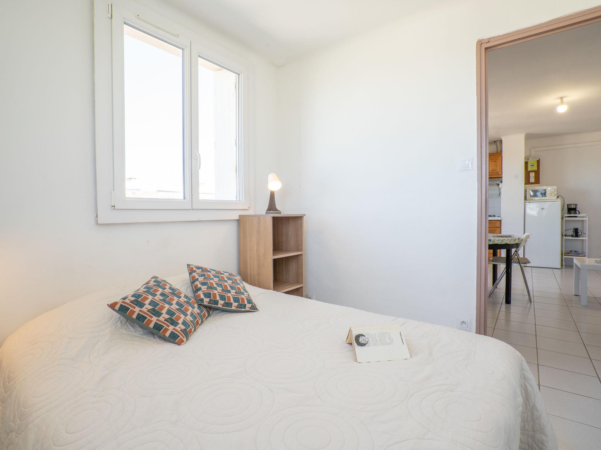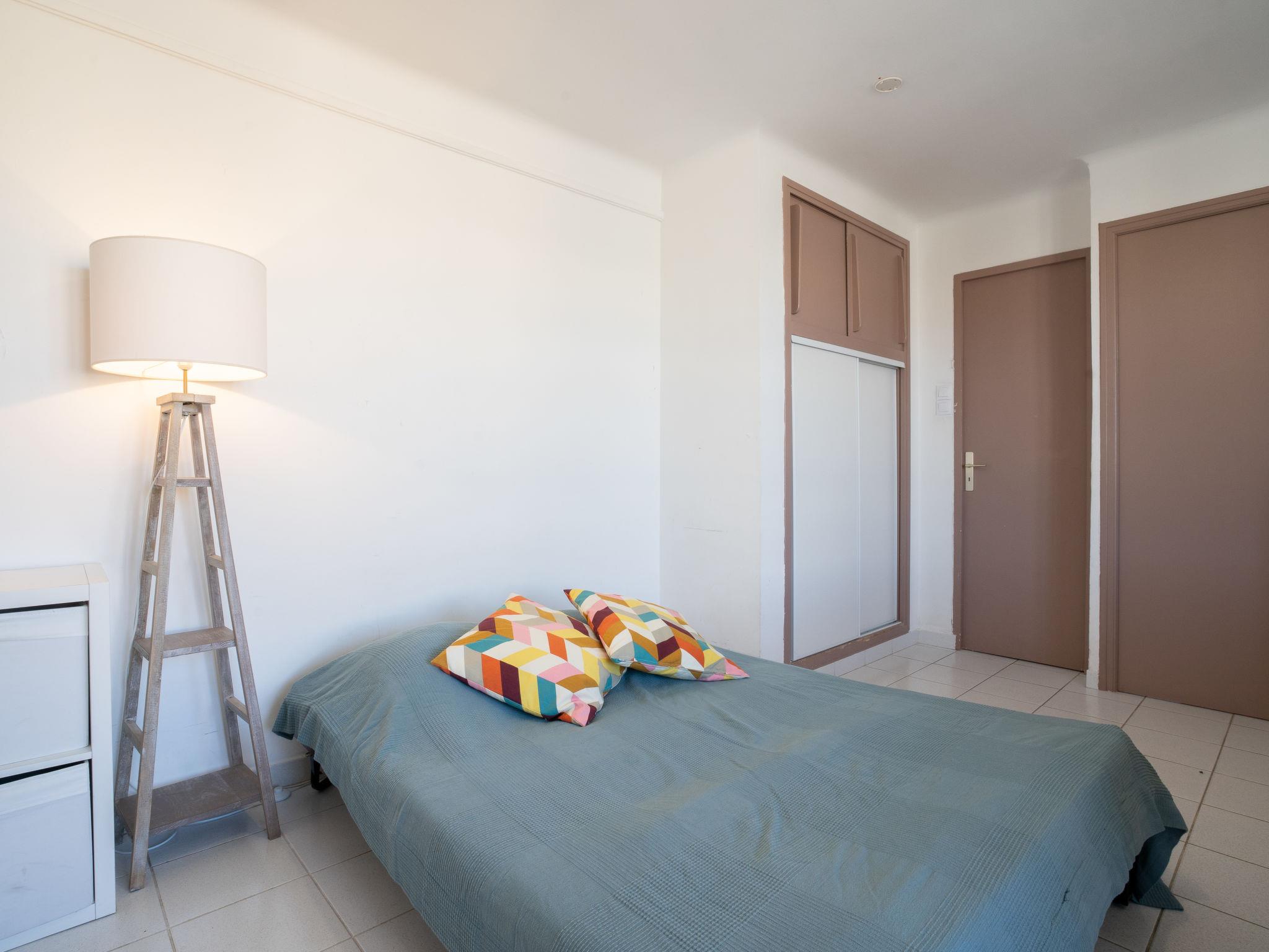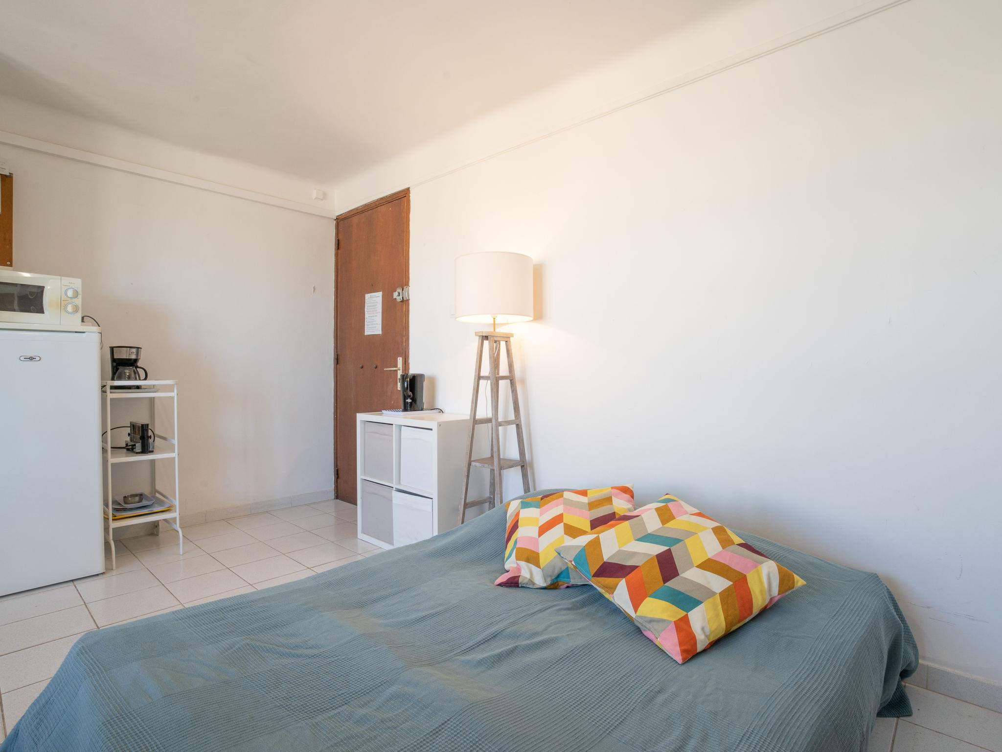 2-room apartment 30 m2 on 2nd floor. Bright, beautiful furnishings: living/dining room with 1 double sofabed (140 cm, length 190 cm), TV (flat screen). Exit to the terrace. 1 room with 1 french bed (1 x 140 cm, length 190 cm). Kitchenette (4 hot plates, toaster, kettle, microwave, electric coffee machine). Shower/WC. Electric heating. Terrace 5 m2, roofed, north-west facing position. Terrace furniture. Side view of the sea. Facilities: Internet (WiFi, extra). Parking space n 10. Please note: TV only FR. Smoke alarm. 83112 000202 TC