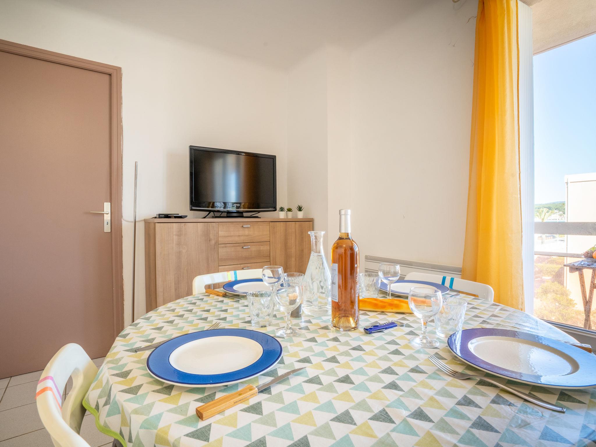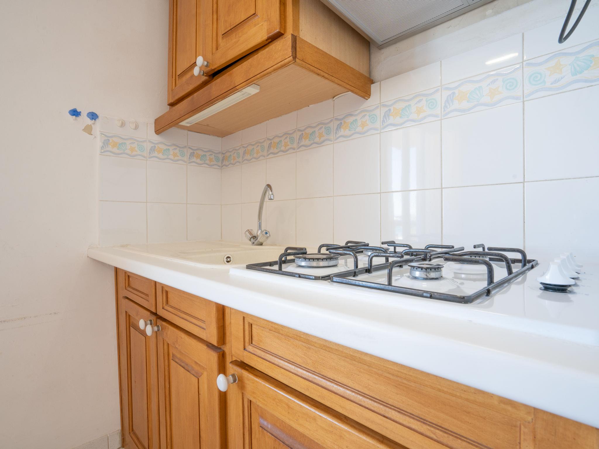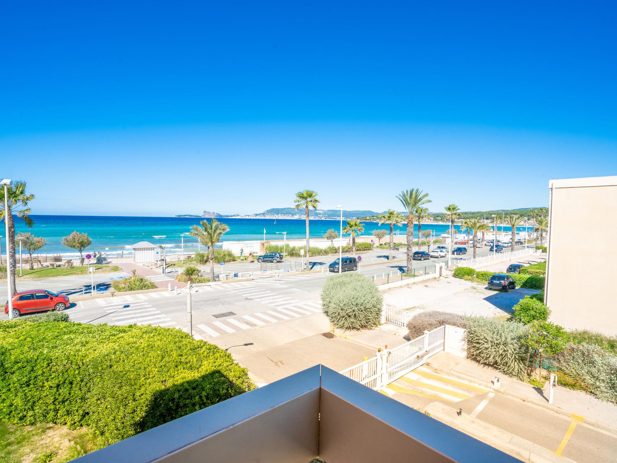 2-room apartment 30 m2 on 2nd floor. Bright, beautiful furnishings: living/dining room with 1 double sofabed (140 cm, length 190 cm), TV (flat screen). Exit to the terrace. 1 room with 1 french bed (1 x 140 cm, length 190 cm). Kitchenette (4 hot plates, toaster, kettle, microwave, electric coffee machine). Shower/WC. Electric heating. Terrace 5 m2, roofed, north-west facing position. Terrace furniture. Side view of the sea. Facilities: Internet (WiFi, extra). Parking space n 10. Please note: TV only FR. Smoke alarm. 83112 000202 TC