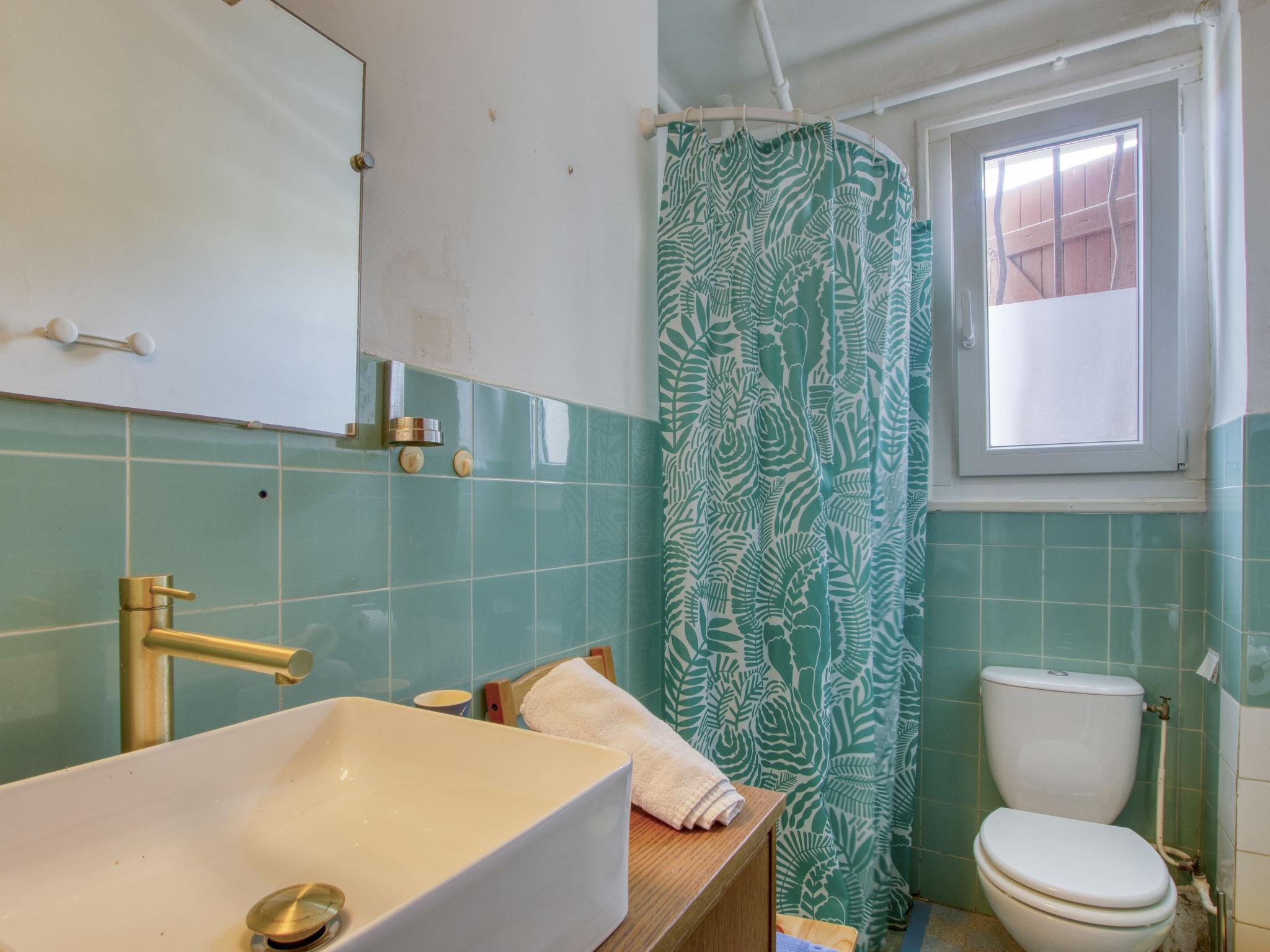 Les Lecques: Residence "Les Vagues", 2 storeys. In the resort 500 m from the centre of des Lecques, 50 m from the sea, road to cross. Parking. Shop 500 m, supermarket 1.5 km, restaurant, café 400 m, bus stop "Le Viguier" 1.2 km, railway station "Saint Cyr les Lecques-La Cadière" 2.1 km, sandy beach "Les lecques" 50 m. Golf course (18 hole) 5 km, tennis 2 km. Nearby attractions: aqualand 2 km. Hiking paths: Sainte Baume, Sainte Victoire, Calanques Port-Cros, Porquerolles, Ile verte, Embiez, Figuerolles, Cassis. The keys‘ handover takes place by the agency INTERHOME in St Cyr sur mer, 2 km.