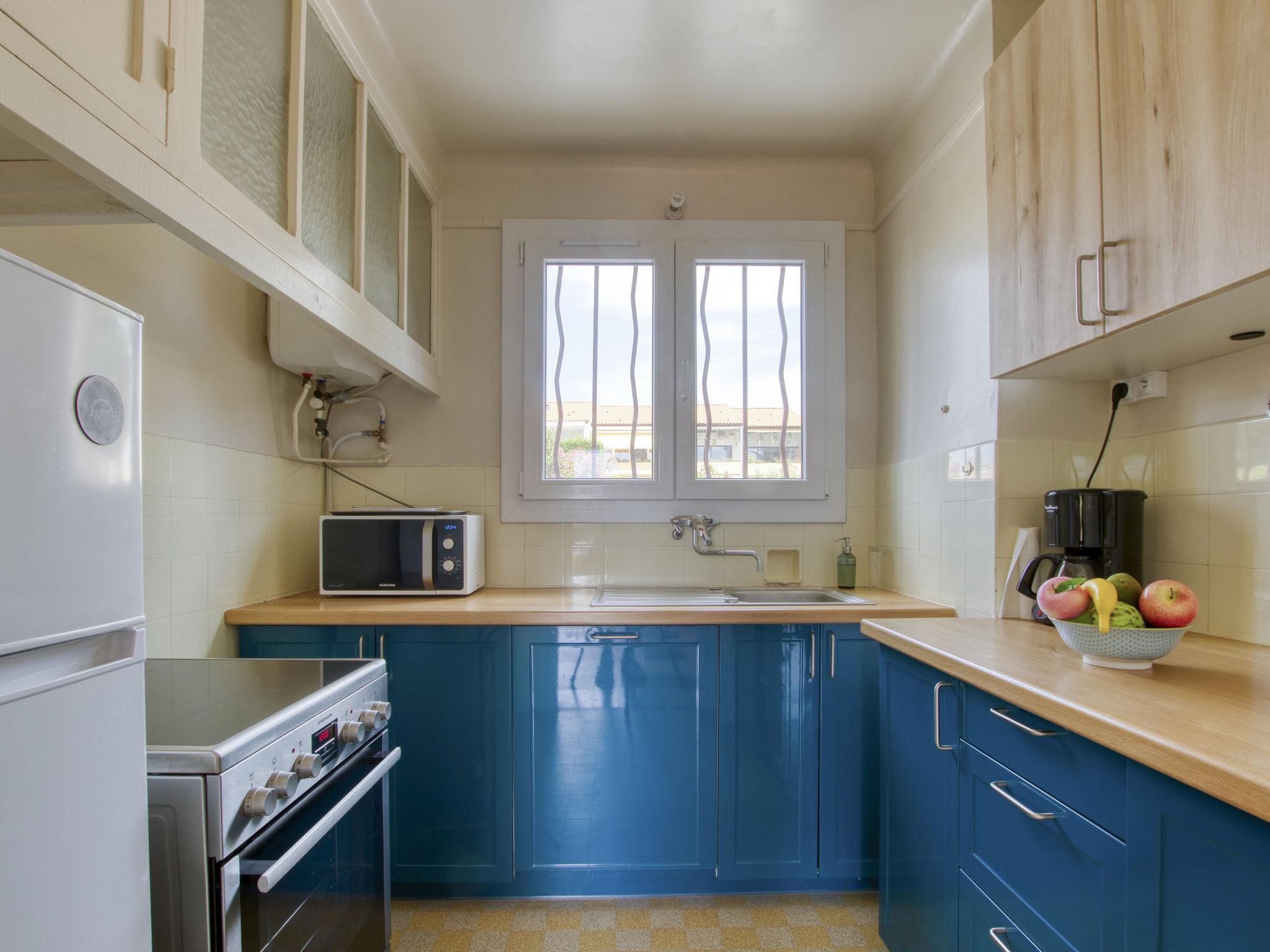2-room apartment 46 m2, on the ground floor. Bright, beautiful furnishings: living/dining room with 1 double sofabed (140 cm, length 190 cm), open-hearth fireplace (only for decoration), TV (flat screen). Exit to the patio, south-west facing position. 1 room with 1 french bed (160 cm, length 200 cm). Kitchen (oven, dishwasher, 4 ceramic glass hob hotplates, toaster, microwave, freezer, electric coffee machine). Shower/WC. Electric heating. Terrace furniture. Distant view of the sea. Facilities: washing machine. Internet (WiFi, free). Please note: TV only FR. Smoke alarm. Offer by a private individual according to Art. 155, IV of CGI. 83115000830Q1