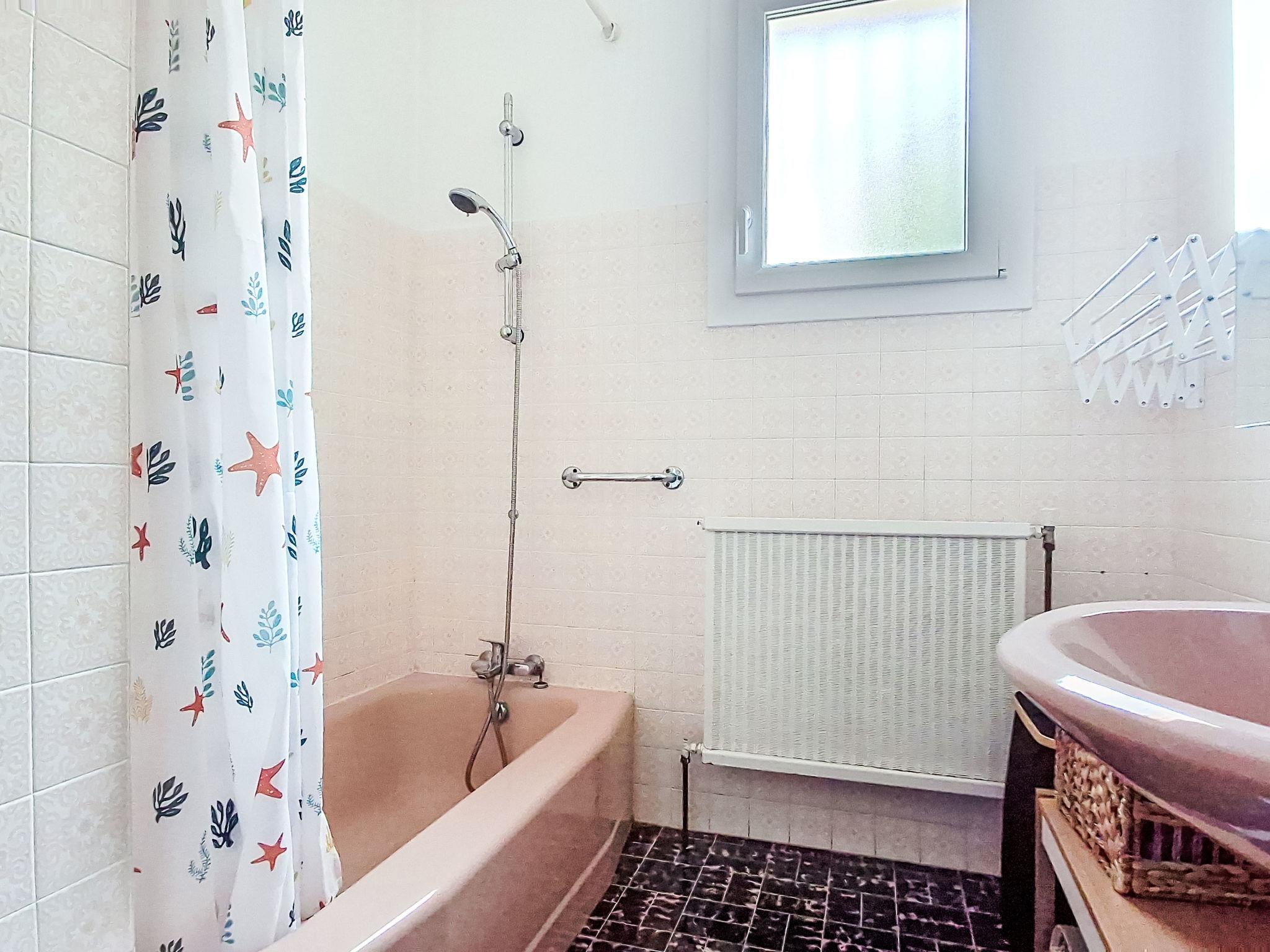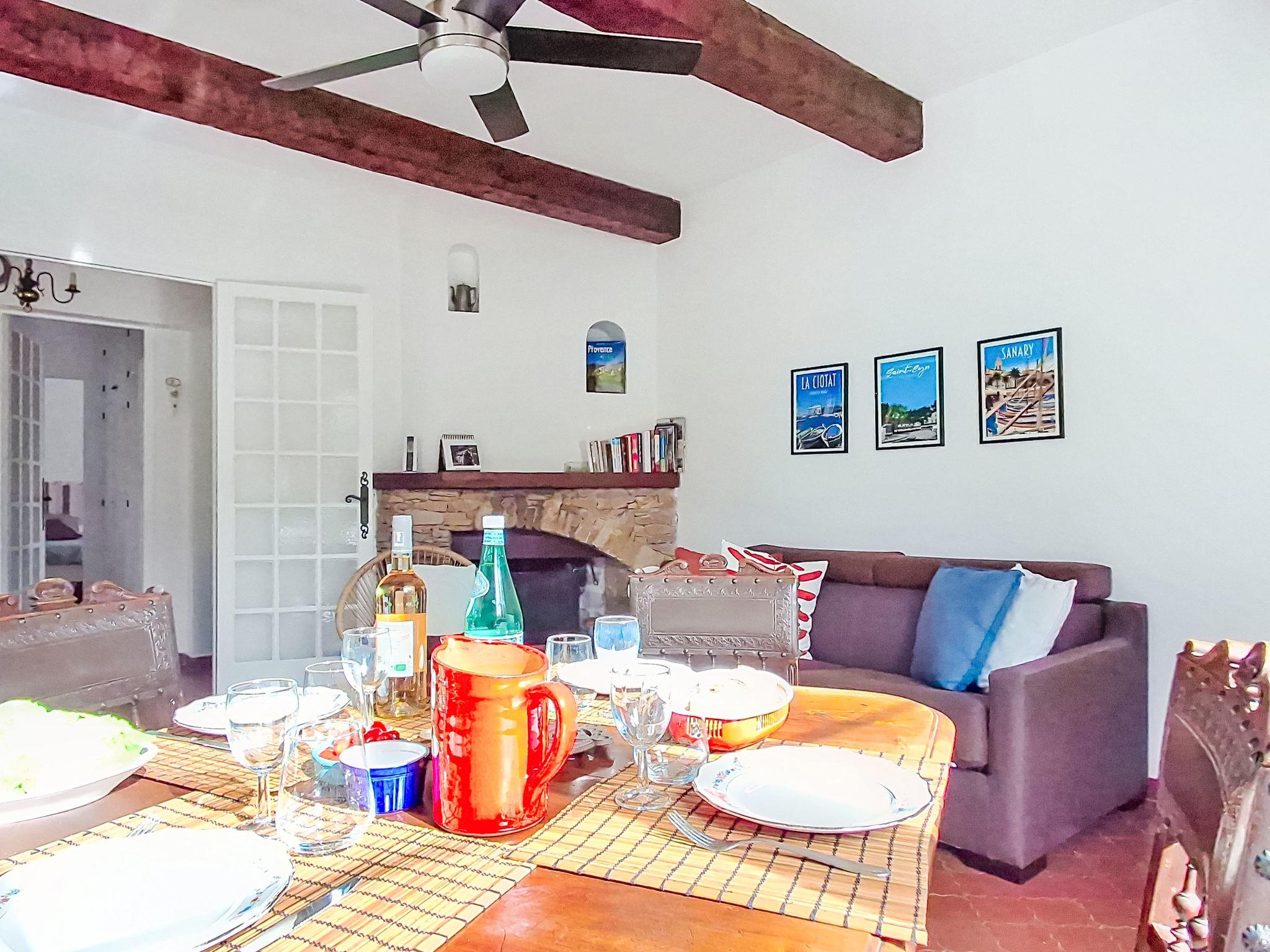 3-room house 75 m2. Living/dining room with open-hearth fireplace (only for decoration), TV (flat screen), fan. Exit to the terrace. 1 room with 2 beds (90 cm, length 200 cm). 1 room with 1 french bed (140 cm, length 200 cm). Kitchen (oven, dishwasher, 3 induction hot plates, toaster, kettle, grill, electric coffee machine, Capsules for coffee machine (Nespresso) extra, combination microwave) with dining table. Bathroom, sep. WC. Oil heating. Large terrace 23 m2. Terrace furniture, barbecue, deck chairs (2). Facilities: washing machine. Internet (WiFi, free). Parking (2 cars). Please note: TV only FR. Smoke alarm. Offer by a private individual according to Art. 155, IV of CGI. 83112001816QZ