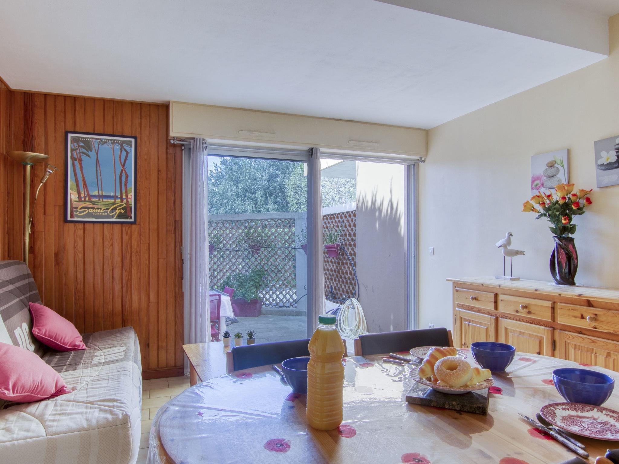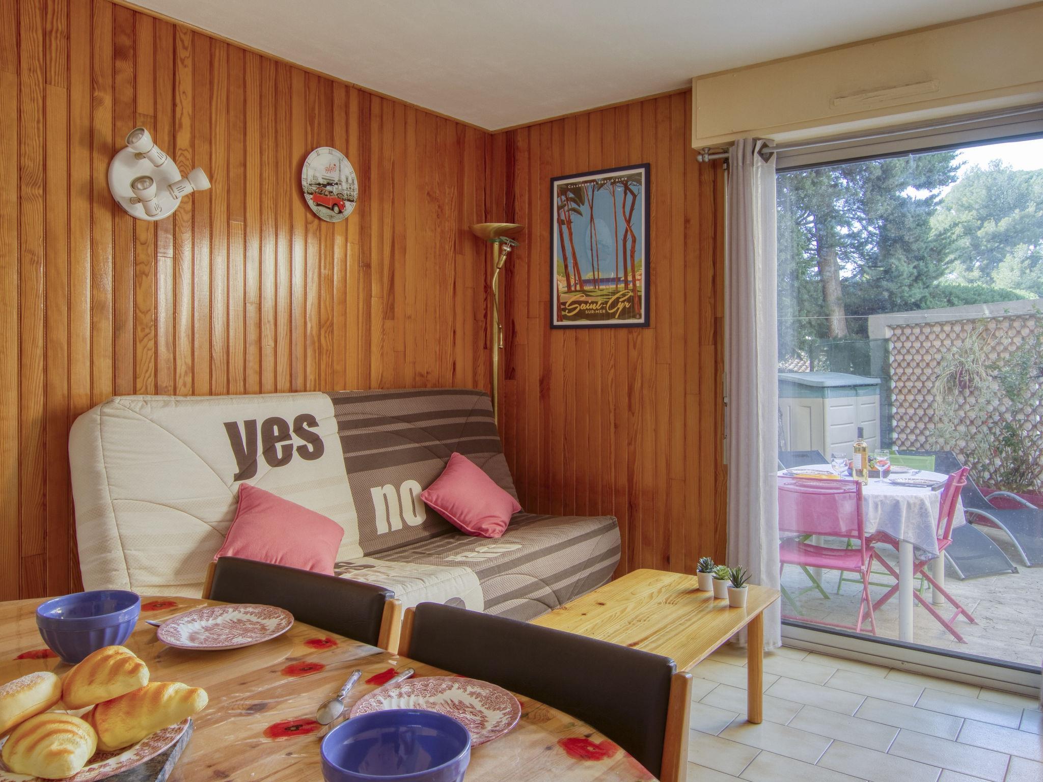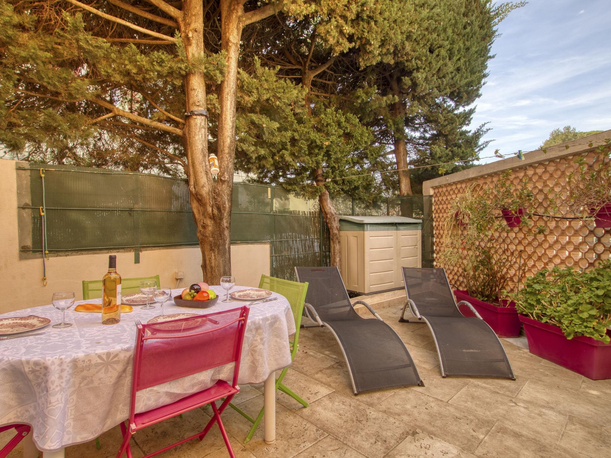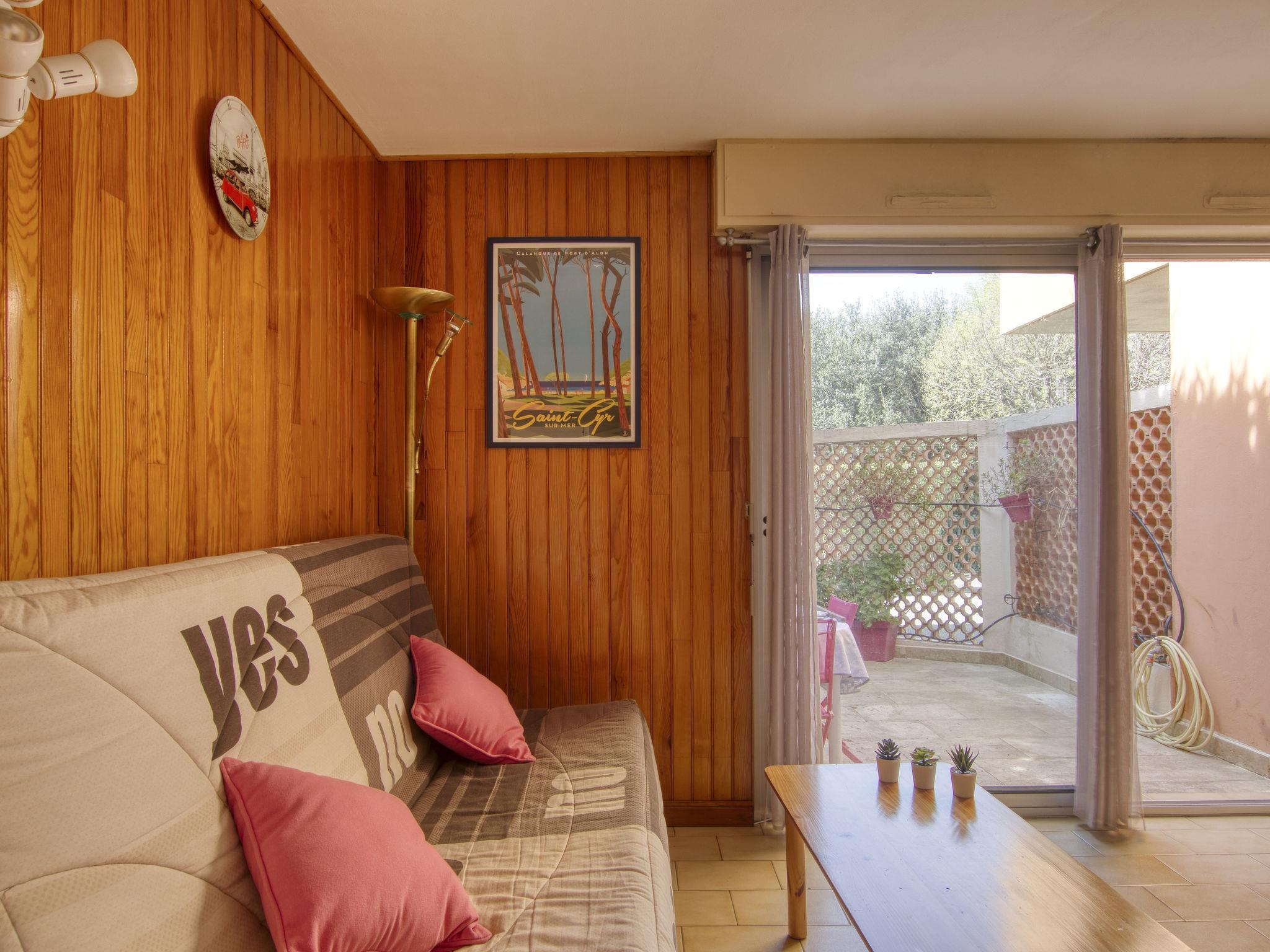 1-room studio 28 m2, on the ground floor. Beautiful furnishings: entrance hall with 1 x 2 bunk beds (80 cm, length 190 cm). Living/dining room with 1 double sofabed (140 cm, length 190 cm), TV (flat screen). Exit to the terrace. Kitchenette (dishwasher, 2 ceramic glass hob hotplates, toaster, microwave, freezer, electric coffee machine). Shower, sep. WC. Electric heating. Terrace 18 m2, north-west facing position. Terrace furniture. Facilities: washing machine. Internet (WiFi, extra). Parking at the house. Please note: TV only FR. Smoke alarm. Offer by a private individual according to Art. 155, IV of CGI. 83112001203RN