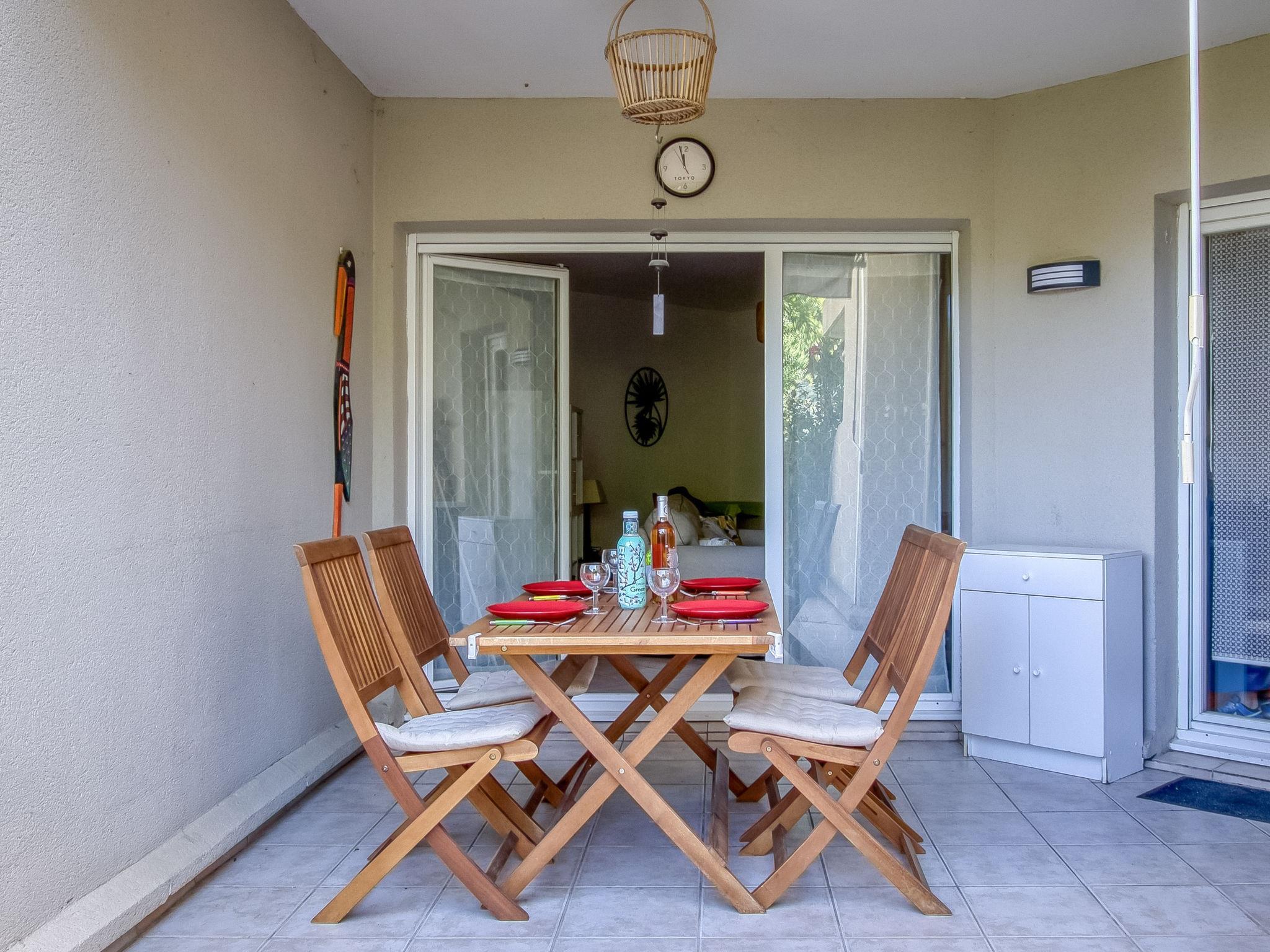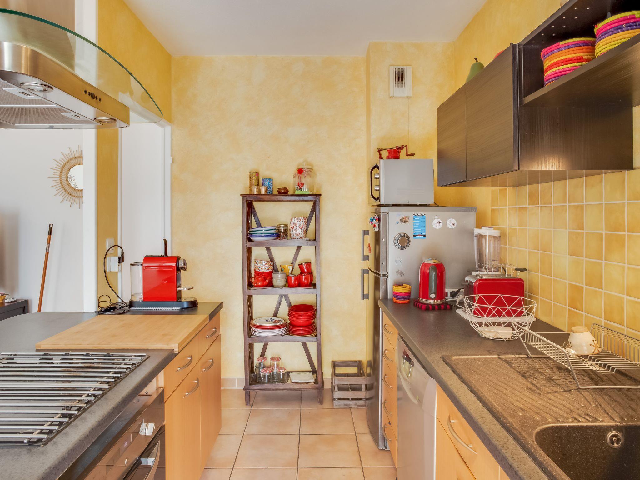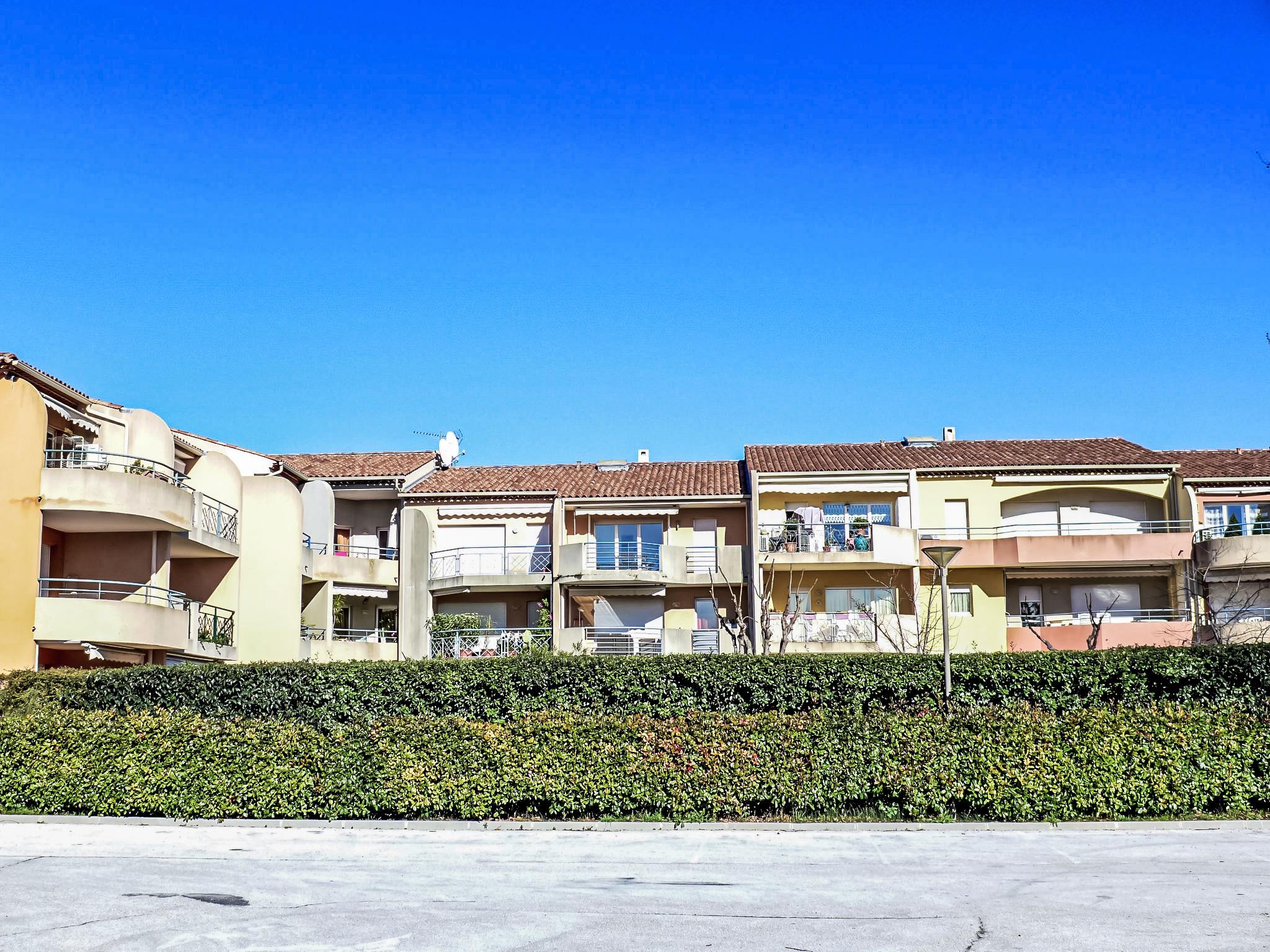 3-room apartment 65 m2, on the ground floor. Comfortable and beautiful furnishings: living/dining room with TV (flat screen). Exit to the terrace. 2 rooms, each room with 1 french bed (140 cm, length 190 cm). Open kitchen (oven, dishwasher, 4 ceramic glass hob hotplates, toaster, kettle, microwave, freezer, electric coffee machine, Capsules for coffee machine (NESPRESSO) extra). Exit to the terrace. Bathroom, sep. WC. Electric heating. Terrace 15 m2. Terrace furniture. Facilities: washing machine. Internet (WiFi, free). Garage. Please note: non-smokers only. TV only FR. Smoke alarm. 83112 000279 33