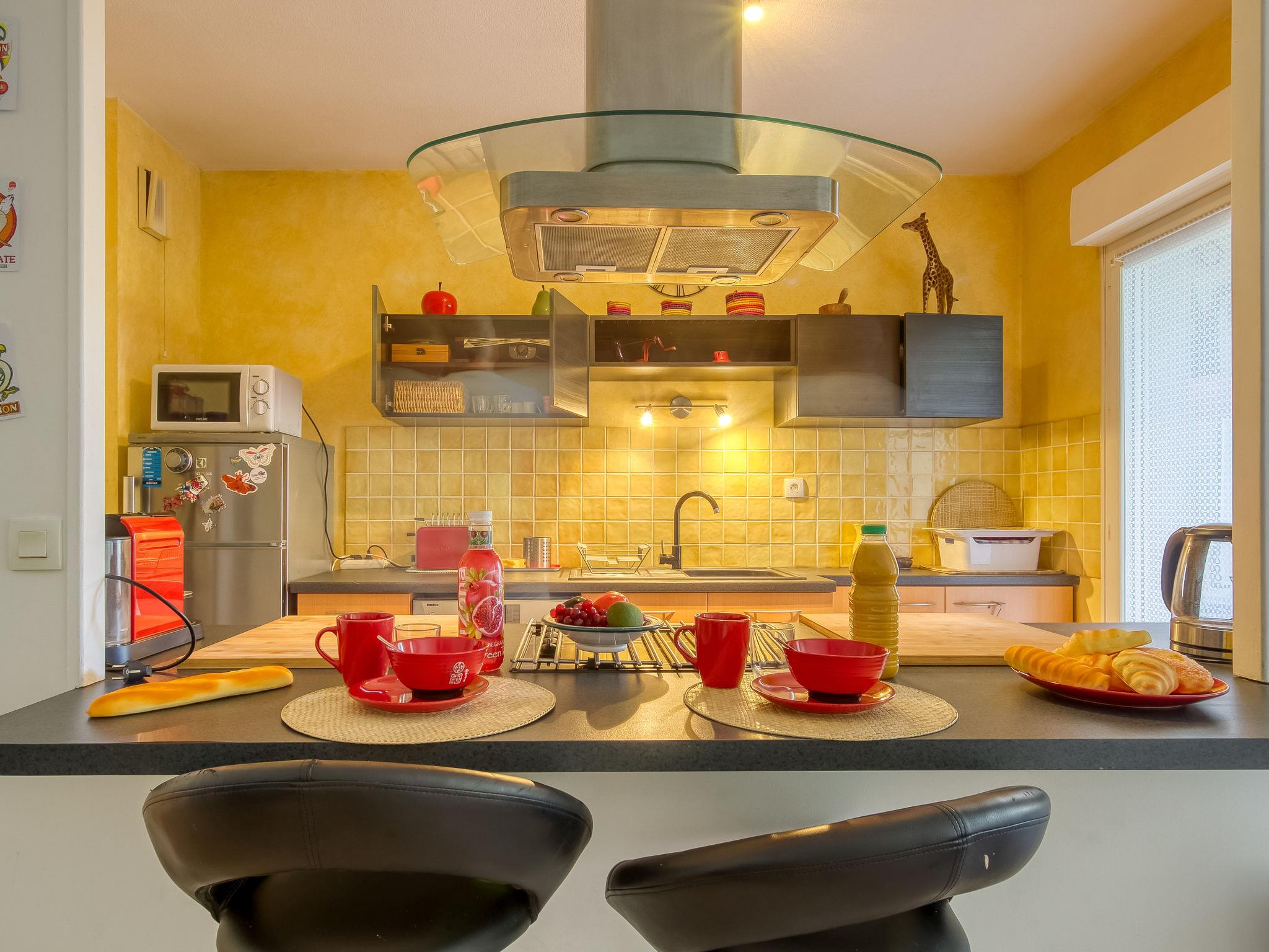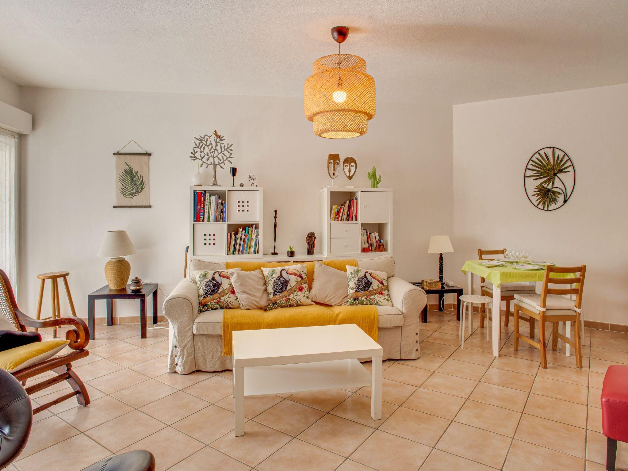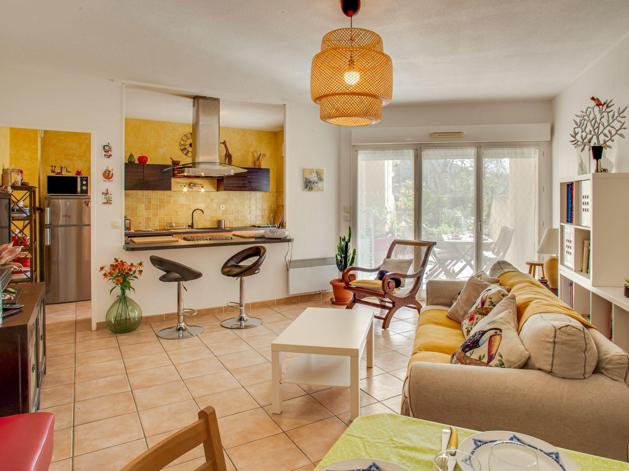 3-room apartment 65 m2, on the ground floor. Comfortable and beautiful furnishings: living/dining room with TV (flat screen). Exit to the terrace. 2 rooms, each room with 1 french bed (140 cm, length 190 cm). Open kitchen (oven, dishwasher, 4 ceramic glass hob hotplates, toaster, kettle, microwave, freezer, electric coffee machine, Capsules for coffee machine (NESPRESSO) extra). Exit to the terrace. Bathroom, sep. WC. Electric heating. Terrace 15 m2. Terrace furniture. Facilities: washing machine. Internet (WiFi, free). Garage. Please note: non-smokers only. TV only FR. Smoke alarm. 83112 000279 33