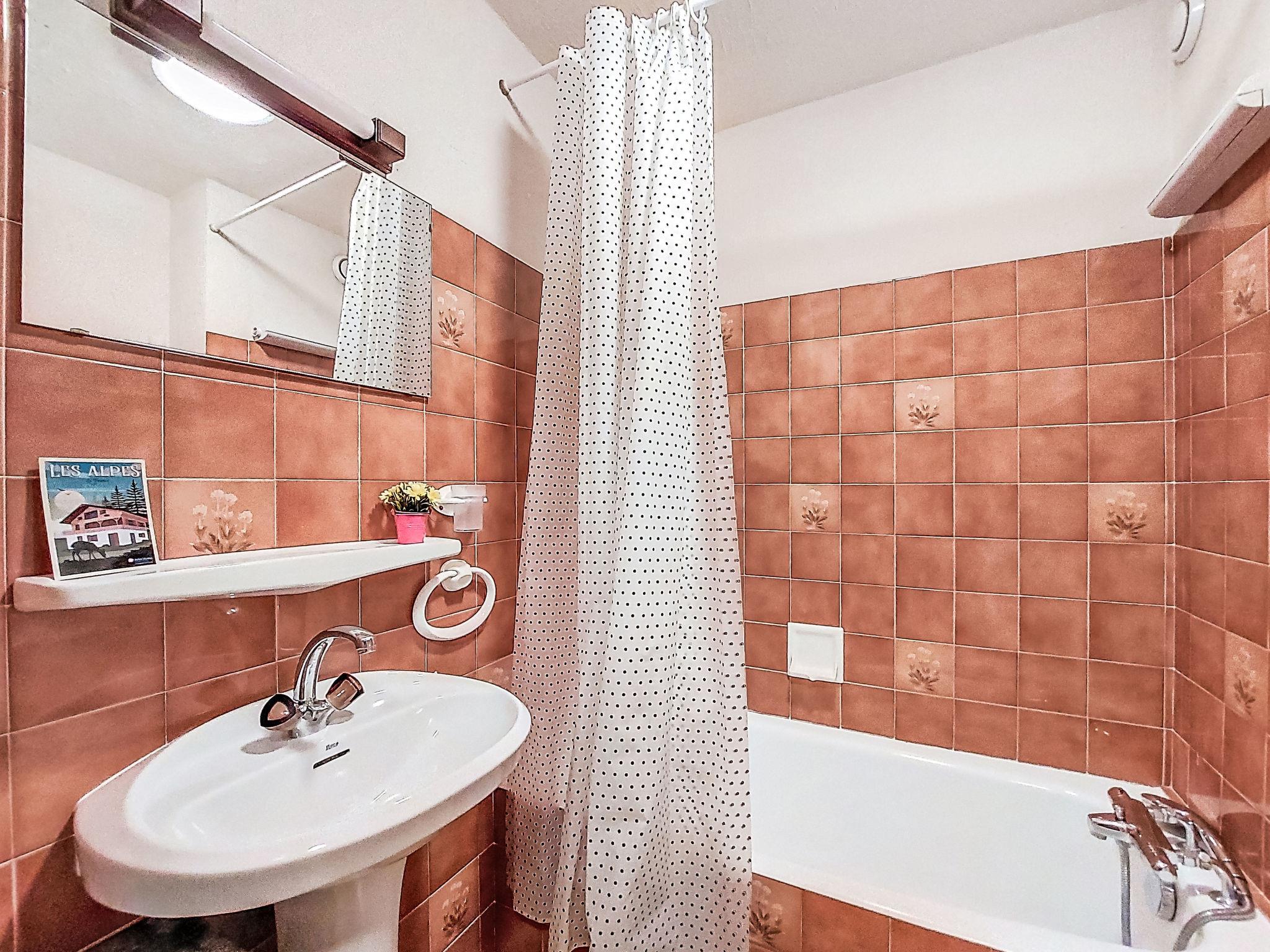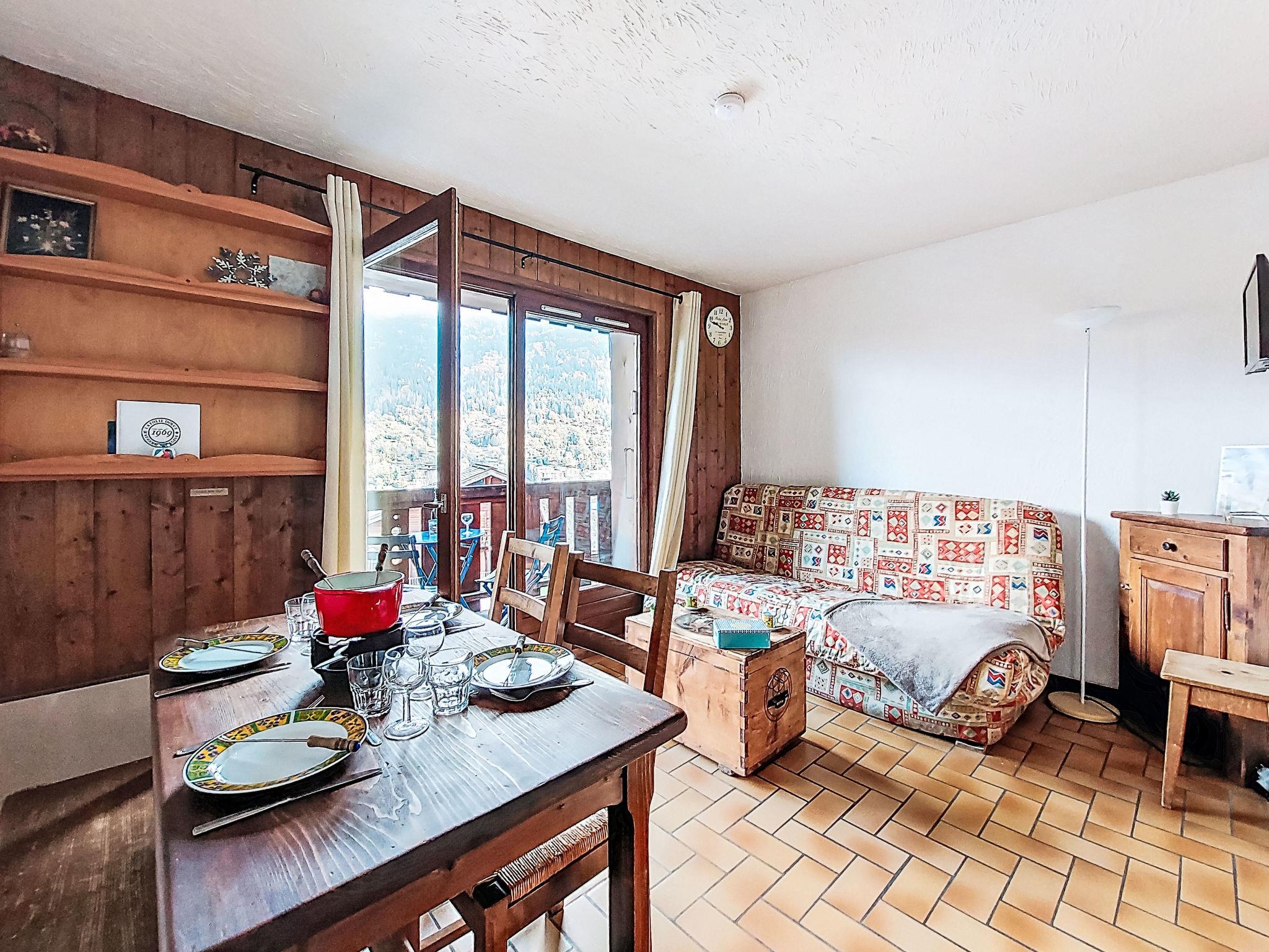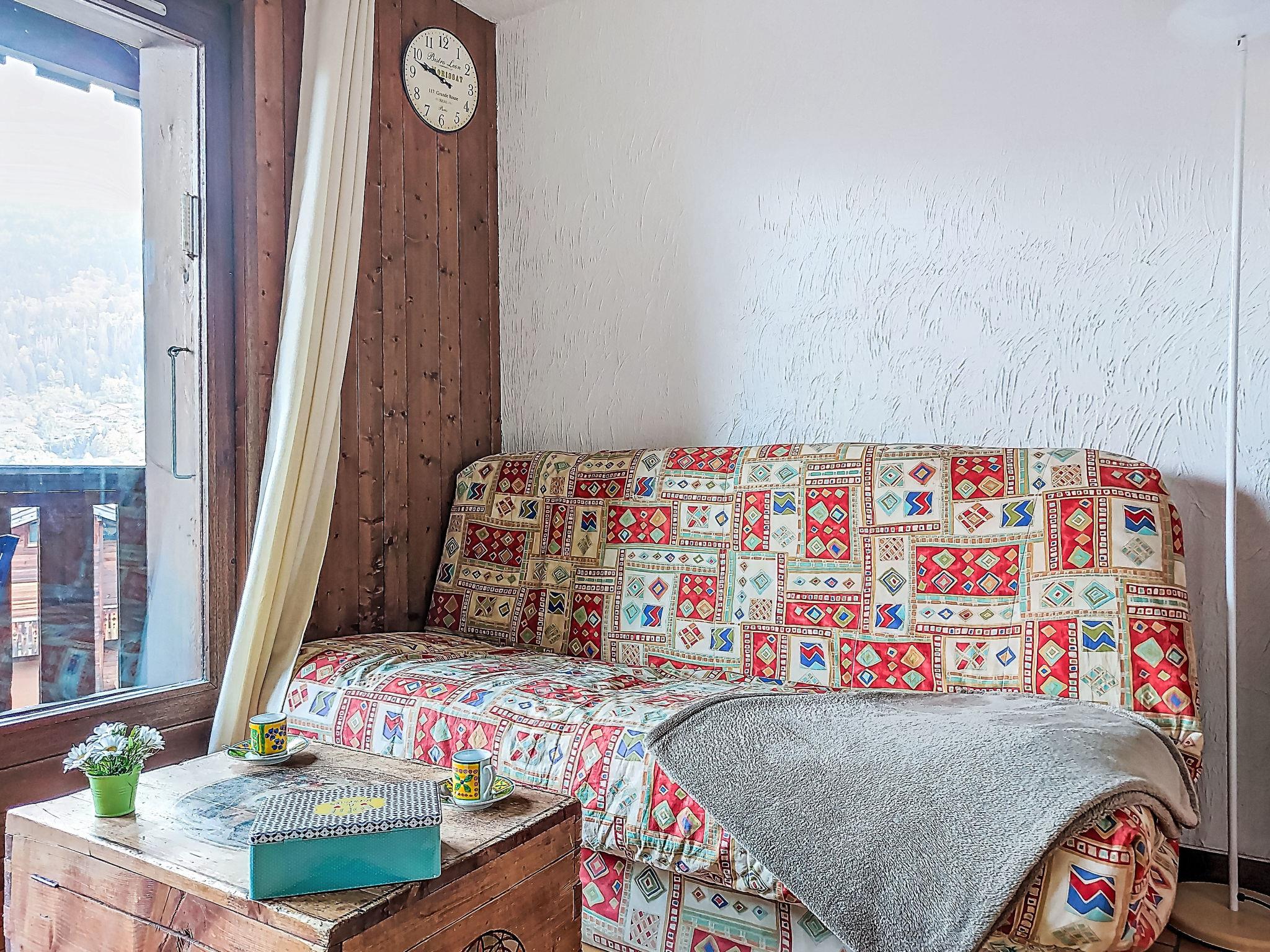 "Les Grets", 1-room studio 27 m2. Entrance hall with 1 x 2 bunk beds (80 cm, length 190 cm). Living/dining room with 1 sofabed (140 cm, length 190 cm), TV (flat screen). Exit to the balcony. Kitchenette (2 hot plates, toaster, kettle, microwave, electric coffee machine, raclette grill, fondue Set (cheese)). Bath/WC. Electric heating. Small balcony 3 m2, east facing position. Balcony furniture. Very beautiful view of the mountains and the swimming pool. Facilities: Internet (WiFi, extra). Please note: maximum 1 small pet/ dog allowed. TV only FR. Smoke alarm, no lift. Offer by a private individual according to Art. 155, IV of CGI.