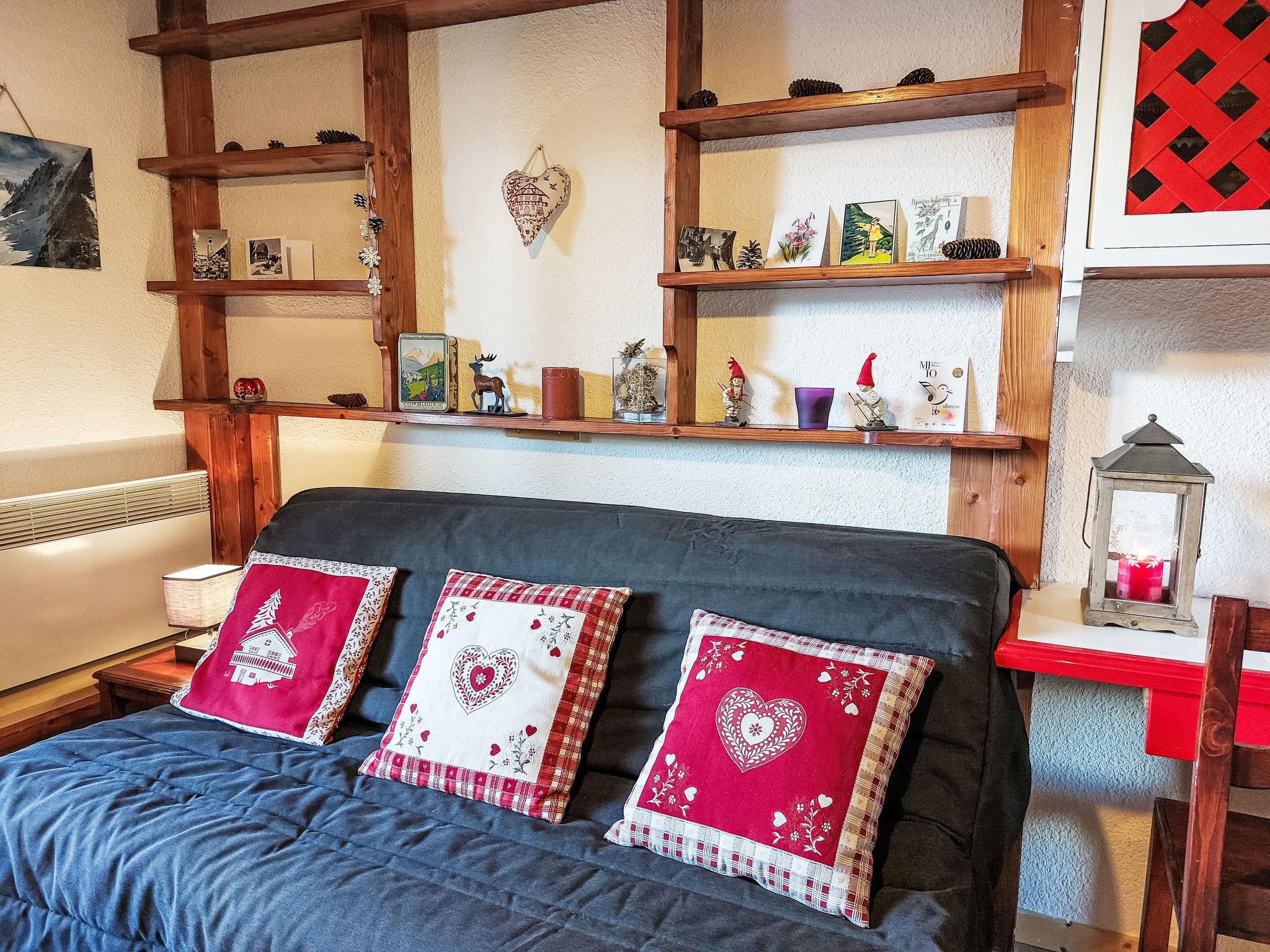 1-room studio 20 m2 on 1st floor. Entrance hall with 1 x 2 bunk beds (80 cm, length 190 cm). Living/dining room with 1 double sofabed (140 cm, length 190 cm). Kitchenette (2 hot plates, toaster, kettle, electric coffee machine, combination microwave). Bathroom, sep. WC. Electric heating. Small balcony 4 m2, east facing position. Beautiful view of the mountains. Facilities: Internet (WiFi, extra). Parking at 150 m. Please note: non-smokers only. 1 small pet/ dog allowed. TV only FR. Smoke alarm, no lift. Offer by a private individual according to Art. 155, IV of CGI.