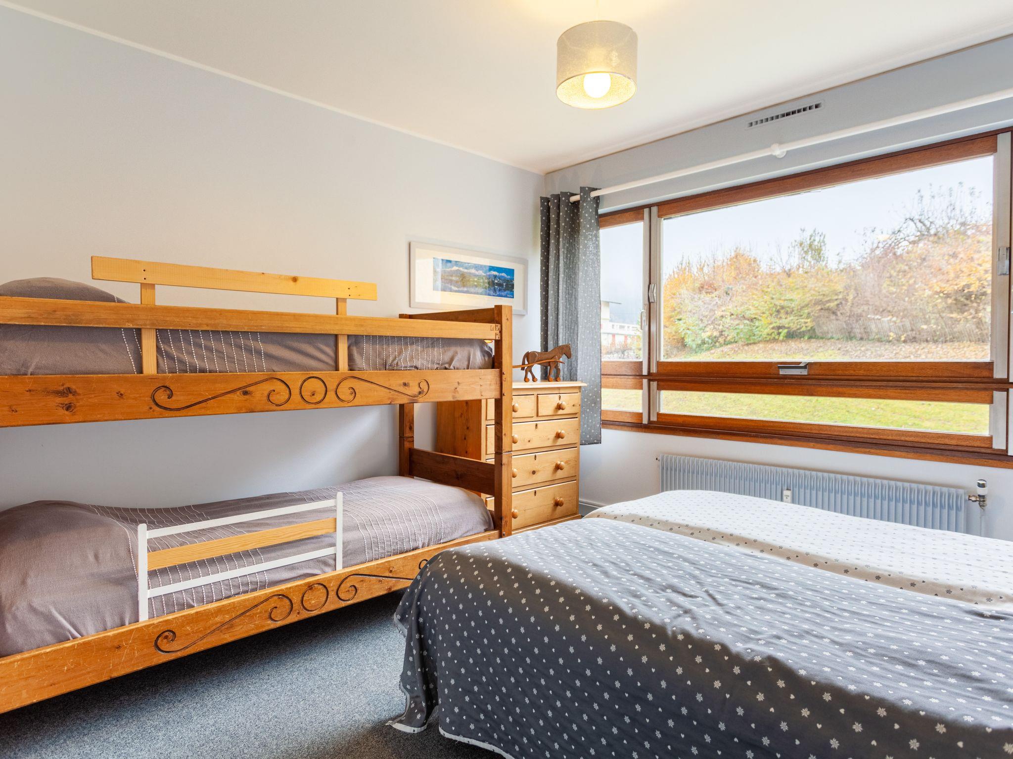 3-room apartment 93 m2 on 1st floor. Spacious: living/dining room 40 m2 with open-hearth fireplace (only for decoration), TV. Exit to the balcony. 1 room with 1 french bed (160 cm, length 190 cm). Exit to the balcony, south-east facing position. 1 room with 2 beds (80 cm, length 190 cm), 1 x 2 bunk beds (80 cm, length 190 cm). Kitchen (oven, dishwasher, 4 induction hot plates, toaster, kettle, electric coffee machine, Capsules for coffee machine (nespresso) extra, raclette grill, fondue Set (cheese)). Bathroom, sep. WC. 2 balconies, south-east facing position. Beautiful view. Facilities: washing machine. Internet (WiFi, free). Garage. Please note: non-smokers only. TV only FR. Smoke alarm.