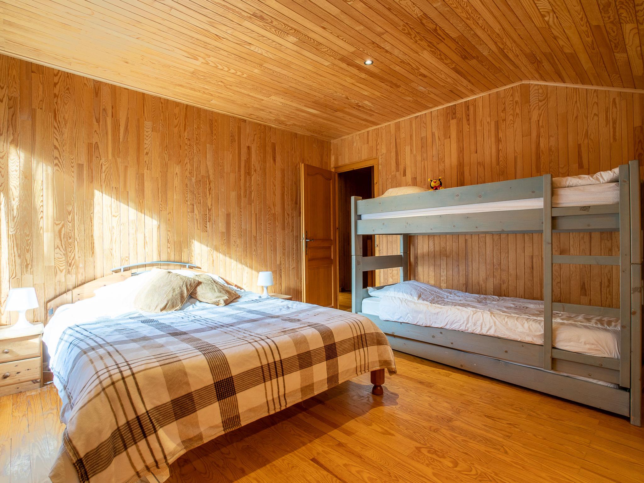"Chalet Mendiaux", 5-room chalet 200 m2 on 2 levels, south facing position. Living/dining room with open-hearth fireplace and TV. Exit to the terrace. 1 room with 1 french bed (160 cm). Open kitchen (4 hot plates, oven, dishwasher, toaster, kettle, microwave, freezer, electric coffee machine, raclette grill). Bathroom, sep. WC. Upper floor: 2 rooms, each room with 1 x 2 bunk beds (90 cm), 1 french bed (160 cm). 1 room with 1 french bed (160 cm). Bath/WC, shower. Electric heating. Balcony, south facing position. Facilities: washing machine, dryer. Internet (WiFi, free). Parking. Please note: non-smoking house. TV only FR. Smoke alarm.