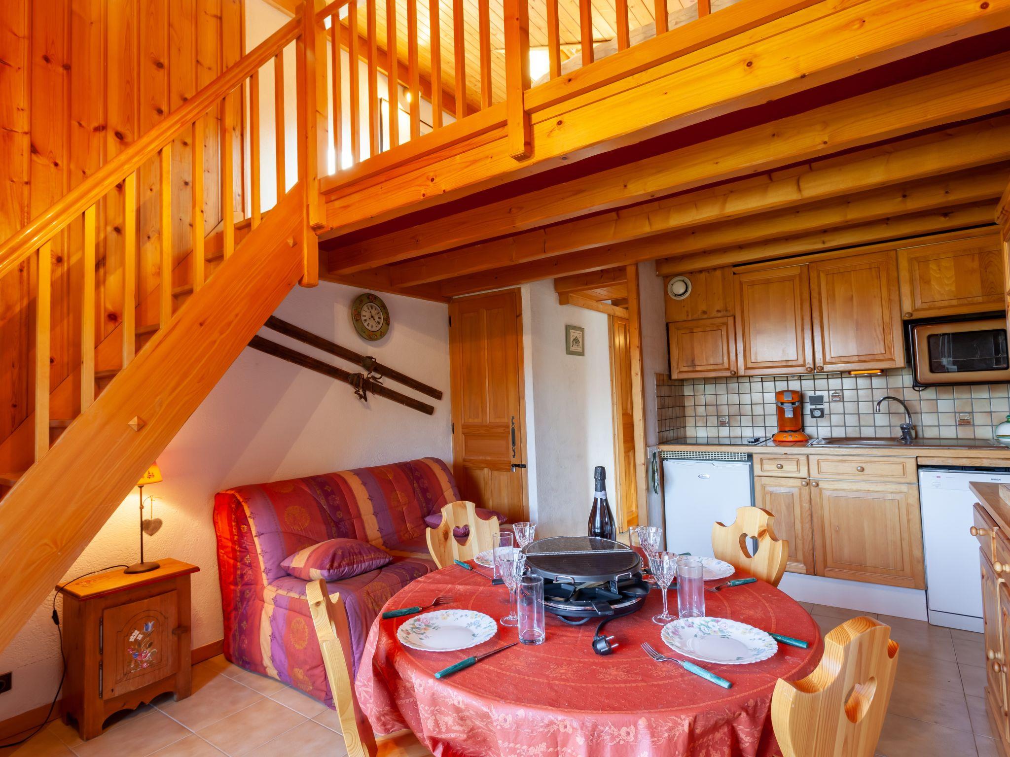 1-room studio 35 m2 on 2 levels on 3rd floor. Living/dining room with TV. Exit to the balcony. Sleeping alcove with 1 x 2 bunk beds (80 cm, length 190 cm). Open kitchen (4 hot plates, oven, dishwasher, toaster, kettle, electric coffee machine, Capsules for coffee machine (senseo) extra, raclette grill). Bathroom, sep. WC. Electric heating, boiler. Upper floor: open interconnecting room with sloping ceilings, Low door height 130 cm ceiling height 50 - 130 cm with 1 french bed (140 cm, length 190 cm). Interconnecting room with sloping ceilings, ceiling height 50 - 130 cm with 2 beds (80 cm, length 190 cm). Balcony 9 m2, west facing position. Balcony furniture. Beautiful view of the mountains and the valley. Facilities: washing machine. Internet (WiFi, extra). Parking. Please note: TV only FR. No lift. Instead of an enclosed bedroom, some sleeping areas are located in an open-plan area (gallery, alcove, etc.). Offer by a private individual according to Art. 155, IV of CGI.