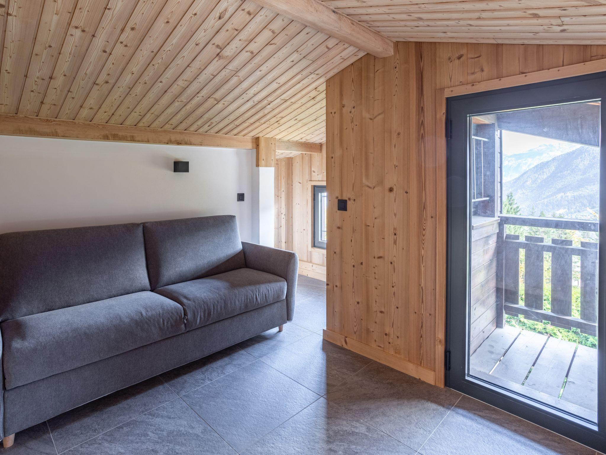 "L'Adret", 6-room house 300 m2. Object suitable for 6 adults + 8 children. Fully renovated in 2021, comfortable and modern furnishings: living/dining room with open-hearth fireplace (only for decoration), TV (flat screen). Exit to the balcony. 1 room with 1 french bed (180 cm, length 200 cm), bath/WC. 1 room with 2 x 2 bunk beds (90 cm, length 200 cm). Open kitchen (oven, dishwasher, 3 induction hot plates, toaster, kettle, electric coffee machine, Capsules for coffee machine (Nespersso) extra, raclette grill, combination microwave, fondue Set (cheese)). Sep. WC. On the lower ground floor: 1 room with 2 x 2 bunk beds (80 cm, length 190 cm). 1 room with 1 french bed (180 cm, length 200 cm). Bath/WC. Electric heating. Upper floor: 1 room with 1 french bed (180 cm, length 200 cm). Open gallery with 1 sofabed (180 cm, length 200 cm). Shower/WC. Electric heating. Balcony 20 m2, north-east facing position, large terrace 20 m2, north-east facing position and south-east facing position. Terrace furniture. Very beautiful panoramic view of the mountains. Facilities: washing machine, dryer, children's high chair, baby cot. Internet (WiFi, free). Parking (3 cars). Please note: non-smoking house. No lift. Instead of an enclosed bedroom, some sleeping areas are located in an open-plan area (gallery, alcove, etc.). Offer by a private individual according to Art. 155, IV of CGI. 742360219037