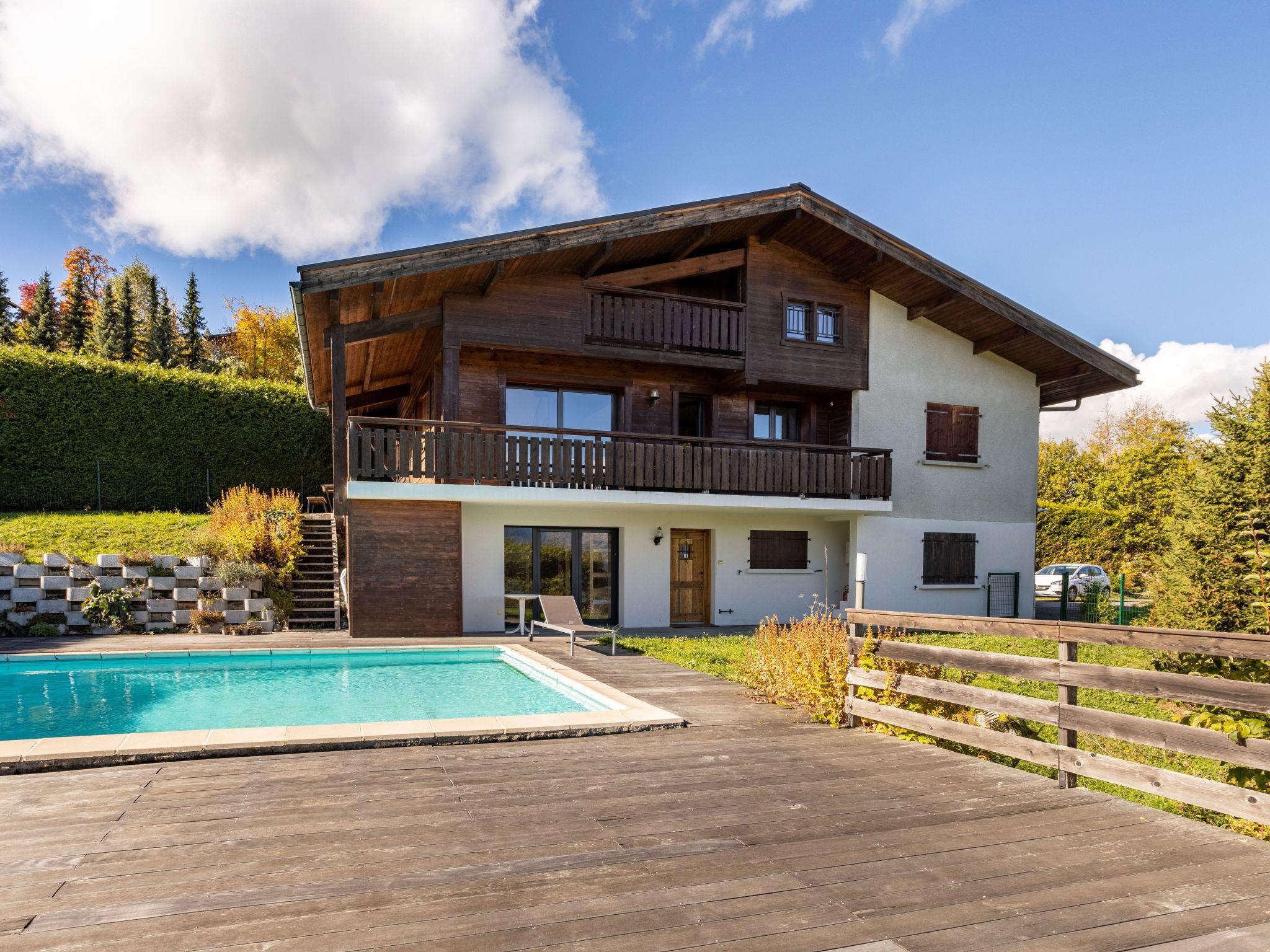 Large, modern single-family house "L'Adret", 2 storeys, renovated in 2021. Above Saint-Gervais les Bains, in the district of Cupelin, 7.2 km from the centre, in a quiet position, 1.2 km from the skiing area. Private: property, swimming pool angular, heated (10 x 5 m, depth 120 - 220 cm, seasonal availability: 01.Jul. - 15.Sep.). In the house: storage room for skis. In Winter: please take snow chains. Parking (for 3 cars). Grocery 650 m, restaurant 1.3 km, bus stop "Pierre Plate (en Hiver)" 250 m, indoor swimming pool 8.5 km, thermal baths "Les Thermes de Saint-Gervais" 11 km. Gondola lift 1.2 km, slopes 250 m. Well-known ski regions can easily be reached: Evasion Mont Blanc 1.2 km. Please note: car recommended.