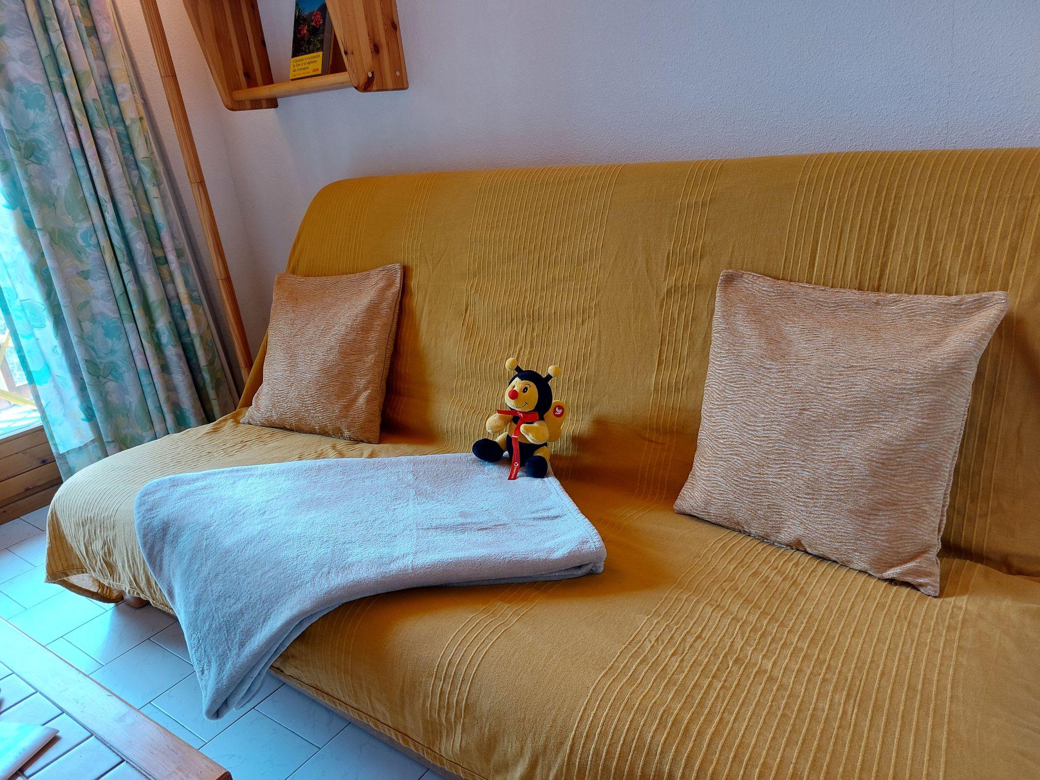 "Martagon", 2-room apartment 25 m2 on 3rd floor. Living/dining room with 1 double sofabed (140 cm), TV and flat screen. Exit to the balcony. 1 small room with 1 x 2 bunk beds (90 cm). Kitchenette (2 hot plates, oven, toaster, kettle, electric coffee machine, raclette grill). Bathroom, sep. WC. Electric heating. Balcony 5 m2, west facing position. Balcony furniture. Beautiful view of the mountains. Facilities: Internet (WiFi, extra). Please note: non-smokers only. TV only FR. Smoke alarm, no lift.
