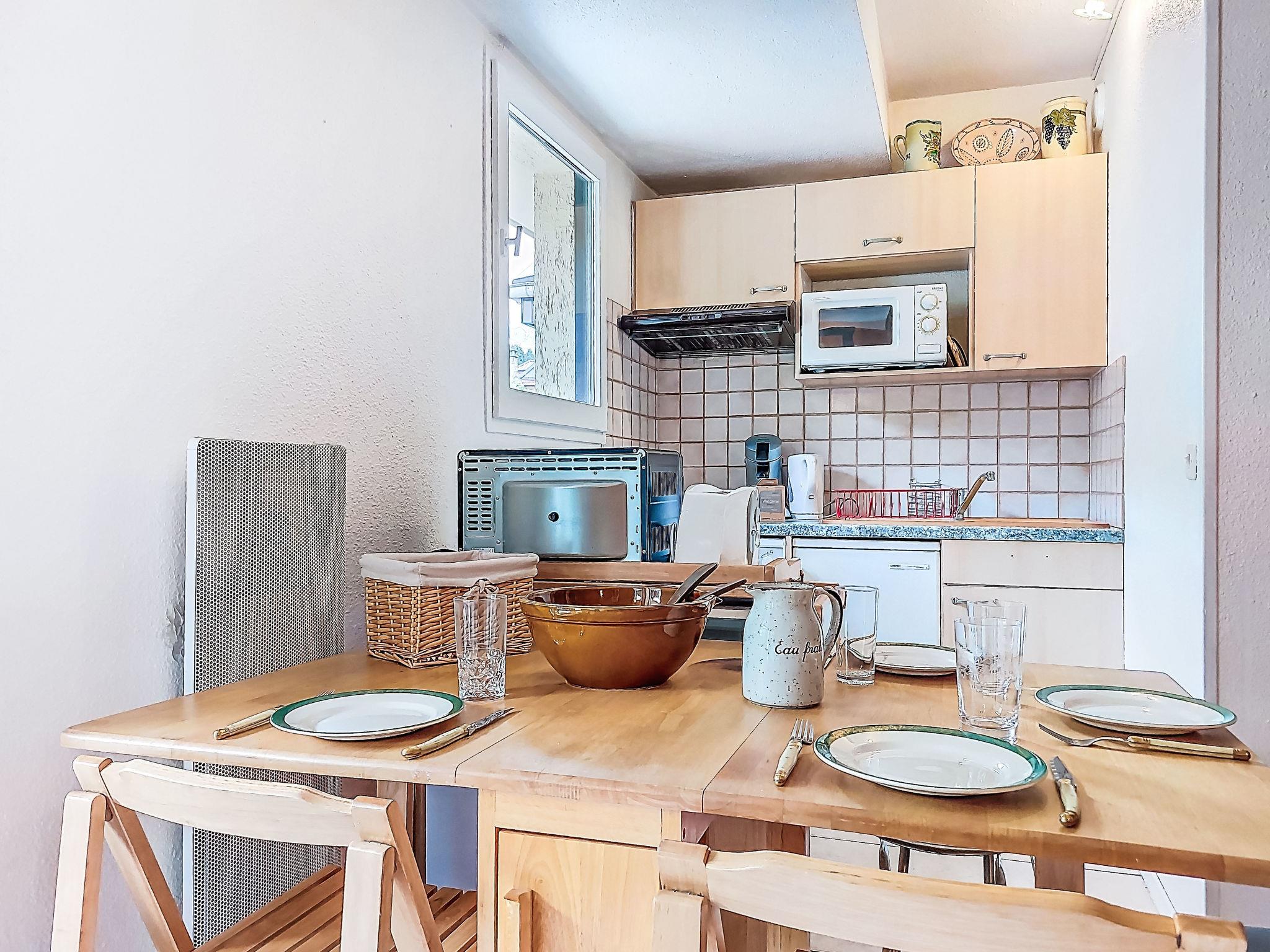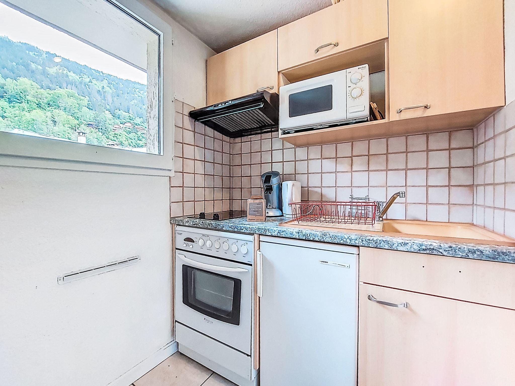 "La Comtesse", 1-room apartment 23 m2 on 3rd floor. Living/dining room with 1 double sofabed (135 cm), TV, flat screen and CD-player. Exit to the balcony. Alcove with 1 french bed (120 cm). Kitchenette (2 hot plates, toaster, kettle, electric coffee machine, Capsules for coffee machine (Senseo) extra). Bath/WC. Electric heating. Small balcony, east facing position. Beautiful view of the mountains. Facilities: Internet (WiFi, free). Parking (roofed, 1 car). Please note: non-smokers only. Maximum 1 pet/ dog allowed. TV only FR. Instead of an enclosed bedroom, some sleeping areas are located in an open-plan area (gallery, alcove, etc.).