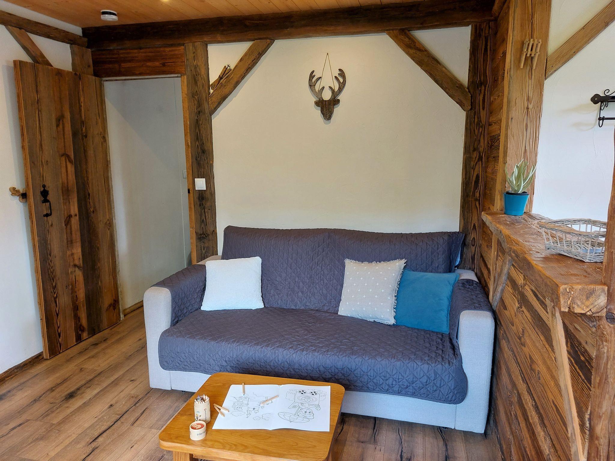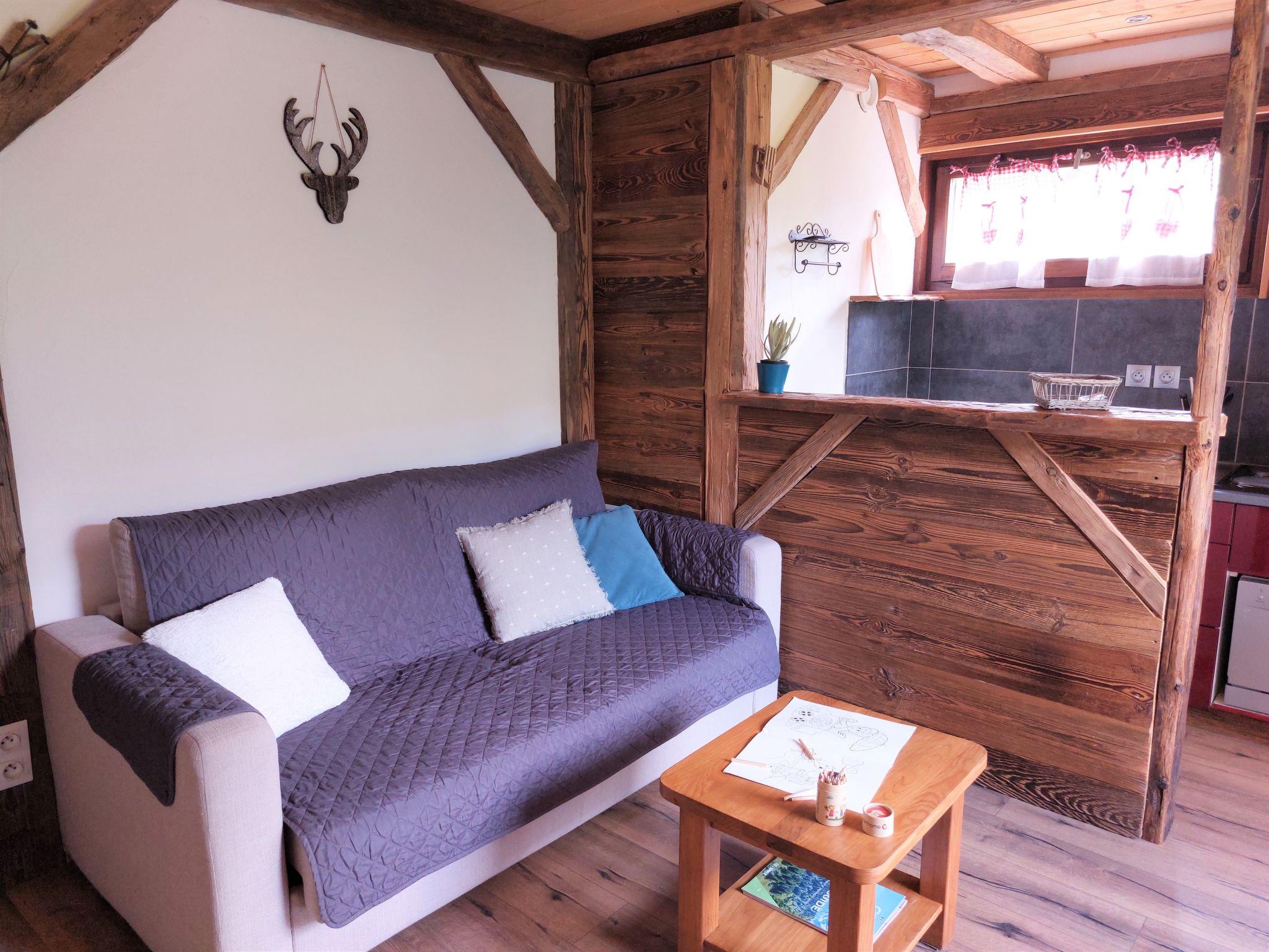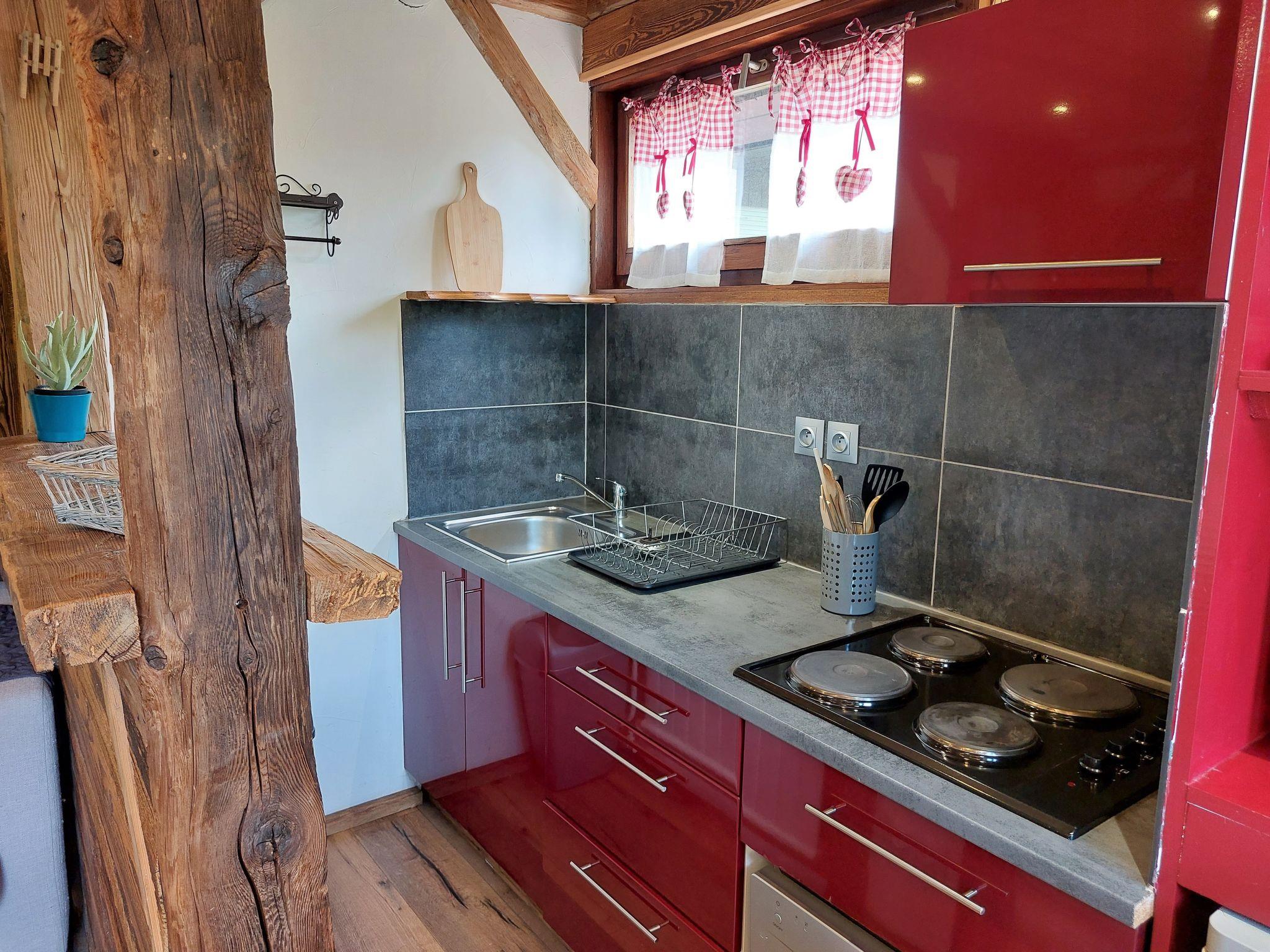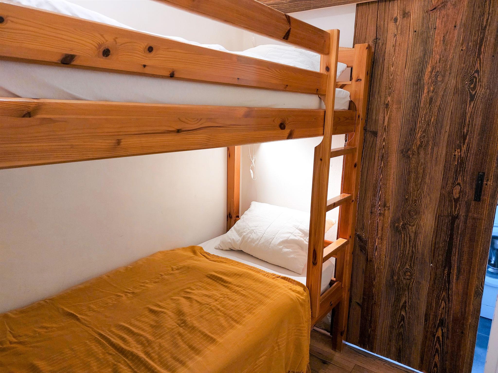 "Castel des roches", 1-room studio 25 m2 on 3rd floor. Living/dining room with 1 double sofabed (140 cm, length 190 cm), dining table, TV and flat screen. Exit to the balcony. Entrance hall with 1 x 2 bunk beds (90 cm). Open kitchen (4 hot plates, dishwasher, kettle, microwave, electric coffee machine, raclette grill). Shower/WC. Oil heating. Small balcony, south-east facing position. Balcony furniture. Beautiful view of the mountains. Facilities: washing machine. Internet (WiFi, extra). Parking. Please note: non-smokers only. TV only FR. Smoke alarm. Offer by a private individual according to Art. 155, IV of CGI.