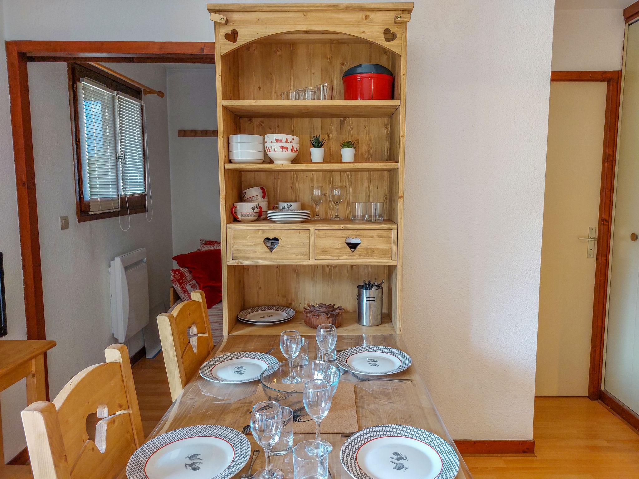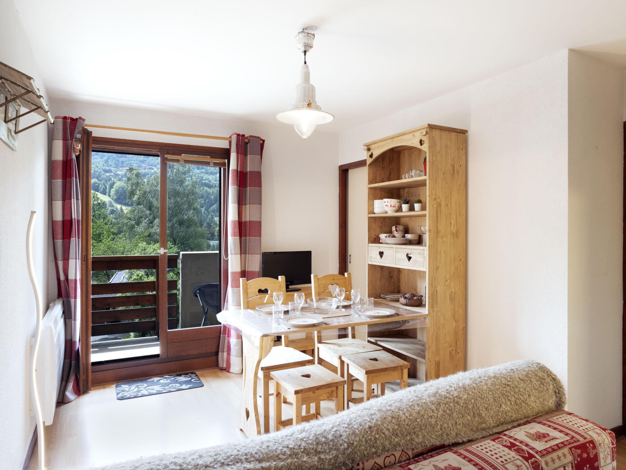 "Les chalets du soleil", 1-room studio 22 m2 on 1st floor. Living/dining room with 1 sofabed (140 cm, length 200 cm), TV (flat screen). Exit to the balcony. Sleeping alcove with 2 pull-out beds (2 x 80 cm, length 190 cm). Kitchenette (2 hot plates, toaster, kettle, electric coffee machine, combination microwave). Bath/WC. Electric heating. Balcony, west facing position. Balcony furniture. Beautiful panoramic view of the mountains. Facilities: Internet (WiFi, extra). Garage space n 11. Please note: TV only FR. Smoke alarm. Instead of an enclosed bedroom, some sleeping areas are located in an open-plan area (gallery, alcove, etc.). Offer by a private individual according to Art. 155, IV of CGI. 742360259092
