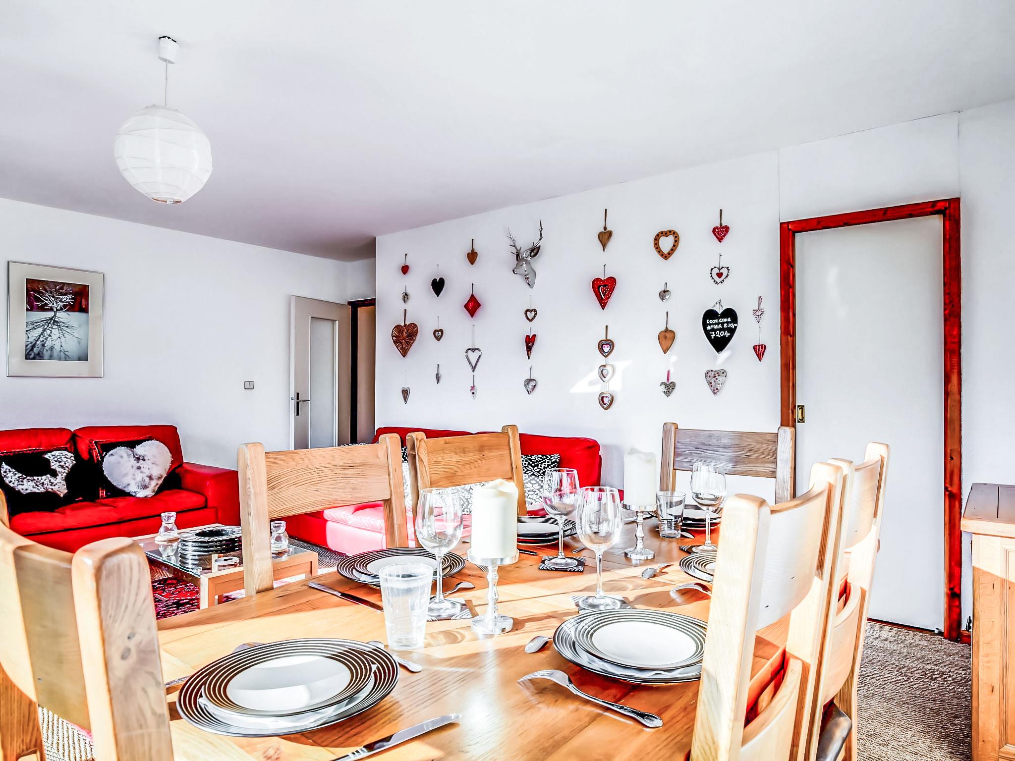 "Fleurs des Alpes", 3-room apartment 70 m2 on 4th floor. Object suitable for 2 adults + 4 children. Living/dining room with flat screen and DVD. Exit to the balcony. 1 room with 1 french bed (2 x 90 cm). 1 room with 2 x 2 bunk beds (90 cm). Kitchen (oven, dishwasher, 4 induction hot plates, toaster, kettle, electric coffee machine, combination microwave). Bathroom, sep. WC. Electric heating, underfloor heating. Balcony, south-west facing position and west facing position. View of the mountains. Facilities: washing machine. Internet (WiFi, free). Please note: non-smokers only. TV only FR. Smoke alarm.