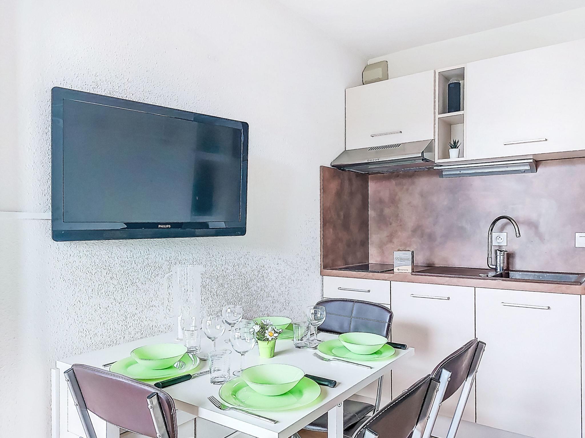 "L'Aiguille Noire", 1-room studio 24 m2 on 2nd floor. Living/dining room with 1 wall-trunk bed (160 cm, length 200 cm). Exit to the balcony. Alcove with 2 beds (80 cm, length 190 cm), 1 x 1 bunk beds (90 cm, length 190 cm). Kitchenette (dishwasher, 2 induction hot plates, toaster, kettle, microwave, electric coffee machine, Capsules for coffee machine (Senseo) extra, fondue Set (cheese)). Shower, sep. WC. Small balcony 3 m2, east facing position and south-east facing position. Very beautiful panoramic view of the mountains. Facilities: Internet (WiFi, extra). Please note: non-smokers only. Maximum 1 pet/ dog allowed. TV only FR. Smoke alarm, no lift. Offer by a private individual according to Art. 155, IV of CGI.