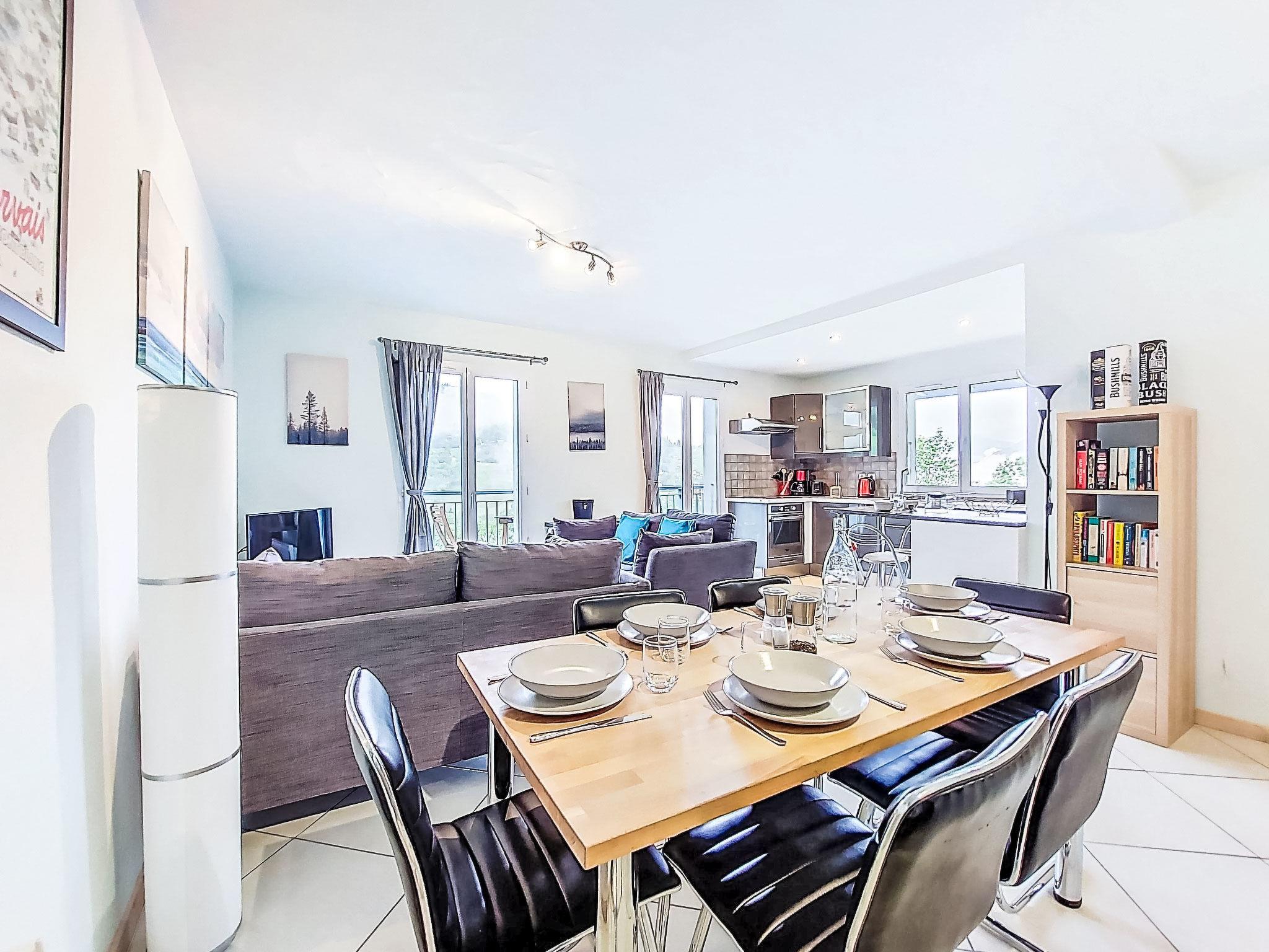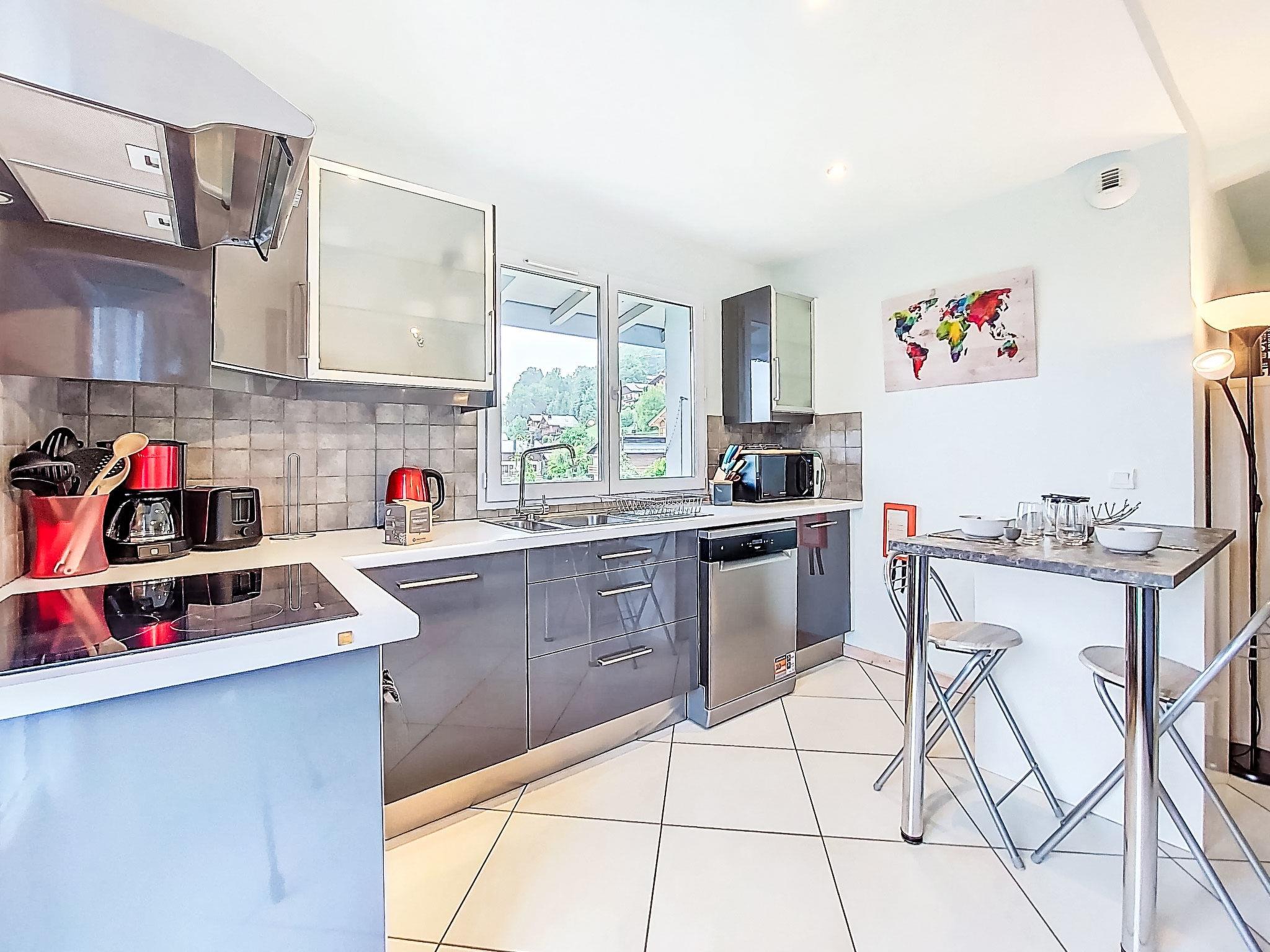 "Les Gentianes", 3-room apartment 59 m2 on 3rd floor. Living/dining room with TV and flat screen. Exit to the balcony. 2 rooms, each room with 1 french bed (1 x 140 cm). Sleeping alcove with 1 x 2 bunk beds (90 cm). Open kitchen (oven, dishwasher, 4 ceramic glass hob hotplates, toaster, kettle, microwave, electric coffee machine). Bathroom, shower/WC. Electric heating. Balcony 6 m2. Beautiful view of the mountains. Facilities: washing machine, hair dryer. Internet (WiFi, free). Blu-ray player. Parking (roofed, 1 car). Please note: non-smokers only. TV only FR, EN. Smoke alarm. Instead of an enclosed bedroom, some sleeping areas are located in an open-plan area (gallery, alcove, etc.).