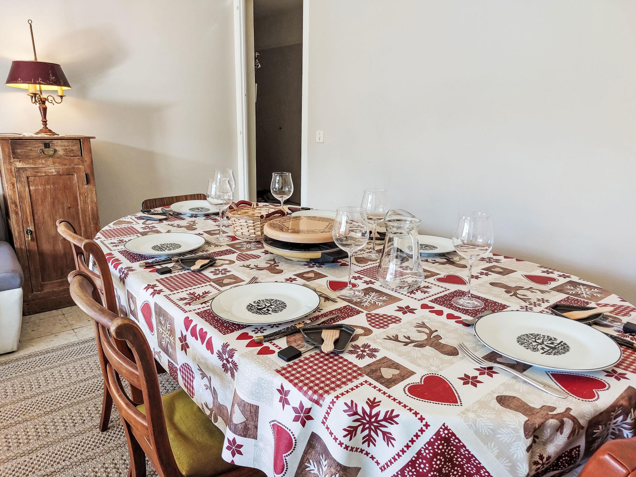 "Androsace", 5-room apartment 109 m2 on 1st floor. Spacious: living/dining room with TV (flat screen). Exit to the balcony. 1 room with 1 french bed (160 cm, length 190 cm). Exit to the balcony. 1 room with 1 french bed (140 cm, length 190 cm). 1 room with 2 beds (90 cm, length 190 cm). Exit to the balcony. 1 room with 2 beds (80 cm, length 190 cm). Kitchen (oven, 3 induction hot plates, toaster, kettle, microwave, freezer, electric coffee machine, raclette grill) with dining table. Exit to the balcony. Bathroom, double hand-basin. Oil heating. 2 small balconies 3 m2, east facing position, large balcony 7 m2, west facing position. Balcony furniture. Beautiful view of the mountains. Facilities: washing machine. Internet (WiFi, free). Garage (1 car). Please note: non-smokers only. TV only FR. Smoke alarm, no lift. Offer by a private individual according to Art. 155, IV of CGI.