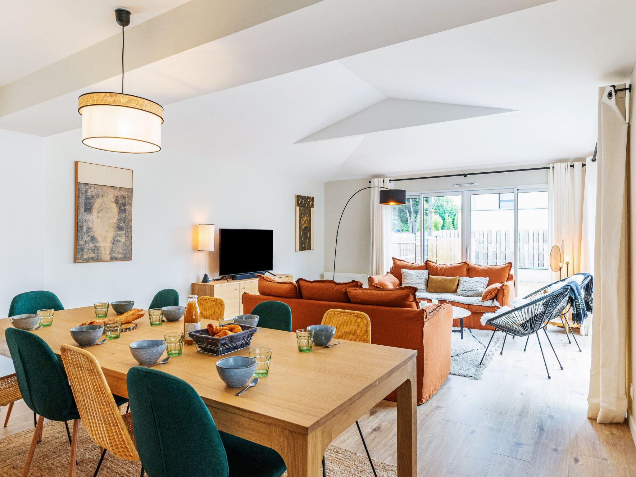 5-room terraced house 137 m2 on 2 levels. Comfortable and modern furnishings: living/dining room with TV (flat screen). Exit to the garden. 1 room with 1 double bed (160 cm, length 200 cm). Open kitchen (oven, dishwasher, 3 induction hot plates, toaster, kettle, microwave, electric coffee machine, Capsules for coffee machine (Nespresso) extra). Shower, sep. WC. Air-conditioning, forced-air heating. Upper floor: 2 rooms with Dressing room, each room with 2 beds (80 cm, length 200 cm). 1 room with Dressing room with 1 double bed (160 cm, length 200 cm). Bath/shower, 2 showers, 3 sep. WC's. Air-conditioning. Large terrace. Terrace furniture, barbecue. Facilities: washing machine, dryer, hair dryer. Internet (WiFi, free). Parking. Please note: suitable for families. Non-smoking house. Smoke alarm. Sonos soundbar. Ground floor bathroom PRM access. Offer by a private individual according to Art. 155, IV of CGI.