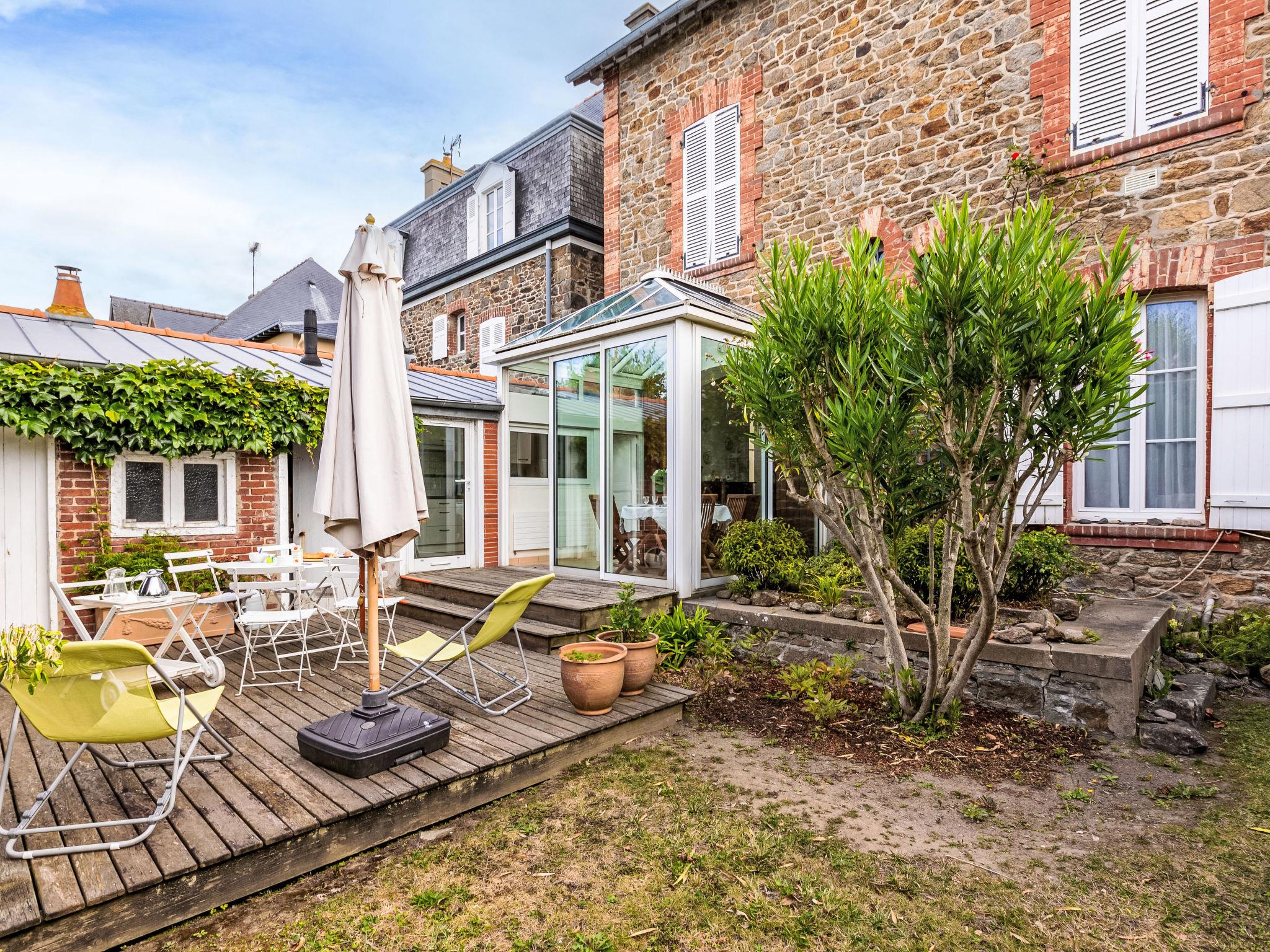 Old, rustic manor house "La Solaine", 3 storeys. In the district of Courtoisville, in the residential district, excellent location: right in the centre but still quiet, 280 m from the sea, 280 m from the beach. Private: well-kept garden (fenced) with lawn 200 m2. Terrace, garden furniture, barbecue. In the house: storage room for bicycles. Public parking on the road. Shop 300 m, grocery, supermarket 240 m, shopping centre 4.4 km, restaurant, bar 400 m, bakery 300 m, bicycle rental 350 m, bus stop "Courtoisville" 190 m, railway station "Gare TGV St Malo" 1.2 km, ferry "Gare maritime du Naye" 3.5 km, sandy beach "Plage du Sillon" 700 m, thermal baths "Thermes marin de Saint Malo" 350 m. Sports harbour 1.8 km, golf course (18 hole) 17.5 km, surf school, sailing school 500 m, minigolf 9.2 km. Nearby attractions: Cancale 13.7 km, Dinard 12.4 km, Dinan 31.2 km, Dol de Bretagne 27.8 km, Grand Aquarium de Saint-Malo 4.8 km, Mont Saint-Michel 53.8 km.