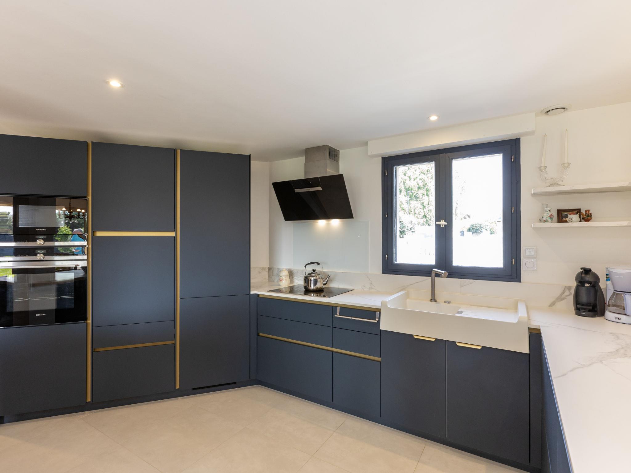4-room house 120 m2 on 2 levels. Renovated in 2024, comfortable and tasteful furnishings: living/dining room with panoramic window with open-hearth fireplace (only for decoration), TV (flat screen). Exit to the terrace. Large, open kitchen (oven, dishwasher, 4 induction hot plates, toaster, kettle, microwave, freezer, cooking island). Sep. WC. Upper floor: 1 room with 1 french bed (1 x 140 cm, length 190 cm), TV (flat screen). Exit to the balcony. 1 room with 1 french bed (1 x 140 cm, length 190 cm). 1 room with 2 beds (90 cm, length 190 cm). Shower, sep. WC, double hand-basin. Electric heating. Terrace 20 m2, south facing position and, east facing position, large garden 400 m2, south-east facing position. Balcony furniture. Facilities: washing machine, hair dryer. Internet (WiFi, free). Please note: smoke alarm. Offer by a private individual according to Art. 155, IV of CGI. 35288006015A1