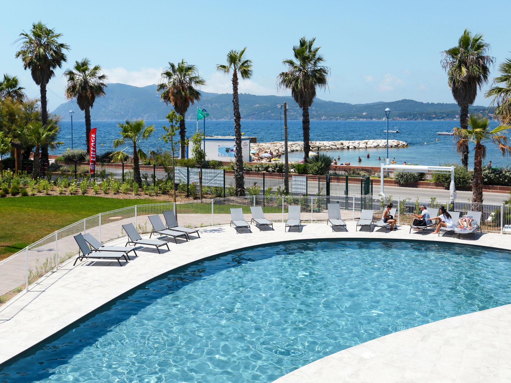 Child friendly resort "Le Cap Azur", built in 2018. 154 apartments in the residence. 3 km from the centre of Saint-Mandrier-sur-Mer, 6 km from the centre of La Seyne-sur-Mer, 13 km from the centre of Toulon, in the residential district, 20 m from the sea. For shared use: property 13 ha (fenced) with plants and flowers, swimming pool heated, fenced (100 m2, seasonal availability: 01.Jan. - 31.Dec.). Outdoor shower, terrace, children's playground. In the complex: reception, breakfast room, internet access, WiFi, sauna, fitness room, massage (extra). Hot tub, lift, washing machine, tumble dryer (for shared use, extra). Breakfast possible (extra). Shop 200 m, sandy beach "Les Sablettes" 700 m pebble beach "Saint Asile" 20 m. Please note: residence with electric gates. The photograph shows a typical example. The holiday properties may differ in living space, floorplan, equipment and furnishing.