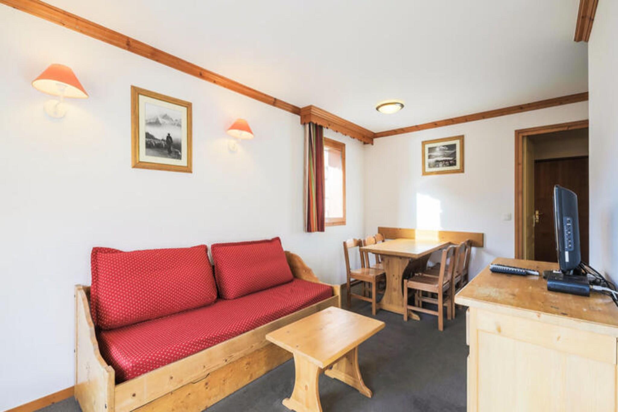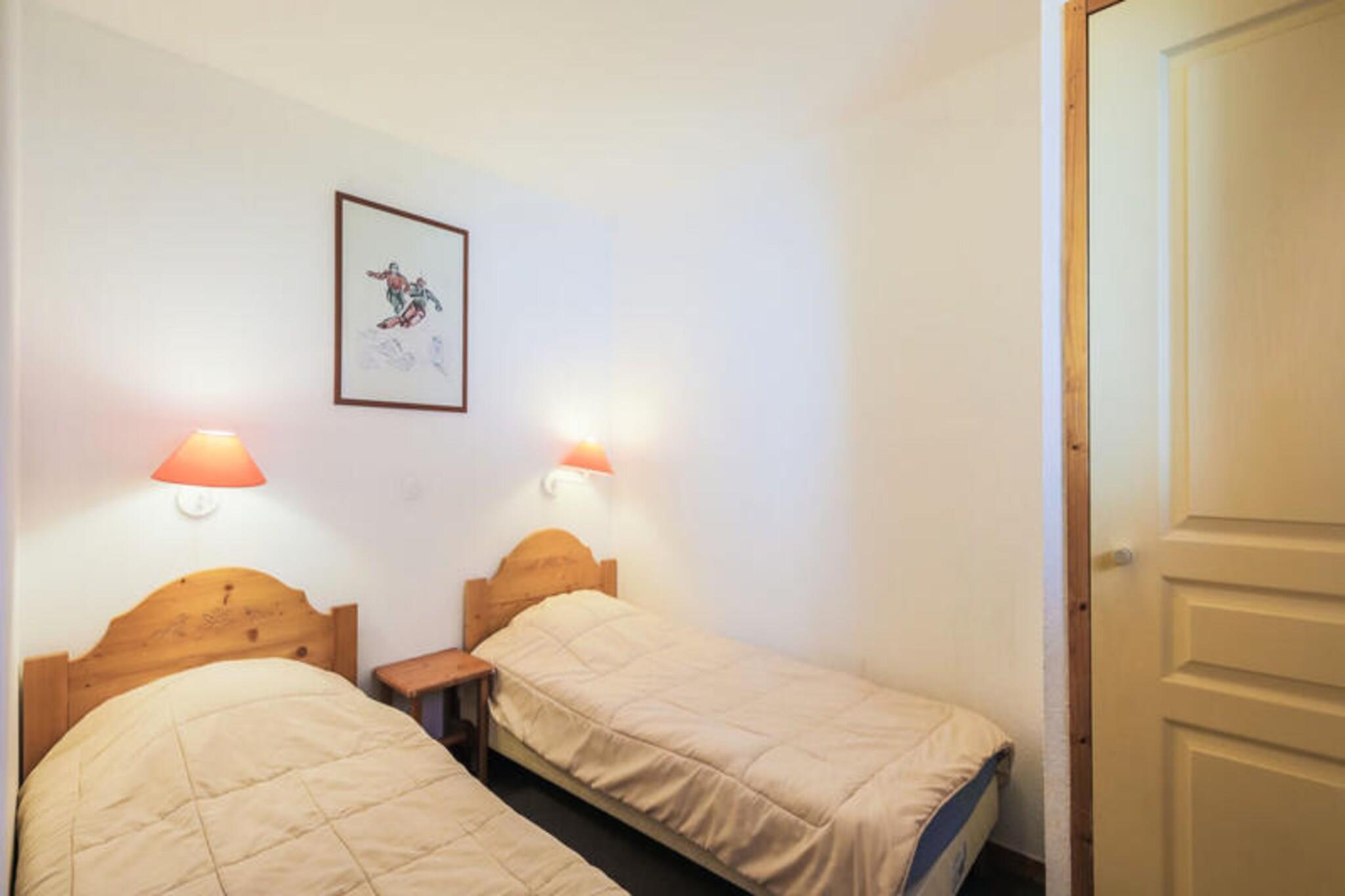 Departure on skis to reach the slopes of the Trois Vallées in the blink of an eye. In the immediate vicinity of the Bruyères district, close to restaurants, shops and entertainment. A dynamic and lively resort offering a wide choice of activities for young and old. Your vacation rental includes: 1 living room, 1 kitchen, 2 bedrooms, 1 bathroom, 1 separate toilet and 1 balcony. Area: 40 m². Location: Ground floor. Composition of the living room: 1 pull-out sofa bed (sleeps 2) Meal side: 1 table with 6 chairs. Kitchen open to the living room. Composition of the rooms: Bedroom 1: 1 double bed Bedroom 2: 2 single beds Composition of the bathroom: bathtub-shower 1 separate toilet. Pets allowed - In addition, inquire directly with the residence for prices. Baby Kit - 45€ / week and 33€ / short stay (a folding bed without mattress, a baby chair (from 6 months), a bathtub and a bed rail) - Subject to availability, to be reserved in advance, to be paid on site Bed linen - On request, at extra charge Bathroom linen - On request, at extra charge End of stay cleaning - Mandatory cleaning service to be paid upon check-in. Daily cleaning - Available at an additional cost, inquire at reception for rates. Parking - free uncovered with 4000 spaces, nearby Covered parking - in the center of the station (information on 04.79.00.73.00) Tourist tax (additional charge) - Payment of the tourist tax is made via your personal space: https://mon-compte.maeva.com, the amount varies depending on the location. Free for under 18s. Television - Depending on accommodation. Internet access - extra Bed linen - Additional charge. End of stay cleaning - Mandatory cleaning service to be paid upon check-in.