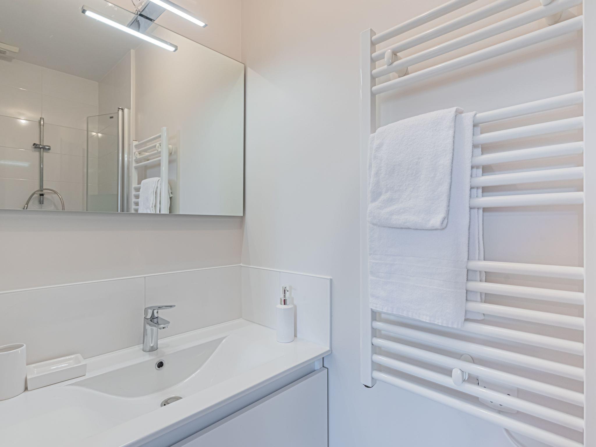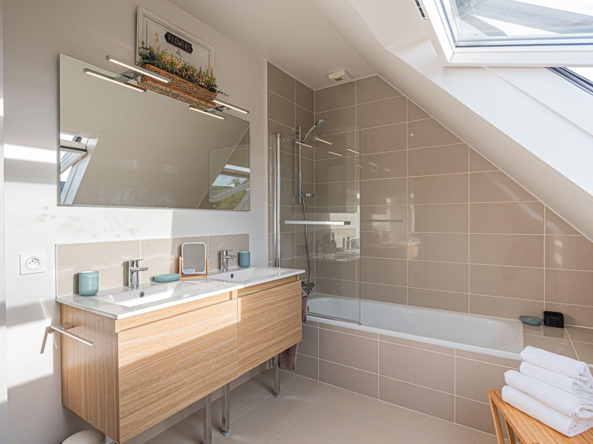 4-room house 100 m2 on 2 levels. Comfortable and beautiful furnishings: living/dining room with TV (flat screen). Exit to the terrace. 1 room with 2 beds (80 cm, length 200 cm), hand-basin and shower. Open kitchen (oven, dishwasher, 3 ceramic glass hob hotplates, toaster, kettle, microwave, freezer, electric coffee machine, Capsules for coffee machine (Nespresso) extra). Sep. WC. Upper floor: 1 room with 2 beds (90 cm, length 200 cm). 1 room with 1 french bed (1 x 160 cm, length 200 cm). Bathroom, sep. WC, double hand-basin. Terrace 20 m2. Terrace furniture, electric barbecue, deck chairs (4). View of the garden. Facilities: washing machine, dryer, iron, baby cot, hair dryer. Internet (WiFi, free). Parking (2 cars). Please note: smoke alarm. 56233000116KU