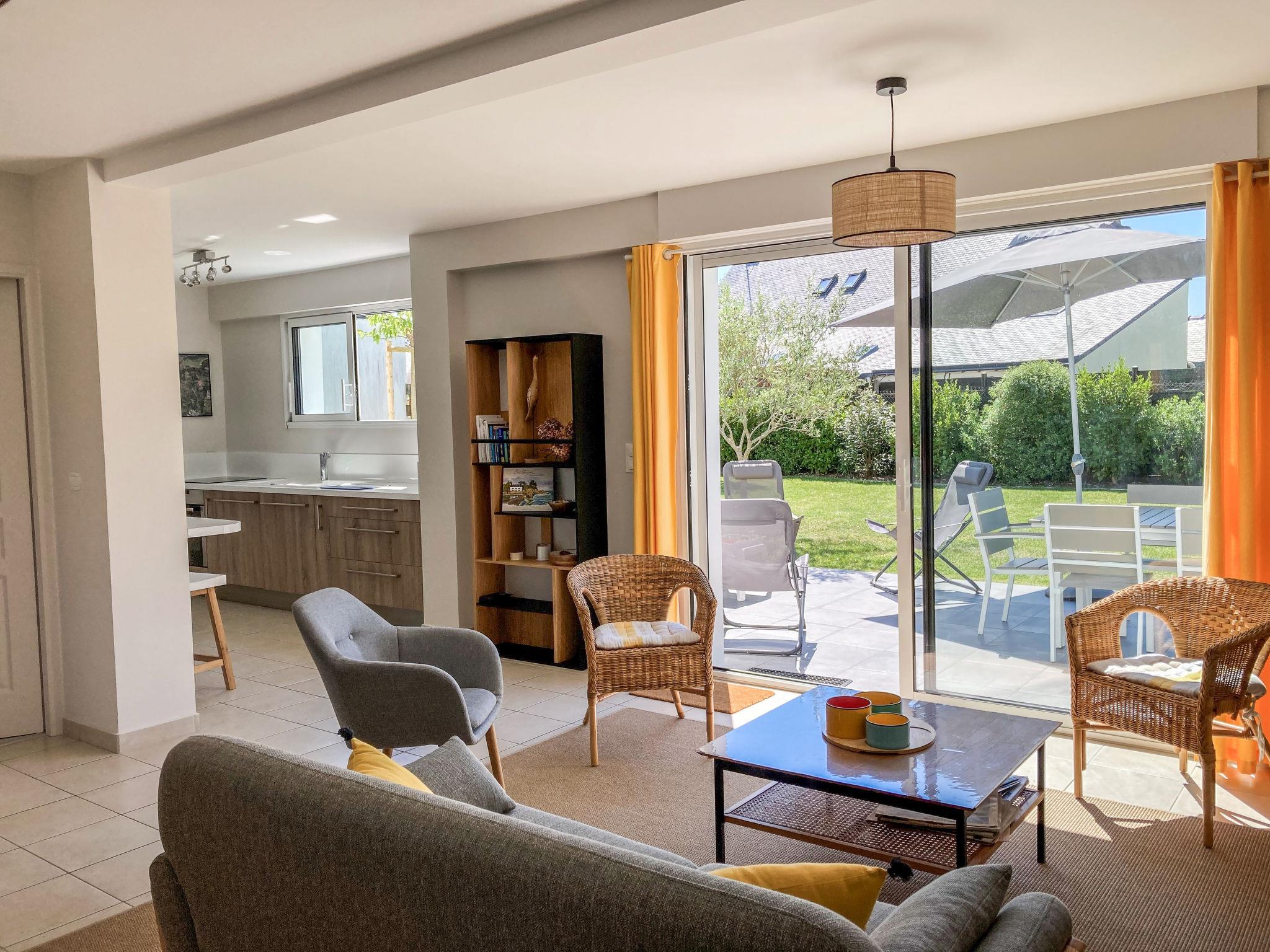 St Philibert 8 km from Carnac: Single-family house "Le Ponant", 2 storeys, renovated in 2020. In the resort 100 m from the centre of Saint Philibert, in the residential district, 800 m from the sea, 1.9 km from the beach. Private: well-kept garden 400 m2 (fenced). In the house: storage room for bicycles. Shop 100 m, grocery, supermarket 2.5 km, bakery 100 m, 2 minute walk to the centre, sandy beach "Plage de Men er Belleg" 1.9 km, diving center 4 km, thermal baths "Thalassothérapie Thalazur Carnac" 8 km. Sports harbour 4 km, golf course (18 hole) 15 km, sailing school 1.9 km. Nearby attractions: La Trinité Sur Mer 4 km, Carnac et ses alignements 8 km, Presqu'île de Quiberon 15 km, Vannes 30 km, Lorient 50 km, Belle ile en Mer, Houat, Hoedic. Hiking paths: Le Golfe du Morbihan.