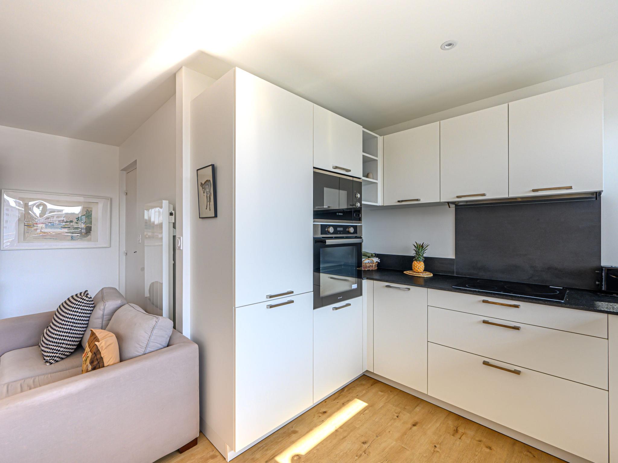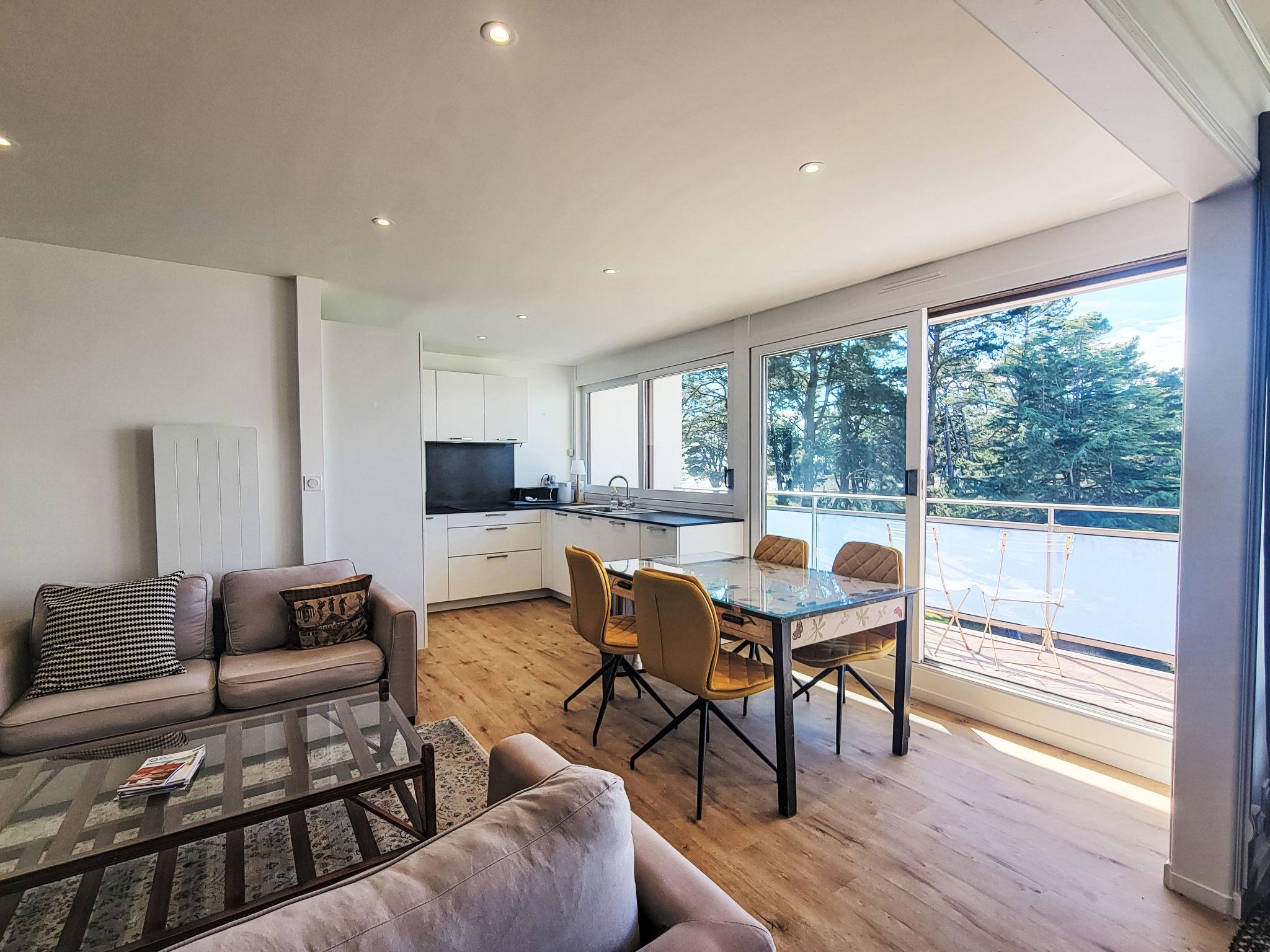 "Men Er Bellec", 2-room apartment 50 m2 on 1st floor. Fully renovated in 2024, comfortable furnishings: living/dining room with 1 sofabed (160 cm, length 200 cm). Exit to the balcony. 1 room with 2 beds (80 cm, length 160 cm), TV (flat screen). Exit to the balcony. Open kitchen (oven, dishwasher, 3 ceramic glass hob hotplates, toaster, kettle, microwave, electric coffee machine). Shower/WC. Electric heating. Balcony 6 m2, south facing position and west facing position. Balcony furniture. Beautiful view of the sea. Facilities: washing machine, hair dryer. Internet (WiFi, free). Parking space n 43. Please note: maximum 1 pet/ dog allowed. Smoke alarm. Offer by a private individual according to Art. 155, IV of CGI. 56233000115P0