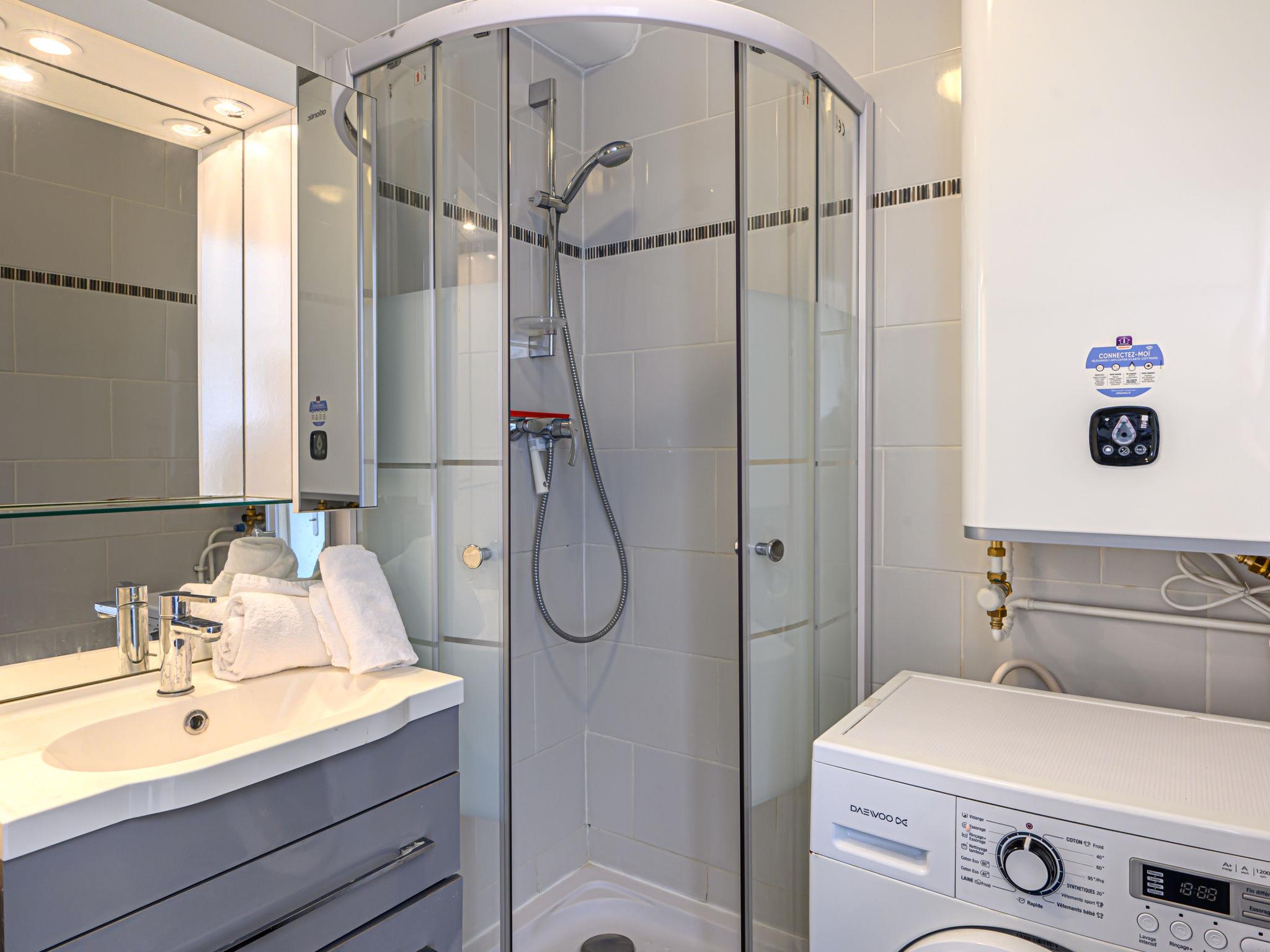 St Philibert 7 km from Carnac: Residence "Men Er Bellec", 5 storeys, surrounded by trees. From the sea, 50 m from the beach. In the complex: lift. Parking. Shop 2 km, restaurant 500 m, bar 2 km, bakery 2 km, sandy beach "Men Er Beleg" 50 m, thermal baths "Thalassothérapie de Carnac" 8 km. Marina 5 km, golf course (18 hole) 20 km, sailing school 2 km. Nearby attractions: La Trinité sur Mer 4 km, Locmariaquer - Golf du Morbihan 4 km, Alignements de Carnac 8 km, Auray 14 km, Presqu'Ile de Quiberon belle ile en Mer 21 km, Vannes 30 km. Please note: suitable for families. Groups of teenagers on request only. The keys‘ handover takes place by the agency Interhome in Carnac, 7 km.