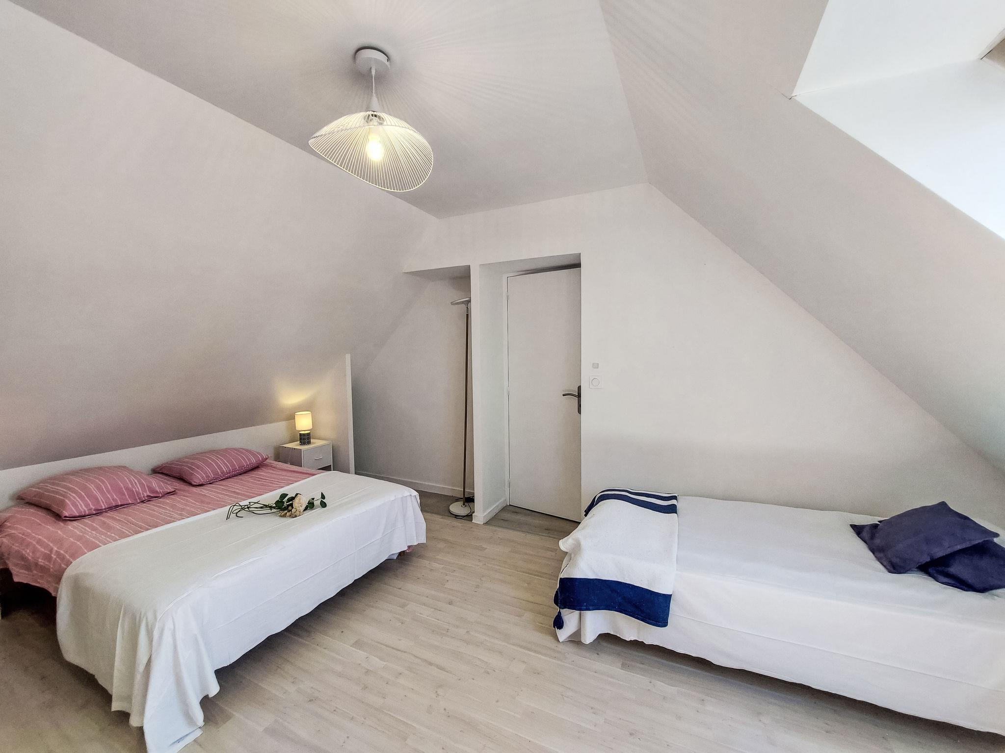 Single-family house "Bon Port", 2 storeys. On the outskirts, 700 m from the centre of Saint Philibert, 600 m from the sea, 1.9 km from the lake, 2 km from the beach. Private: property 500 m2, well-kept garden (not fenced), parking on the premises. Grocery 700 m, supermarket 4 km, restaurant, bakery 700 m, café, sandy beach "Plage de Men Er Belleg" 2 km, thermal baths "Thalassothérapie de Carnac" 9 km, lake Etang de Kercadoret 1.9 km. Golf course (18 hole) 15 km, surf school 15 km, sailing school 2 km. Nearby attractions: Port Deun 600 m, Carnac et ses aligenements 8 km, Quiberon 15 km, Vannes 30 km, La Trinité sur Mer 4 km, Belle Ile en Mer. Hiking paths: Golfe du Morbihan.