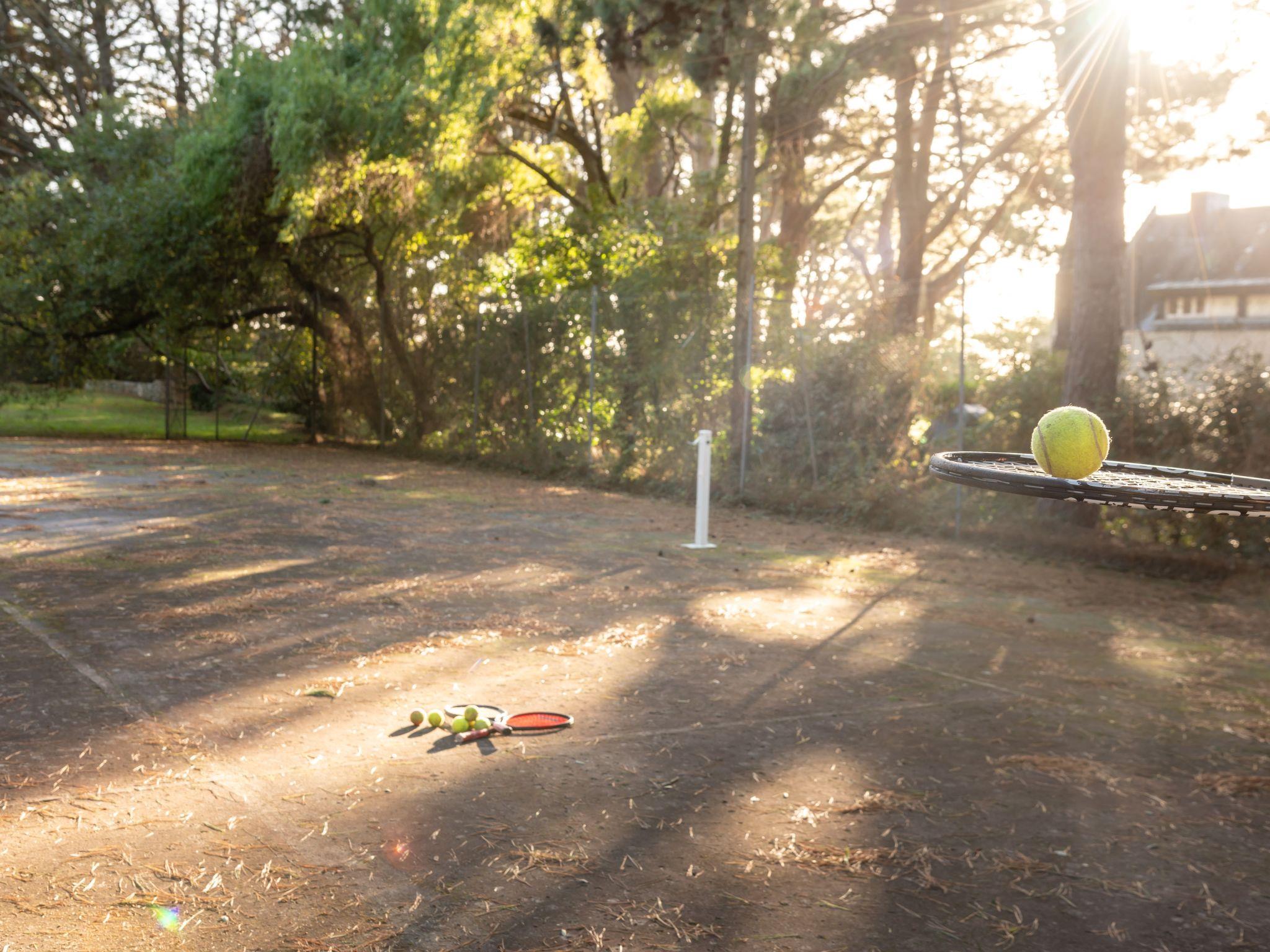 Tennis court for recreational use. Villa "La Villa Tribale", 2 storeys. 10 m from the sea, 150 m from the beach. Private: park 2 ha (fenced). Tennis (1 x hard court), parking (for 5 cars). Supermarket 3 km, restaurant 2 km, bar 2 km, bakery 2 km, café 2 km, sandy beach "Kernevest" 900 m. Sports harbour 1.5 km, golf course (18 hole) 12 km, sailing school 900 m, walking paths from the house 10 m. Nearby attractions: La Trinité Sur Mer 2 km, Carnac et ses alignements 7 km, Presqu'île de Quiberon 15 km, Vannes 35 km, Belle ile en Mer, Houat, Hoedic. Hiking paths: Le Golfe du Morbihan 30 km.