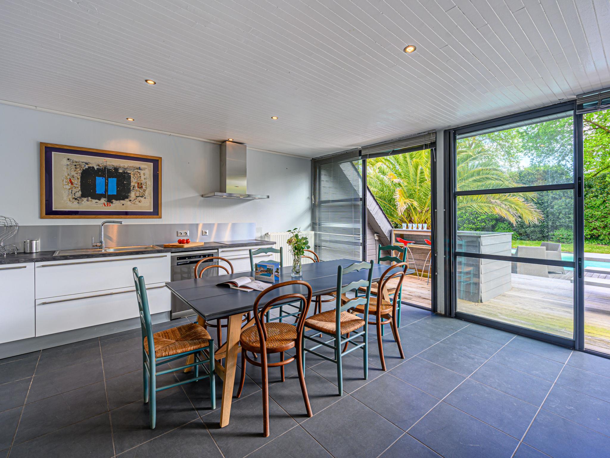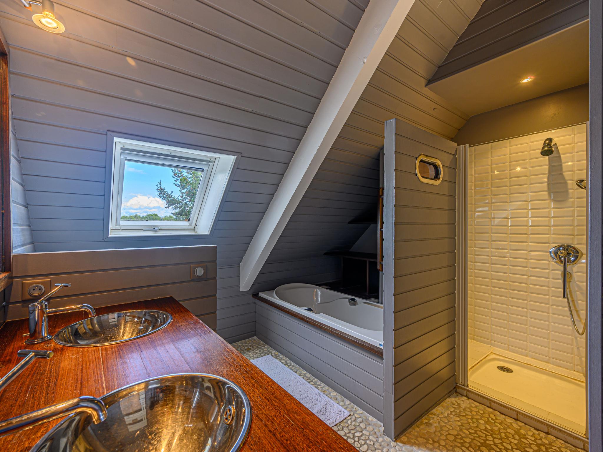 Villa "Villa Pyramide II", 3 storeys. Property composed of main house and outbuilding, on the outskirts, 2 km from the centre of Saint-Philibert, 50 m from the sea, from the beach, in a cul-de-sac. For shared use: tennis. Private: well-kept garden 370 m2, swimming pool heated (11 x 5 m, depth 150 - 150 cm, seasonal availability: 11.May. - 15.Oct.) with internal staircase and alarm system. Parking (for 5 cars) at the house. Grocery 2 km, restaurant 2 km, bakery 2000 km, café 2 km, sandy beach "Kernevest" 900 m. Sports harbour 1.5 km, golf course (18 hole) 12 km, sailing school 900 m, walking paths from the house 50 m. Nearby attractions: La Trinité-sur-mer 2 km, Carnac et ses alignements 7 km, Auray - Port de St Goustan 15 km, Presqu'île de Quiberon 25 km, Vannes 25 km, Belle-île, Houat et Hoëdic. Hiking paths: Golfe du Morbihan 20 km.