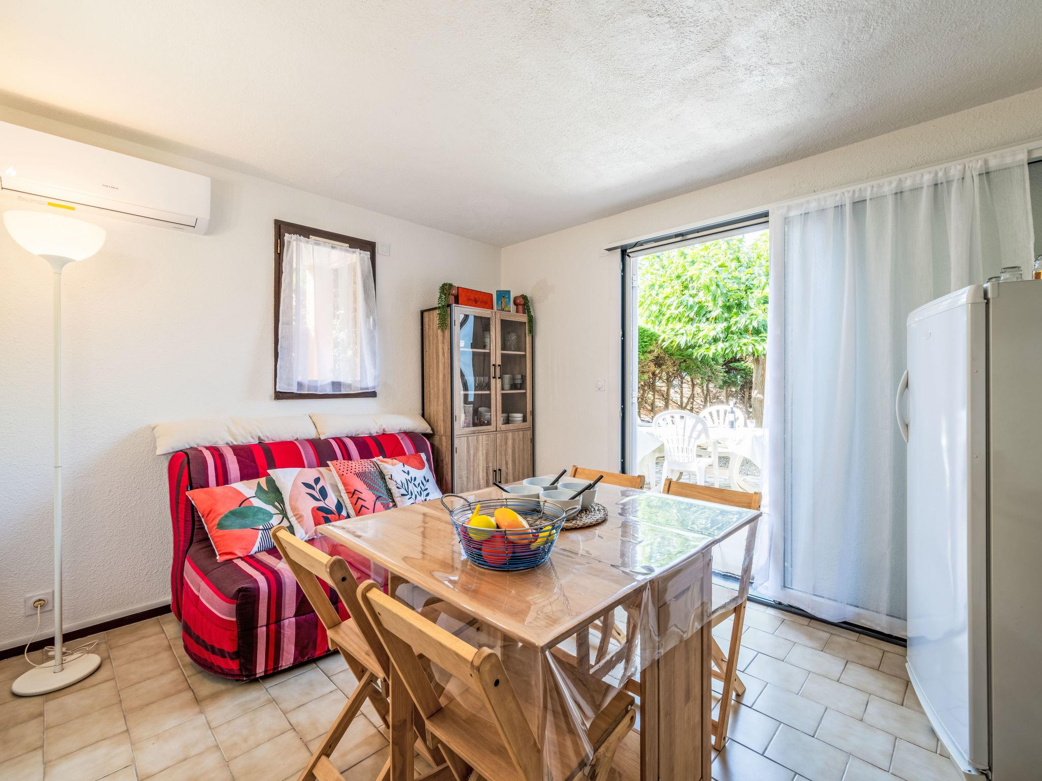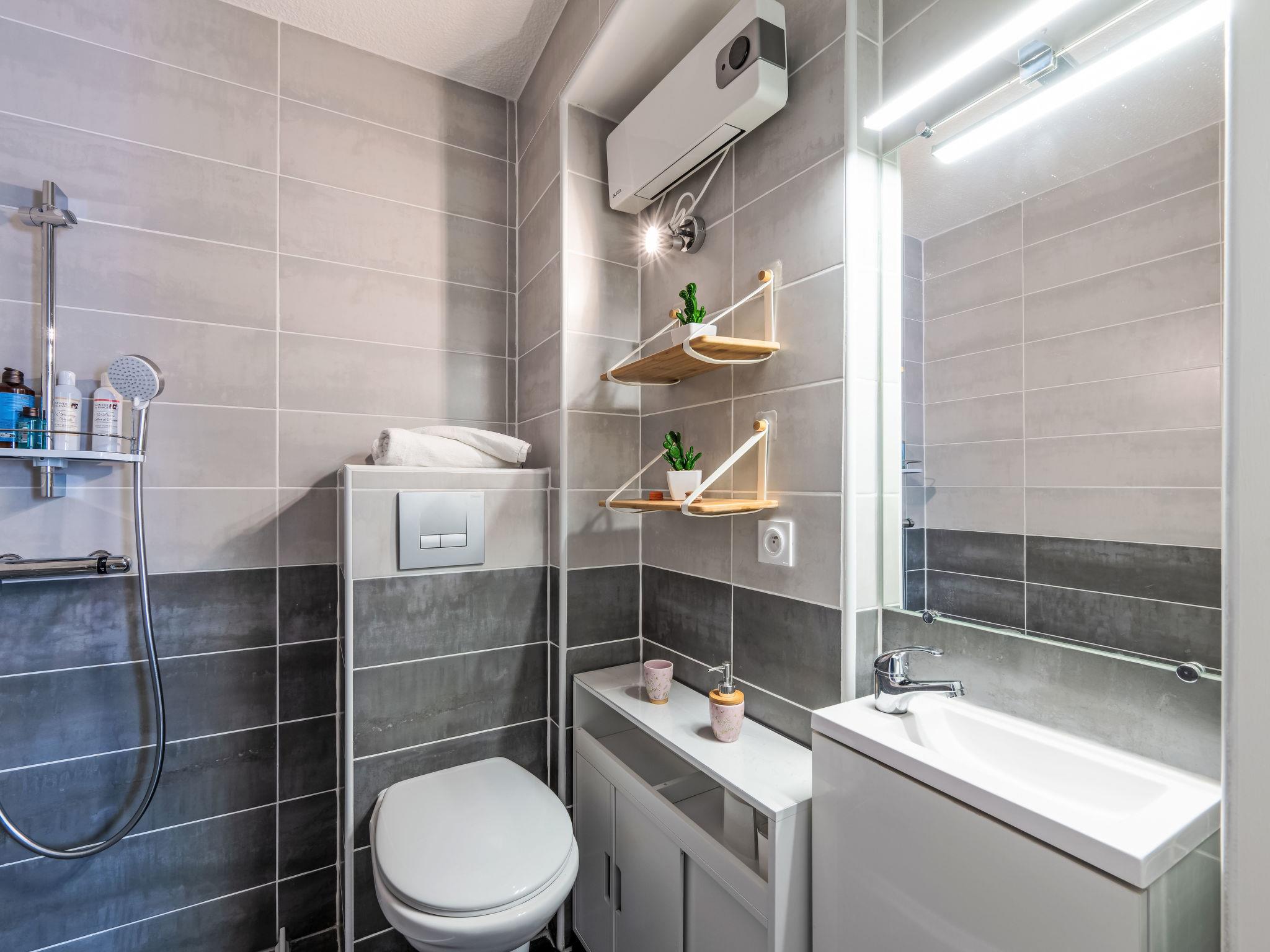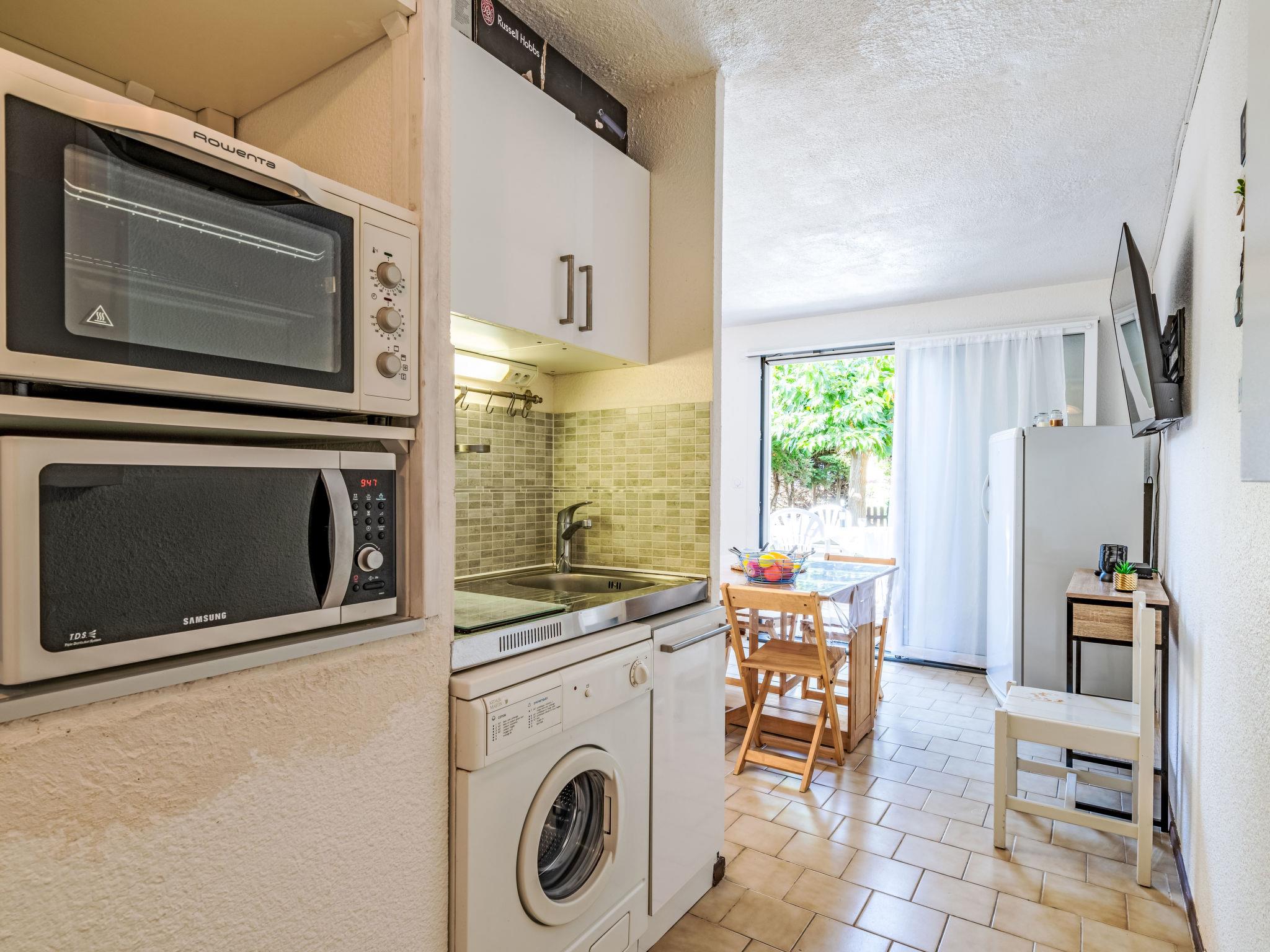 2-room apartment 33 m2, on the ground floor. Renovated in 2024, beautiful furnishings: living/dining room with TV (flat screen). Exit to the terrace. 1 room with 1 double sofabed (140 cm). Sleeping alcove with 1 french bed (140 cm). Kitchenette (oven, 2 induction hot plates, microwave, electric coffee machine, Capsules for coffee machine (DOLCE GUSTO) extra). Shower/WC. Air-conditioning. Terrace 12 m2. Terrace furniture. Facilities: washing machine. Internet (WiFi, free). Parking. Please note: smoke alarm. Please note: terrace close to the road. Offer by a private individual according to Art. 155, IV of CGI. FR6637.400.13