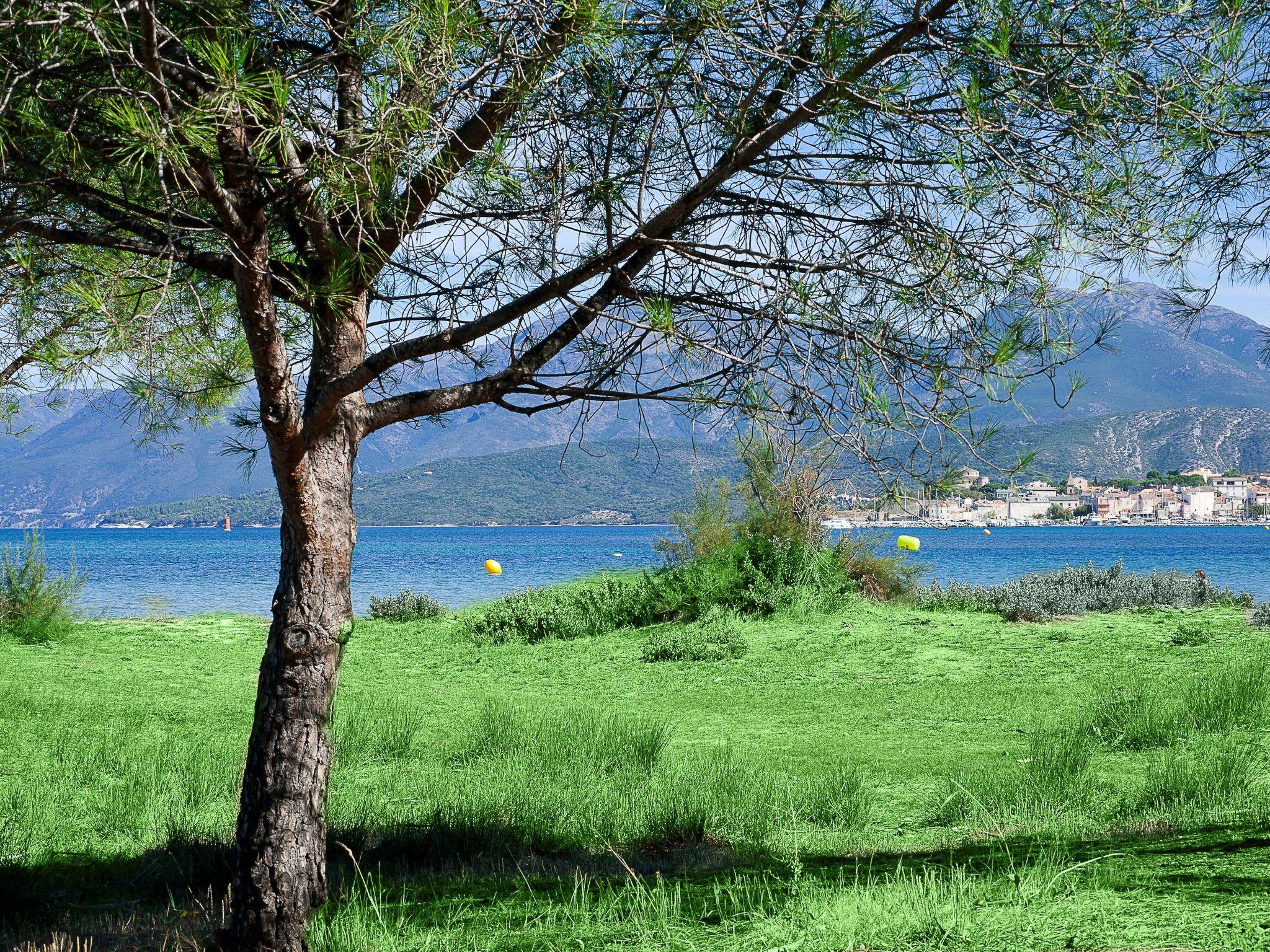 "Suarella", 3-room apartment 48 m2. Practical furnishings: living/sleeping room with 1 double sofabed, dining table and TV can be hired. 1 room with 1 french bed. Exit to the balcony. 1 room with 2 beds. Kitchenette (2 hot plates, electric coffee machine). Bathroom, sep. WC. No heating option. Balcony. Balcony furniture. Beautiful view of the sea and St. Florent. Facilities: baby cot for up to 2 year olds. Please note: non-smokers only. Maximum 1 pet/ dog allowed. Smoke alarm. Offer by a commercial proprietor according to Art. 155, IV, CGI