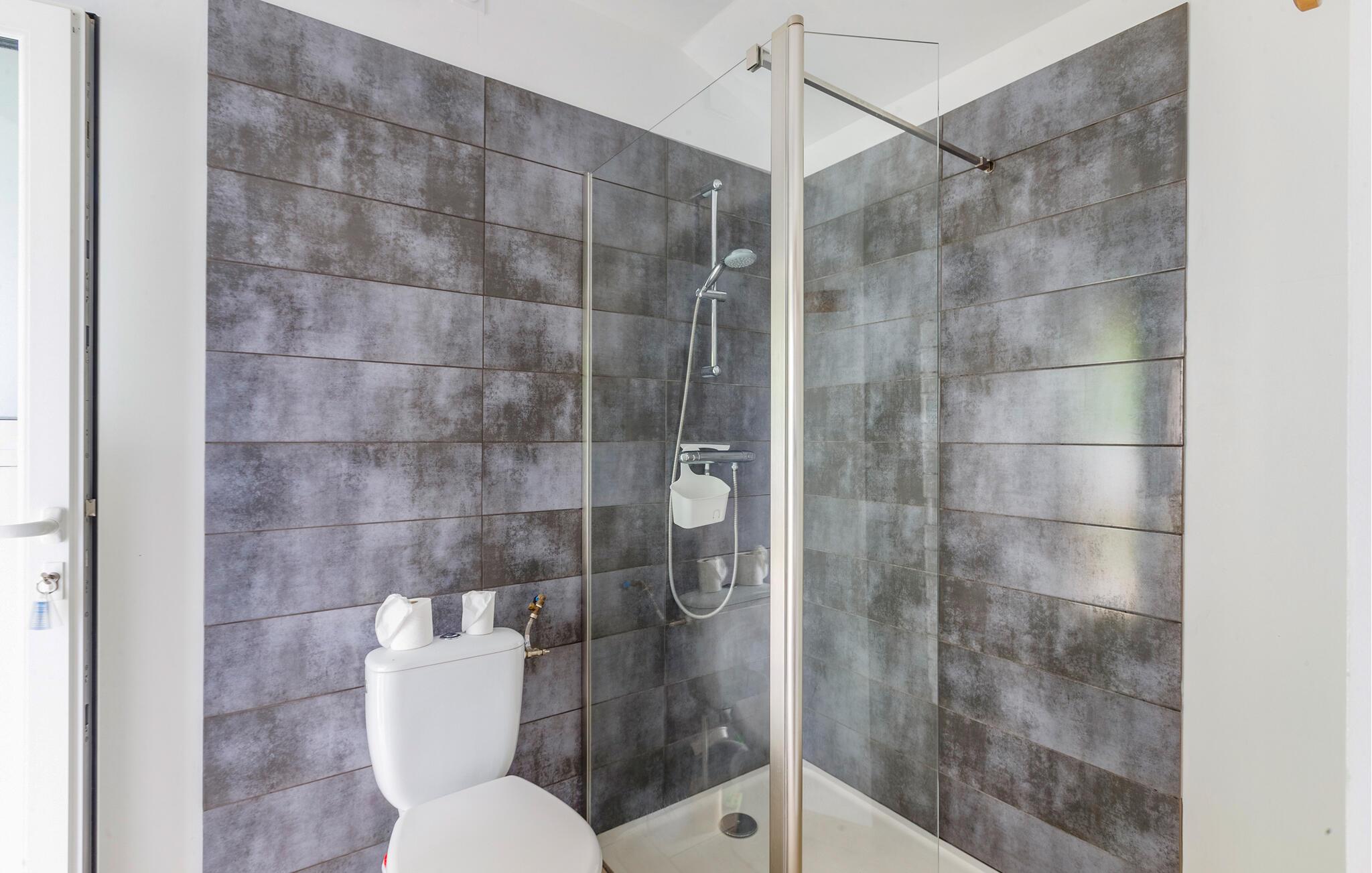 - WC mit warmem und kaltem Wasser, Dusche