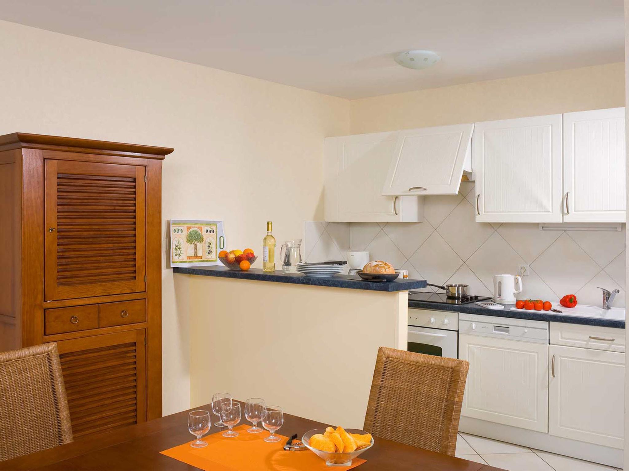 "Le Domaine de Fontenelles", 3-room apartment 60 m2. Bright, practical and beautiful furnishings: living/sleeping room with 1 double sofabed, dining table and TV can be hired. Exit to the balcony. 2 rooms, each room with 2 sleeping facilities. Kitchenette (4 hot plates, oven, dishwasher, toaster, kettle, electric coffee machine). Bathroom, sep. WC. Electric heating. Balcony or terrace. Terrace furniture, balcony furniture. Please note: non-smokers only. Maximum 2 pets/ dogs allowed. Smoke alarm, fire extinguisher.