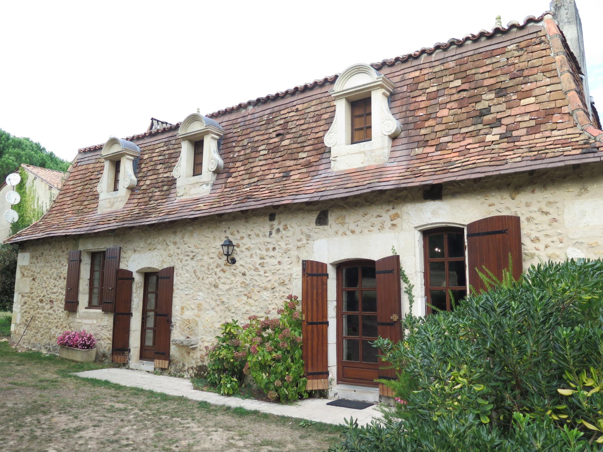 Rustic country house "La Borie", from the 17th century. In the hamlet La Borie 2.5 km from the centre of Saint Jean d'Estissac, 5.5 km from the centre of Villamblard, 25 km from the centre of Bergerac, in a quiet position, 23 km from the lake. Private: natural state property 5'000 m2 (fenced) with wildlife garden and trees, lawn for sunbathing, swimming pool fenced (8 x 5 m, depth 160 cm, seasonal availability: 15.May. - 30.Sep.). Pool maintenance by the owner/gardener. In the house: storage room for bicycles. Parking (for 3 cars) at the house on the premises. Shop 5.5 km, supermarket 5.5 km, bus stop "Douville-Pont Saint Mamet" 12 km, bathing lake "Lac de Neufont" 23 km. Nearby attractions: Périgueux 35 km.