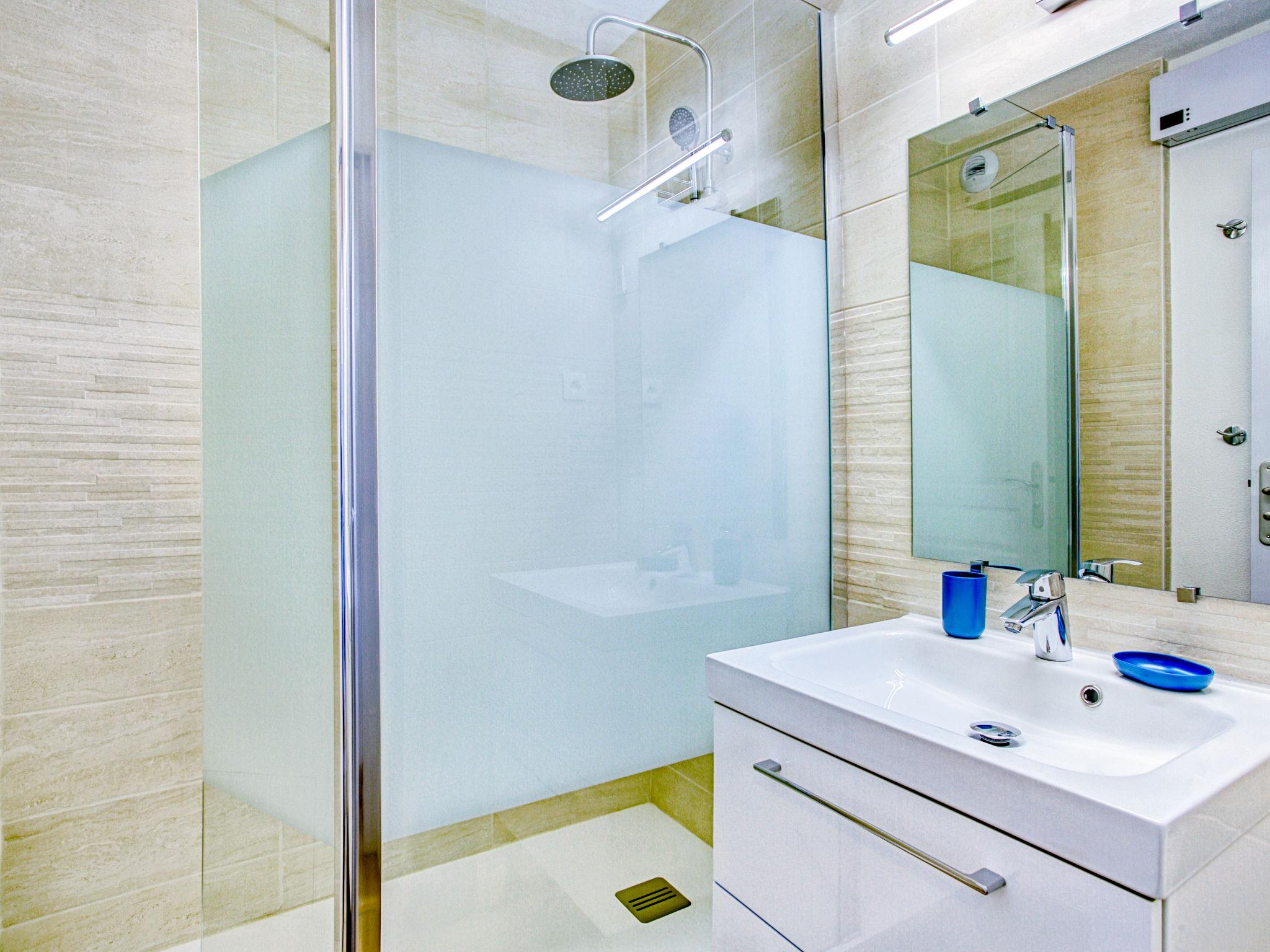 2-room apartment 31 m2, on the ground floor. Practical and cosy furnishings: small living/dining room with 1 double sofabed (140 cm, length 190 cm), TV (flat screen), DVD. Exit to the terrace, to the patio. 1 room with 1 french bed (160 cm, length 200 cm). Open kitchen (dishwasher, 2 induction hot plates, toaster, kettle, microwave, electric coffee machine). Shower, sep. WC. Electric heating. Terrace 9 m2. Terrace furniture, deck chairs (2). View of the valley. Facilities: iron, hair dryer. Internet (WiFi, free). Parking space n 184. Please note: smoke alarm. 64189000794BD