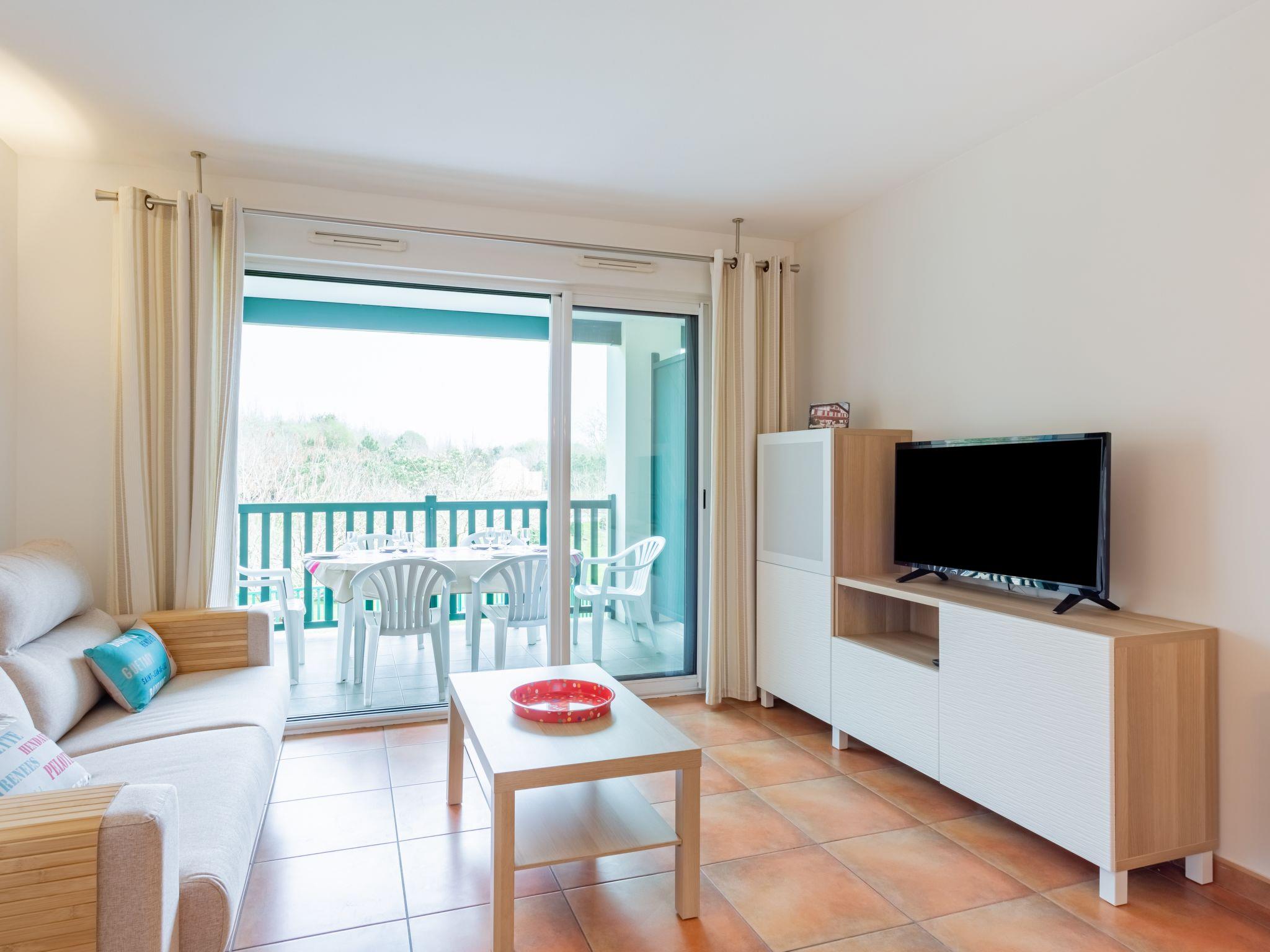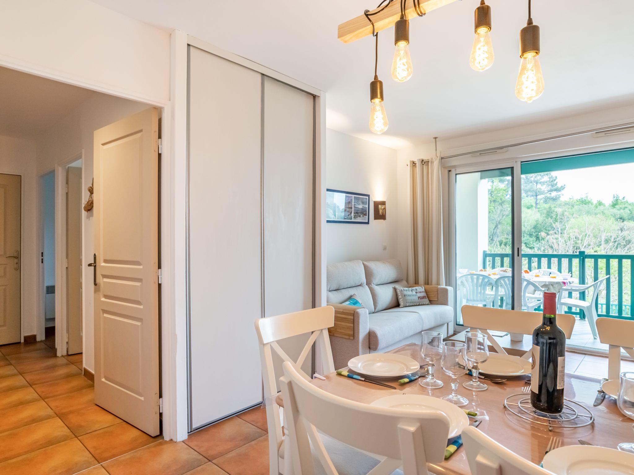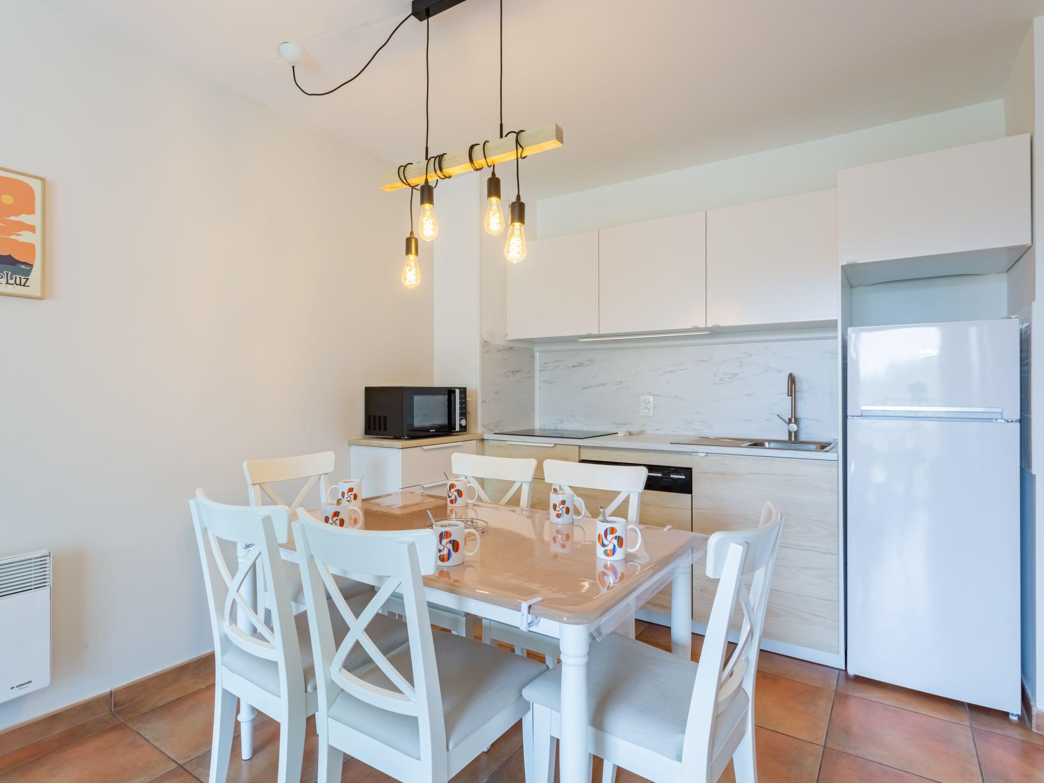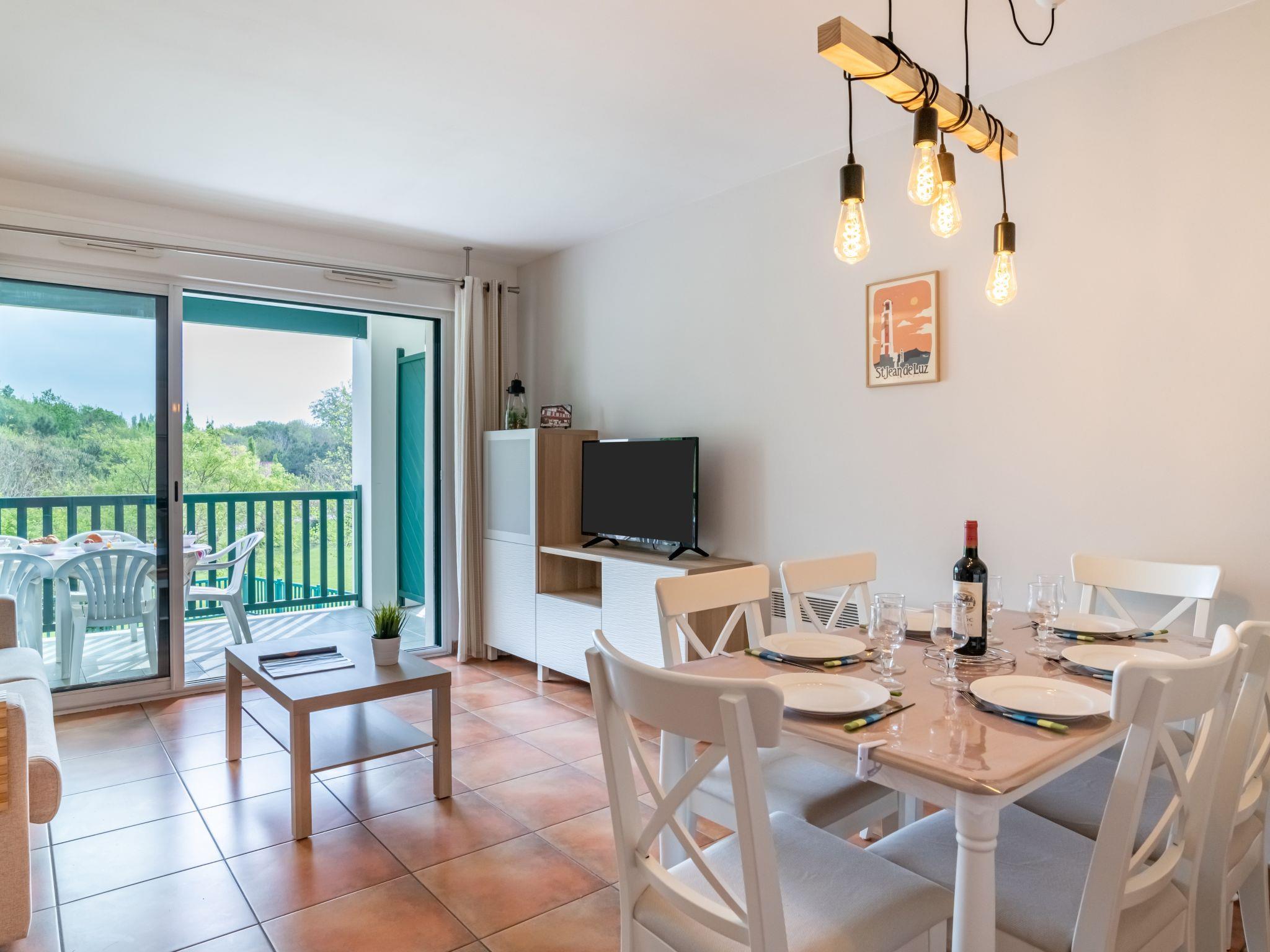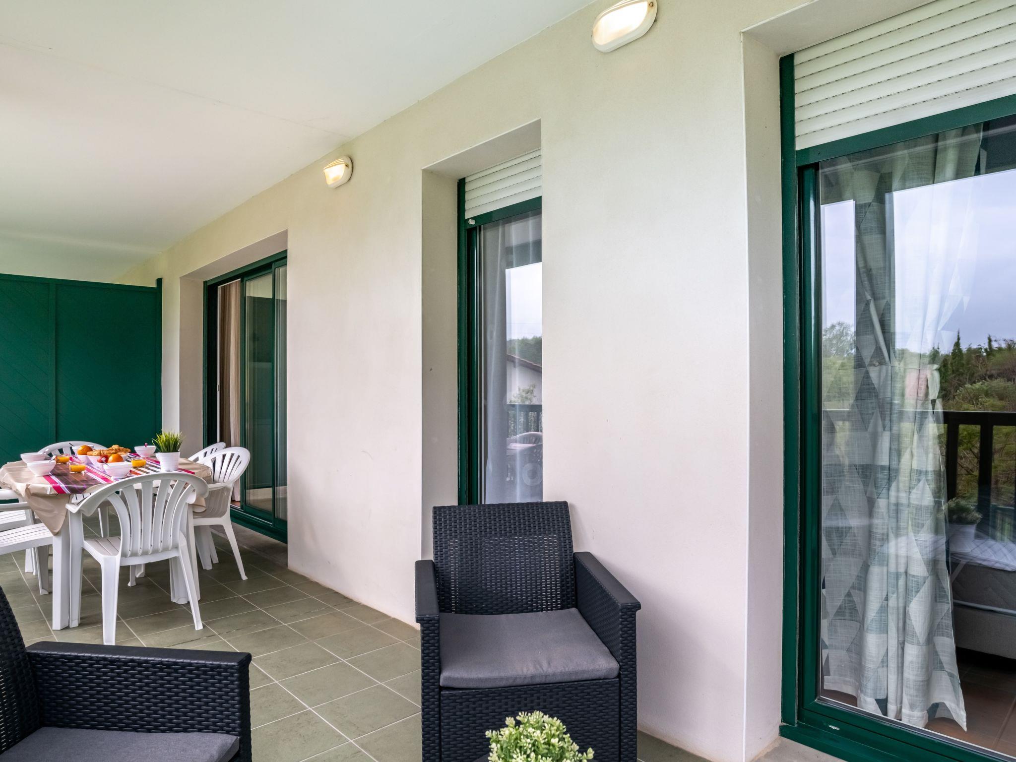 "Domaine Iratzia", 3-room apartment 45 m2 on 1st floor. Comfortable and beautiful furnishings: living/dining room with 1 double sofabed (140 cm, length 190 cm), TV (flat screen). Exit to the terrace. 1 room with 1 french bed (1 x 160 cm, length 200 cm). Exit to the terrace. 1 room with 1 x 2 bunk beds (90 cm, length 190 cm). Exit to the terrace. Open kitchen (dishwasher, 3 ceramic glass hob hotplates, toaster, kettle, microwave, electric coffee machine). Bathroom, sep. WC. Electric heating. Terrace 17 m2. Terrace furniture. Beautiful view of the garden. Facilities: washing machine, iron, hair dryer. Internet (WiFi, free). Parking (roofed). Please note: smoke alarm. 6448300186952