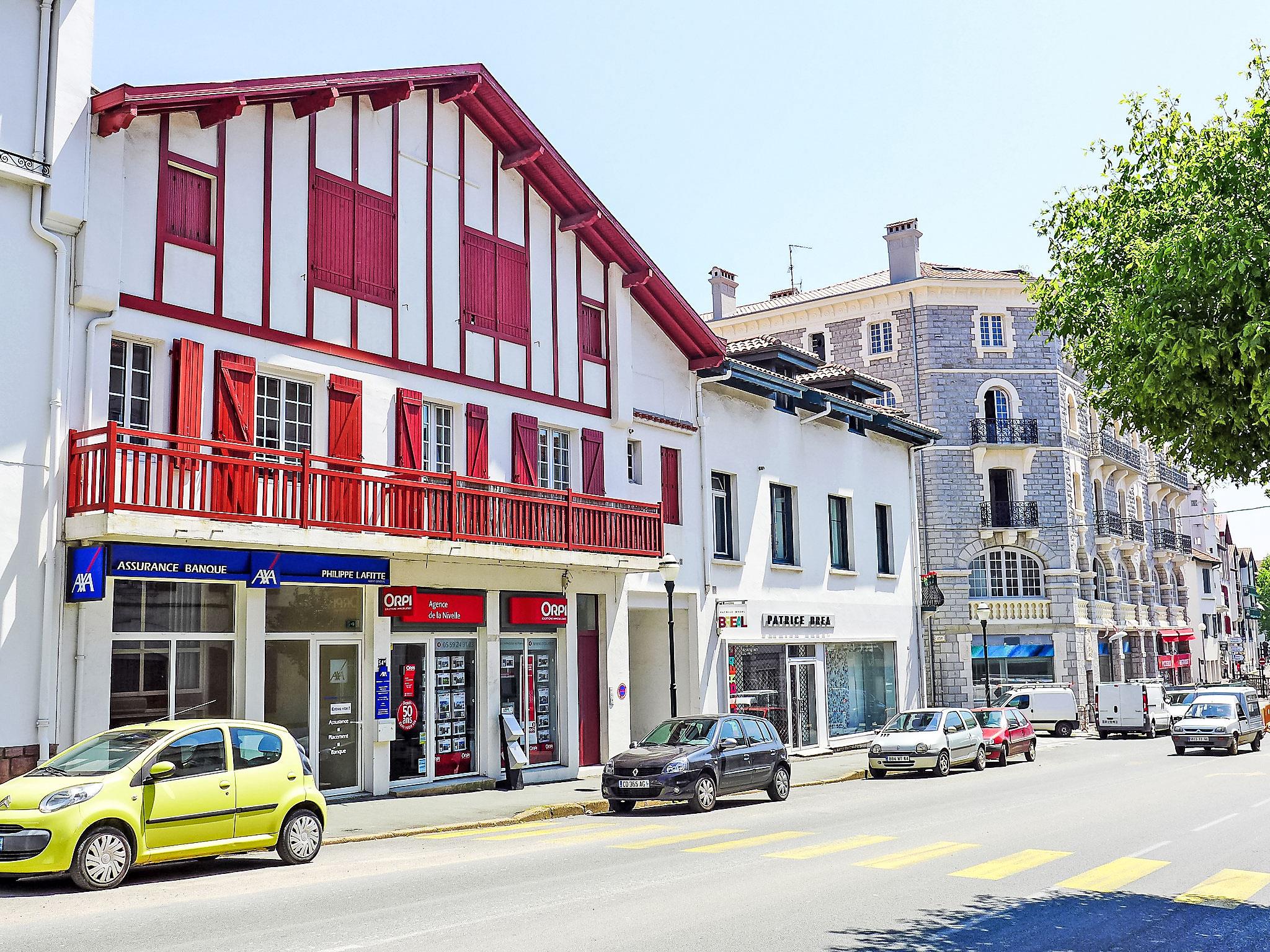 Saint Jean de Luz: Residence "Orpia". In the centre of Saint Jean de Luz, 400 m from the sea, 400 m from the beach, on a main road. Shop, restaurant, bakery, café 200 m, bus stop 5 m, sandy beach, outdoor swimming pool 400 m, thermal baths "Hélianthal" 400 m. Sports harbour 400 m, golf course (18 hole) 2 km. Nearby attractions: Marché de St Jean de Luz 400 m, Jardin public avec jeux pour enfants 600 m. Please note: no lift. The keys‘ handover takes place by the agency Interhome à 16h.