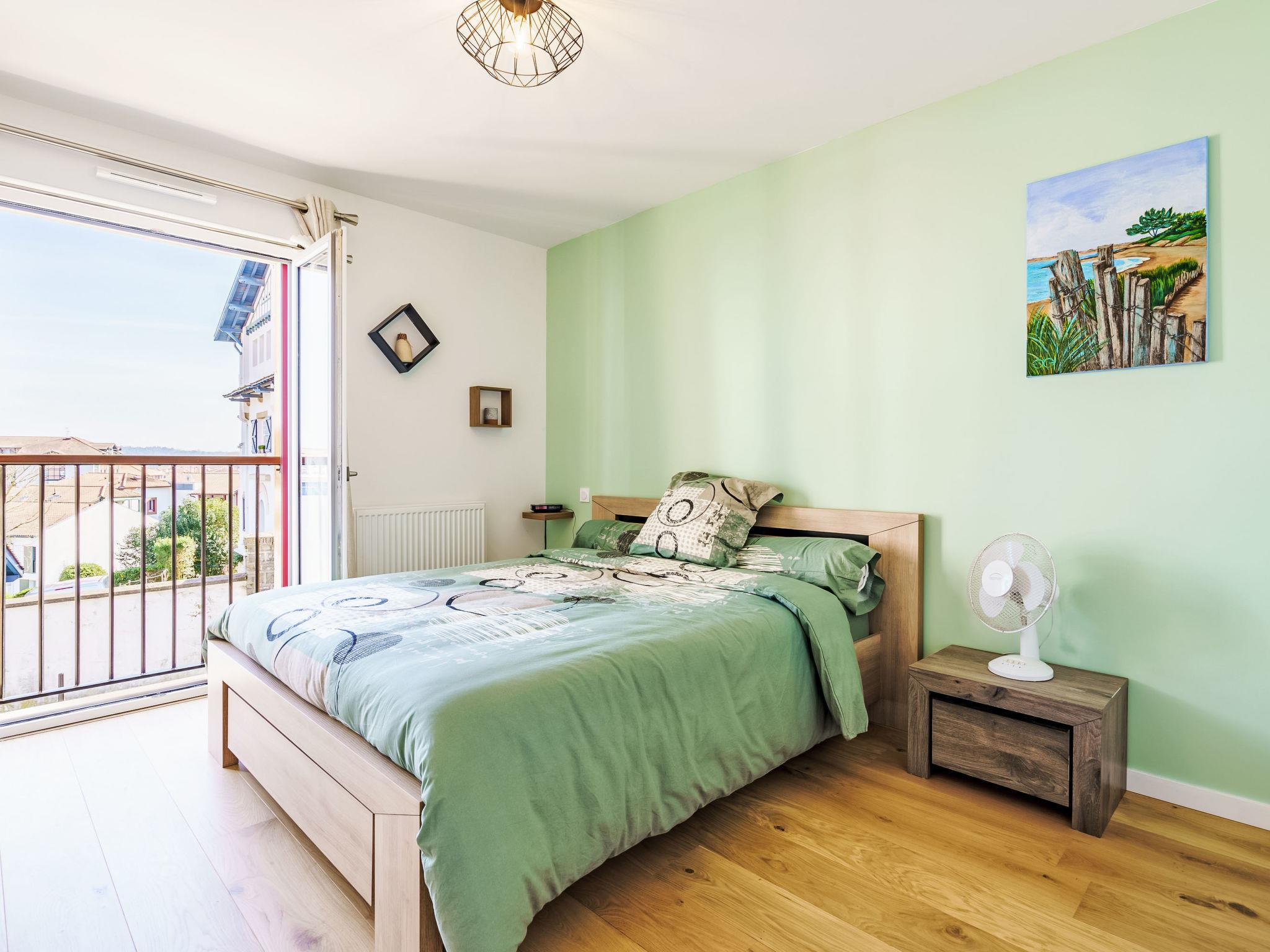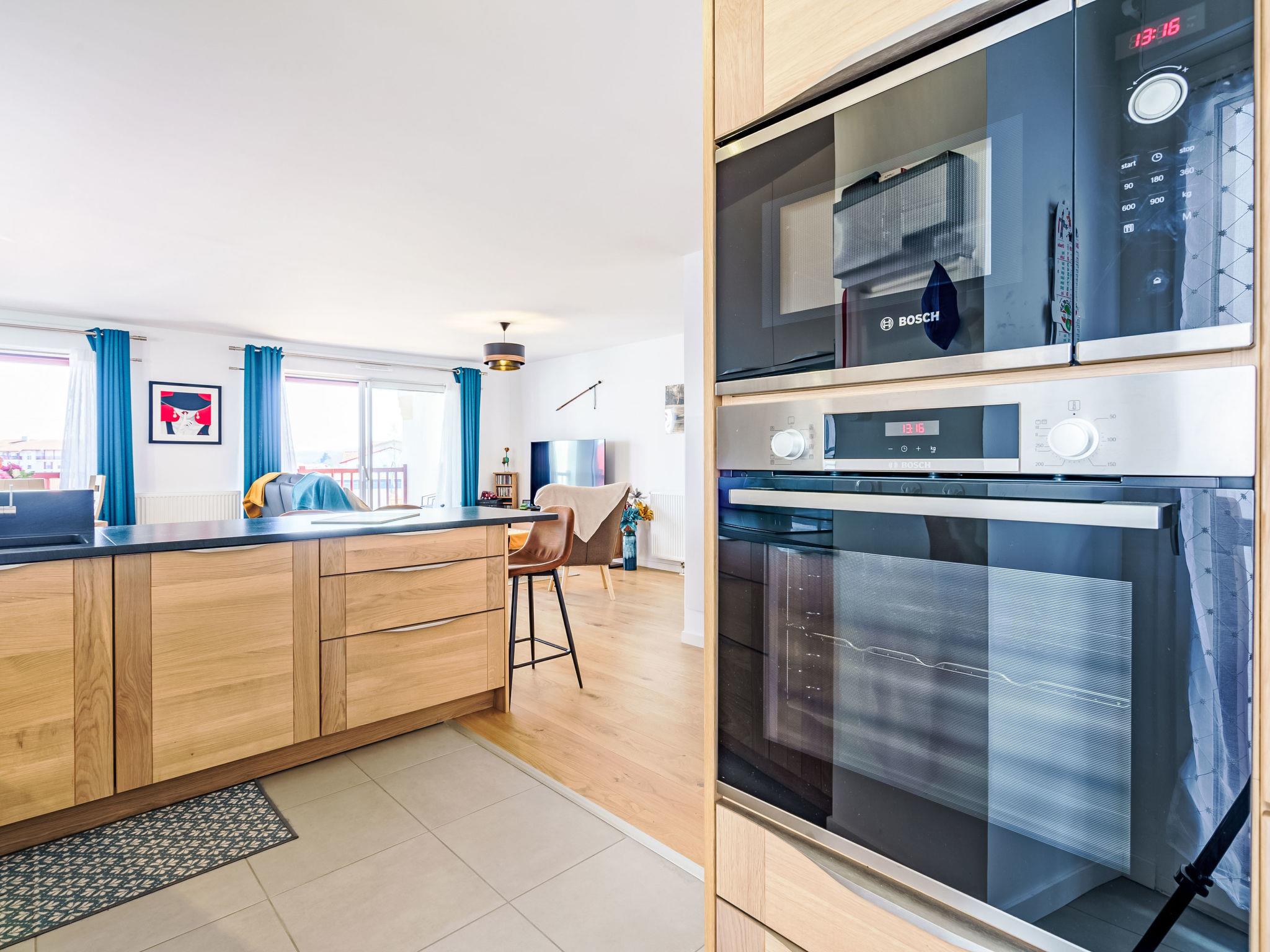 "Bikaleak", 3-room apartment 93 m2 on 1st floor. Beautiful and modern furnishings: living/dining room with TV (flat screen). Exit to the terrace. 1 room with 1 french bed (140 cm, length 190 cm), shower. 1 room with 1 french bed (160 cm, length 200 cm), shower/WC. Large, open kitchen (dishwasher, 3 induction hot plates, toaster, kettle, microwave, electric coffee machine). Sep. WC. Large terrace 17 m2. View of the mountains. Facilities: washing machine, dryer, iron, hair dryer. Internet (WiFi, extra). Garage (1 car). Please note: non-smoking house. Smoke alarm. Offer by a private individual according to Art. 155, IV of CGI. 6418900153376