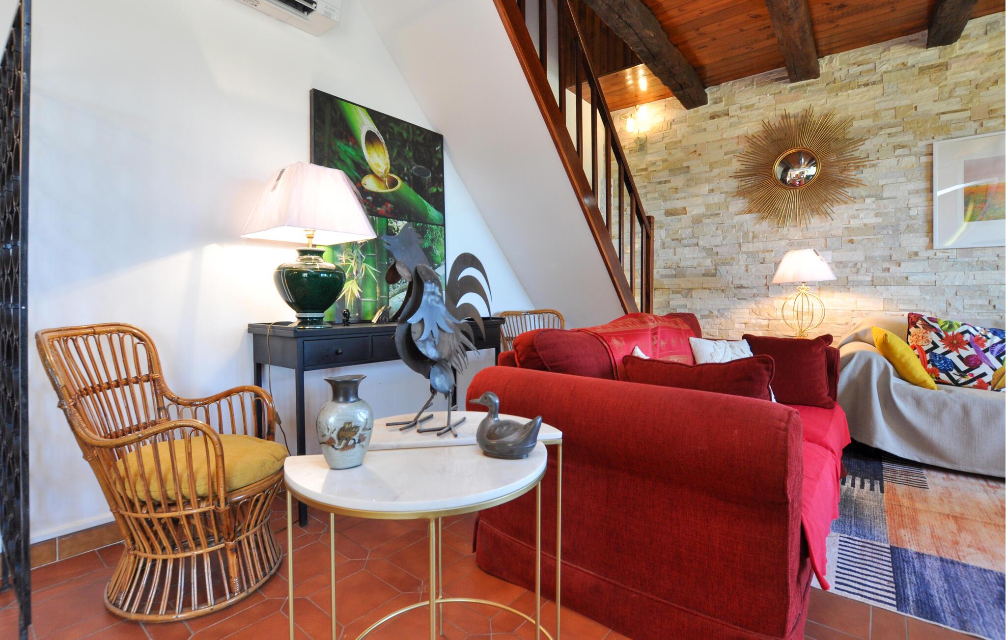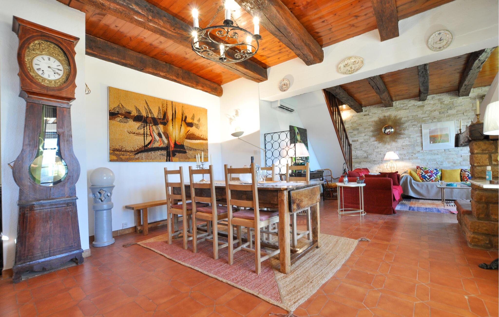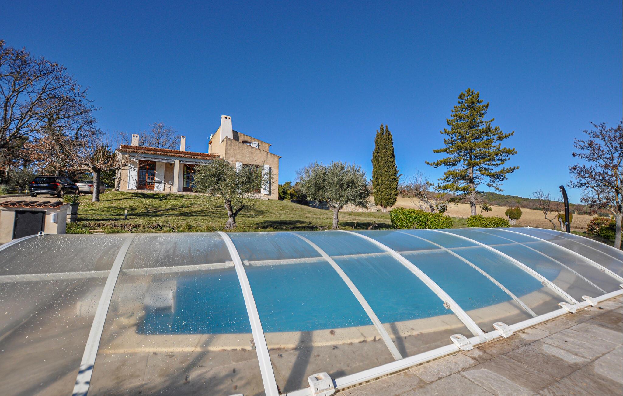 Genießen Sie eine idyllische Auszeit in diesem charmanten Ferienhaus mit Pool.
