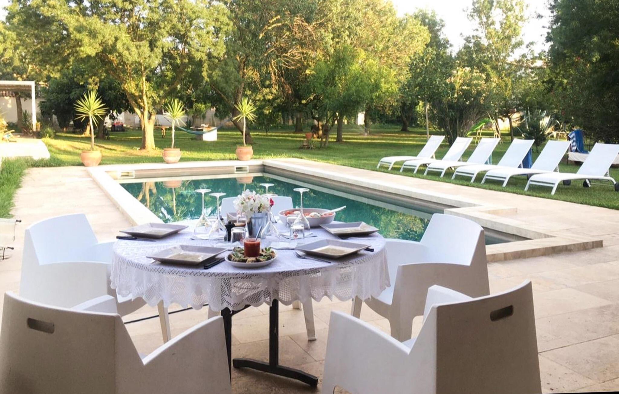 Erfrischen Sie sich an heißen Tagen im Gemeinschaftspool und lauschen Sie bei einer Siesta auf der Sonnenliege dem Zirpen der Zikaden. Plaudern Sie im goldenen Abendlicht bei einem Glas Wein in der einladenden Lounge und bereiten Sie Köstlichkeiten auf dem Grill zu.